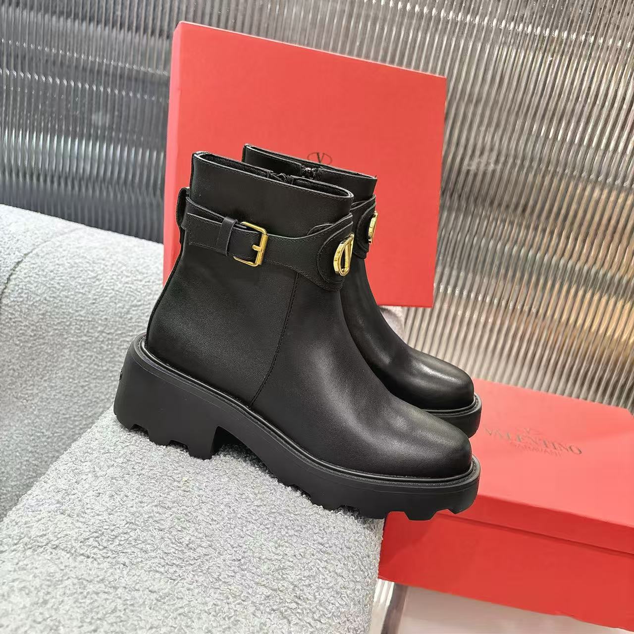 这款鞋子是AAAAA 1:1 质量 (非常棒). 使用了和原版一模一样的材料. 商标部分也保持了和华伦天奴/Valentino一样. 图片拍摄是实物鞋子拍摄, 您所收到的实物保证和我们图片一模一样.