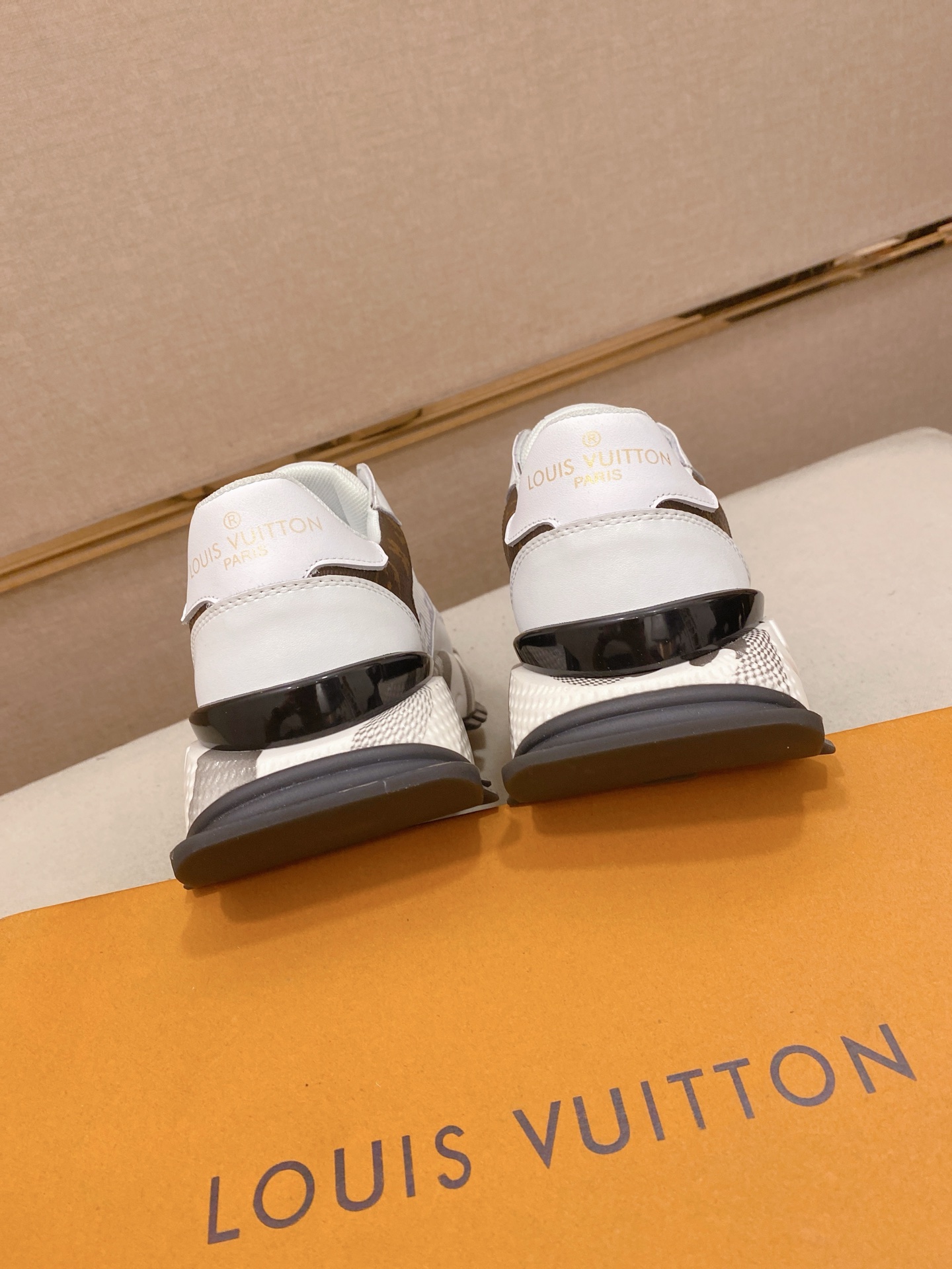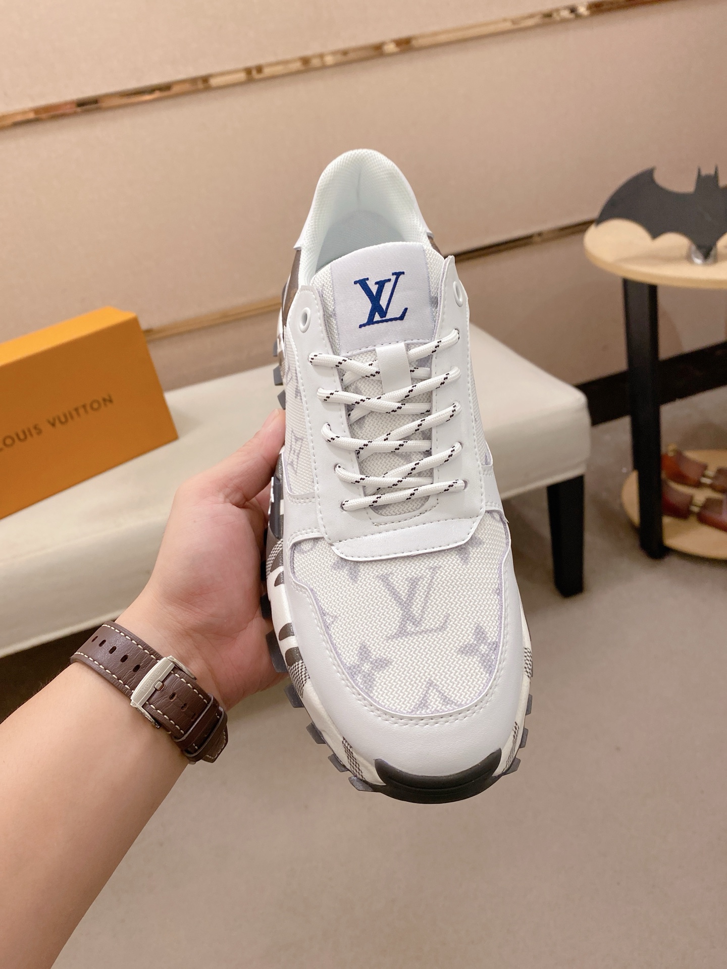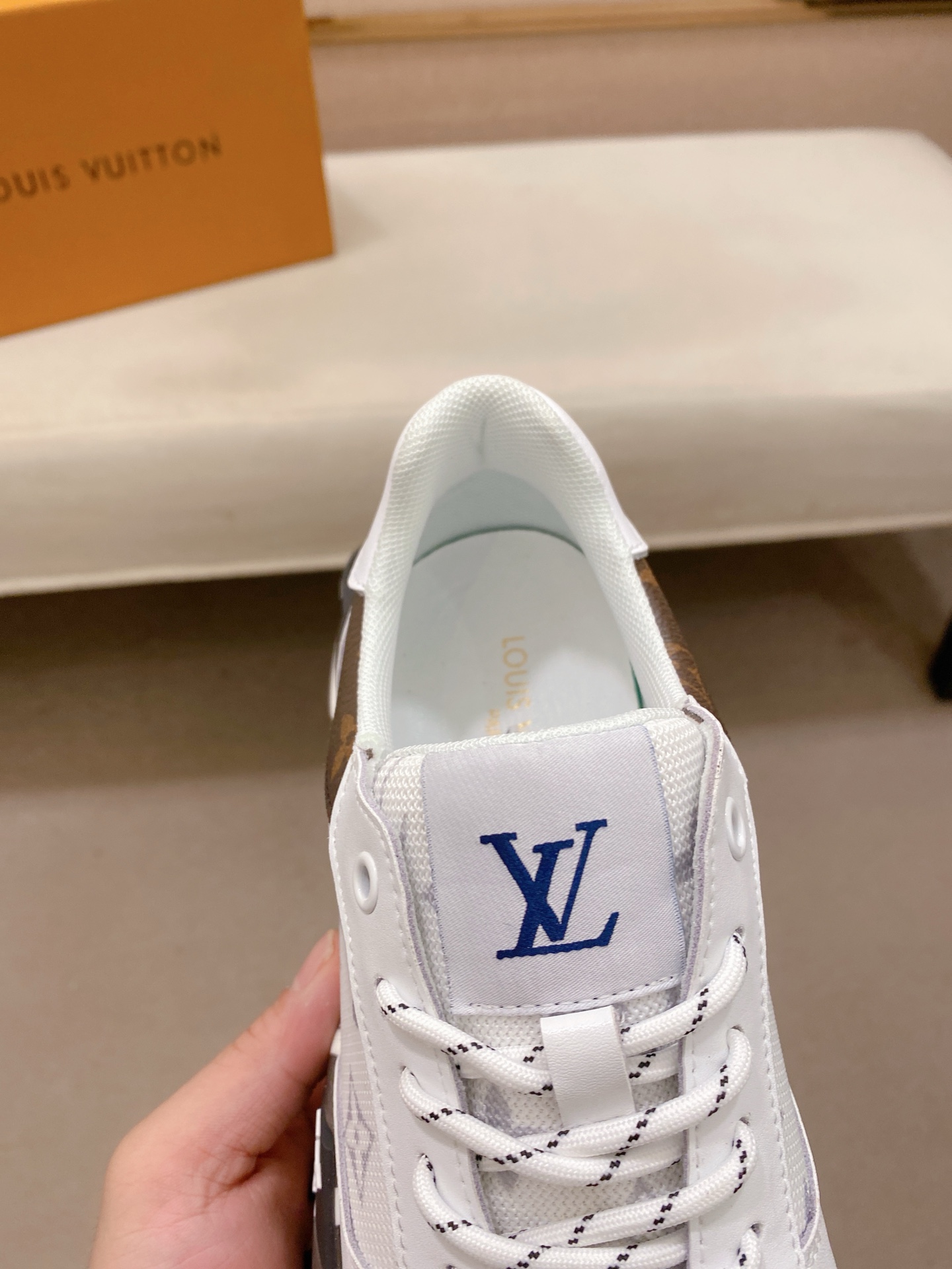 这款鞋子是AAAAA 1:1 质量 (非常棒). 使用了和原版一模一样的材料. 商标部分也保持了和路易威登/Louis Vuitton一样. 图片拍摄是实物鞋子拍摄, 您所收到的实物保证和我们图片一模一样.