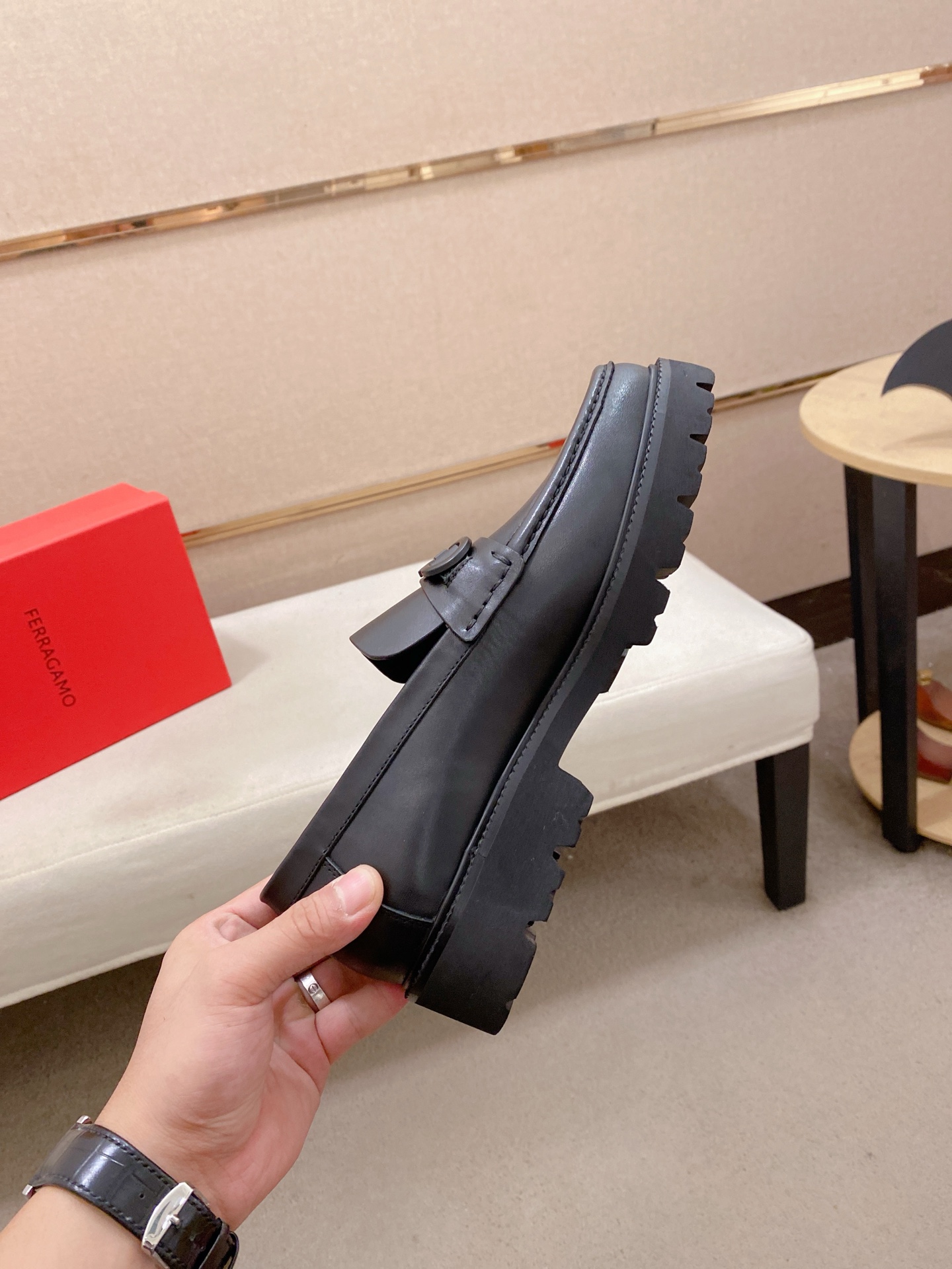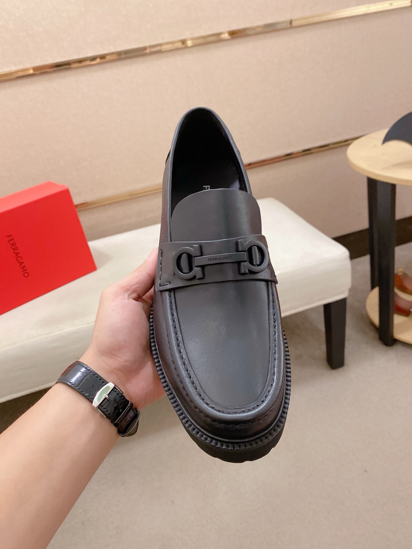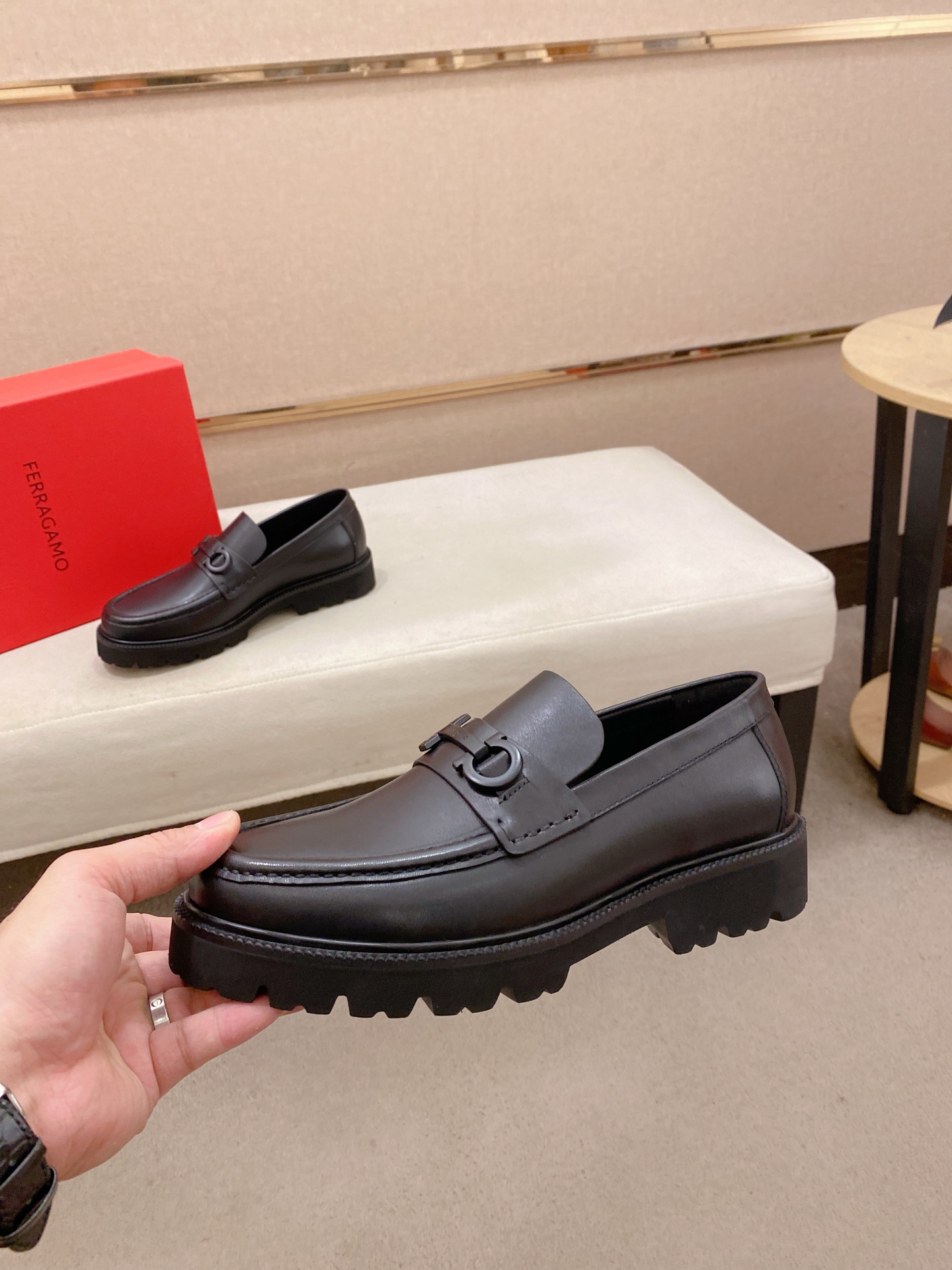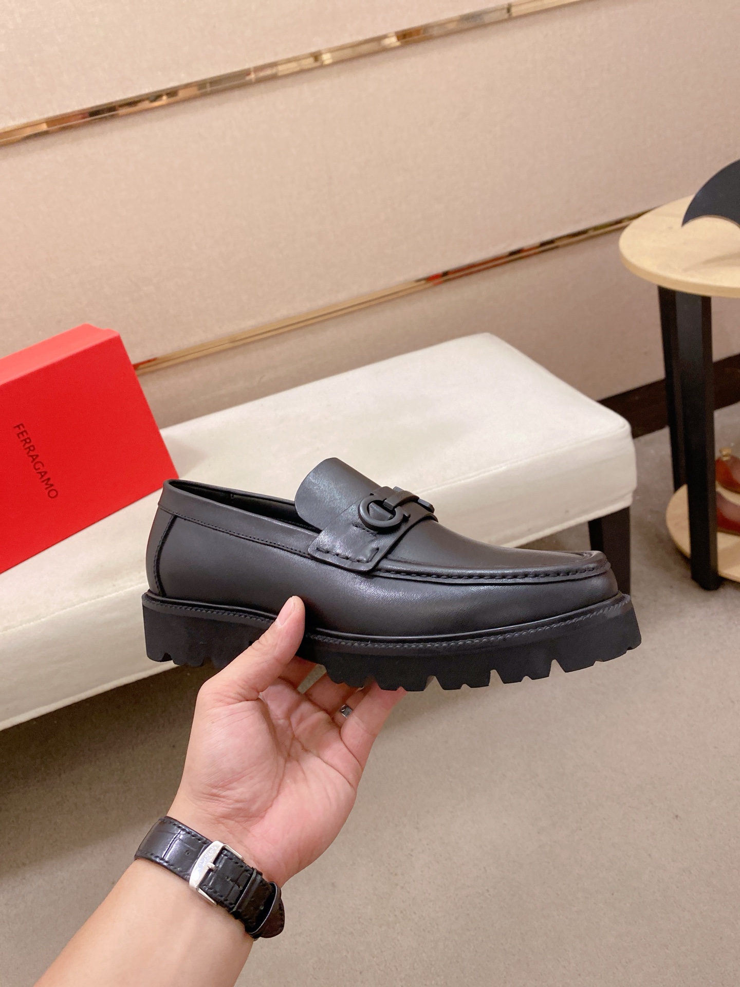 这款鞋子是AAAAA 1:1 质量 (非常棒). 使用了和原版一模一样的材料. 商标部分也保持了和菲拉格慕/Salvatore Ferragamo一样. 图片拍摄是实物鞋子拍摄, 您所收到的实物保证和我们图片一模一样.