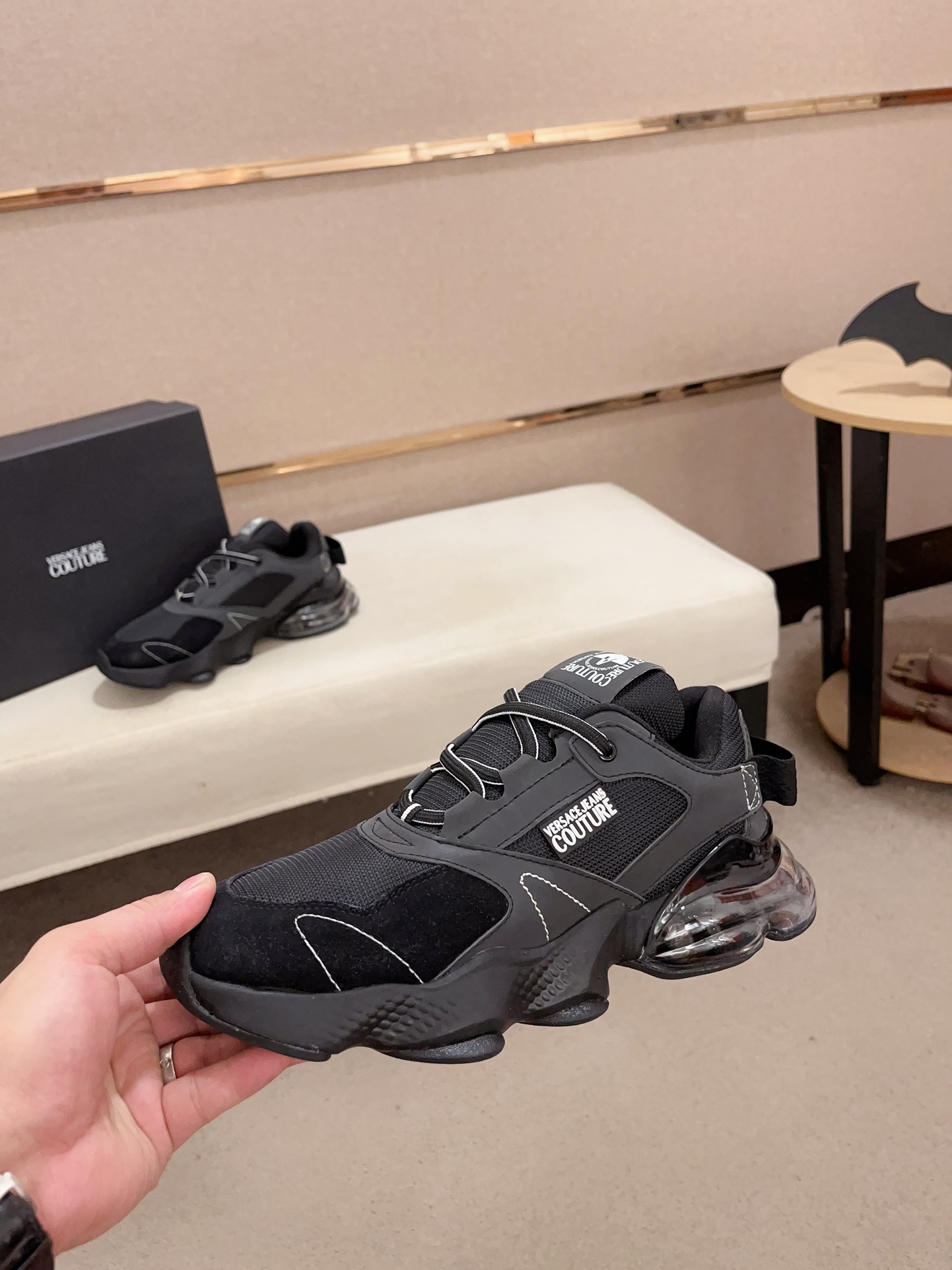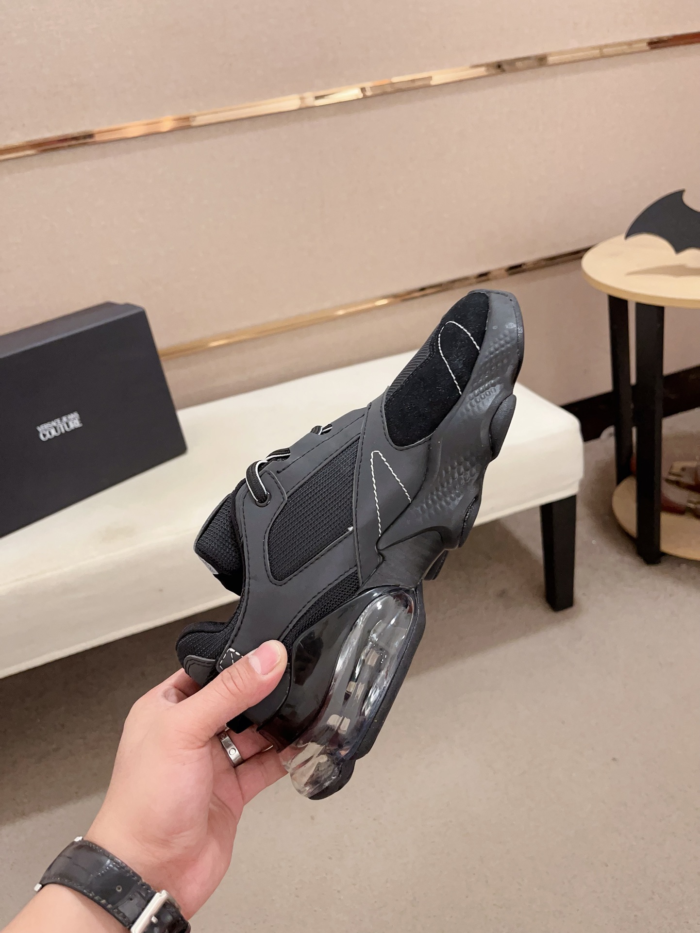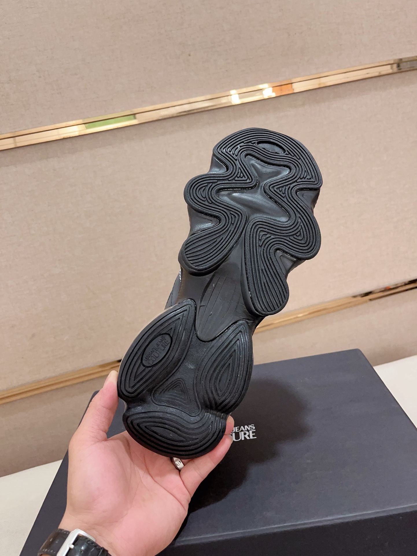 这款鞋子是AAAAA 1:1 质量 (非常棒). 使用了和原版一模一样的材料. 商标部分也保持了和范思哲/Versace一样. 图片拍摄是实物鞋子拍摄, 您所收到的实物保证和我们图片一模一样.