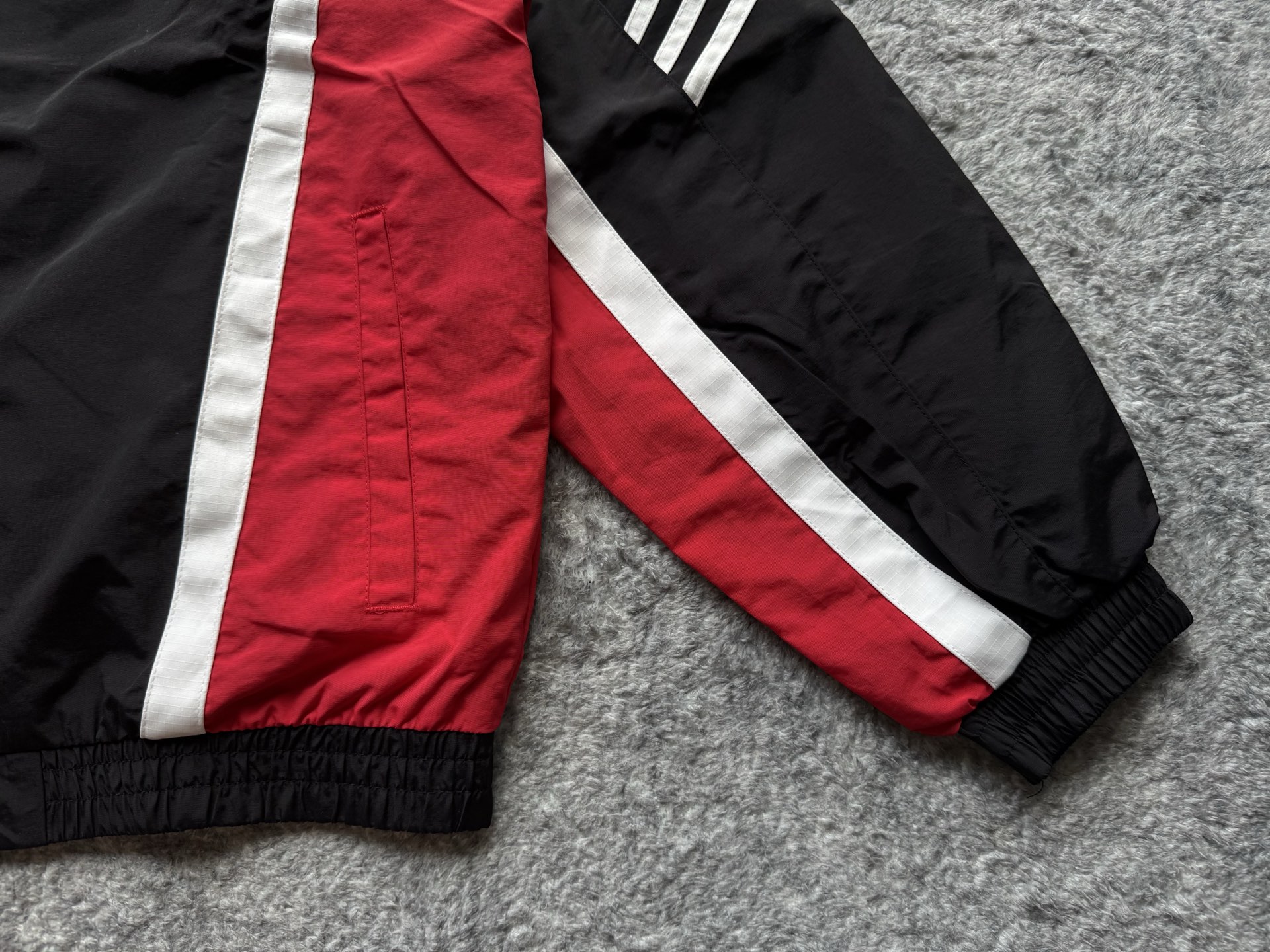 这款衣服是AAAAA 1:1 质量 (非常棒). 使用了和原版一模一样的材料. 商标部分也保持了和阿迪达斯/Adidas一样. 图片拍摄是实物衣服拍摄, 您所收到的实物保证和我们图片一模一样.