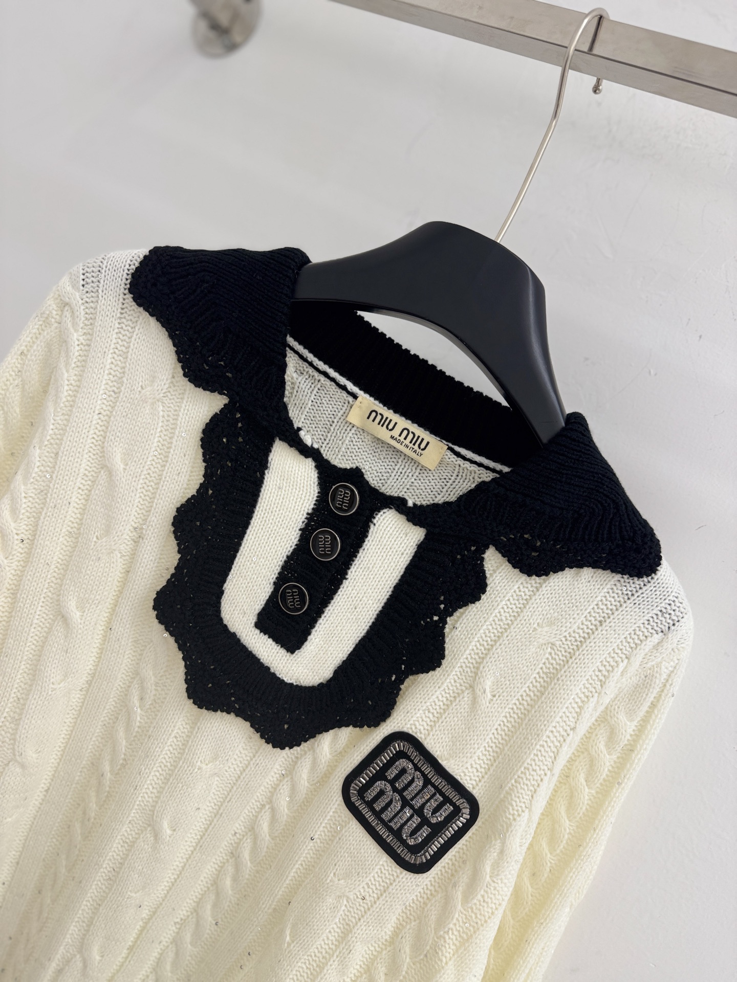 这款衣服是AAAAA 1:1 质量 (非常棒). 使用了和原版一模一样的材料. 商标部分也保持了和缪缪/Miu Miu一样. 图片拍摄是实物衣服拍摄, 您所收到的实物保证和我们图片一模一样.