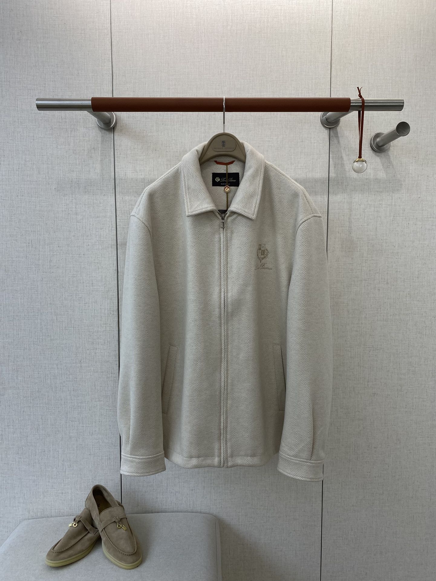 这款衣服是AAAAA 1:1 质量 (非常棒). 使用了和原版一模一样的材料. 商标部分也保持了和洛罗皮亚纳/Loro Piana一样. 图片拍摄是实物衣服拍摄, 您所收到的实物保证和我们图片一模一样.