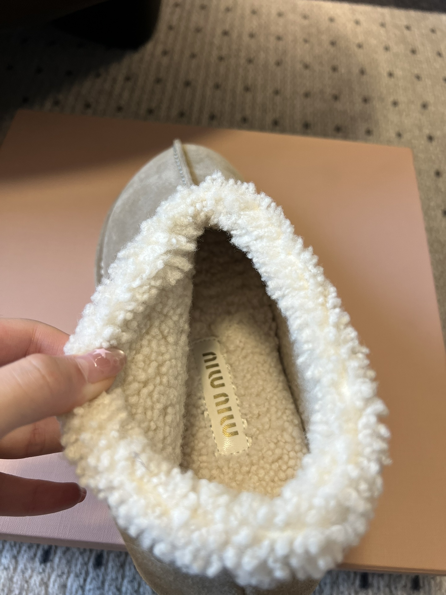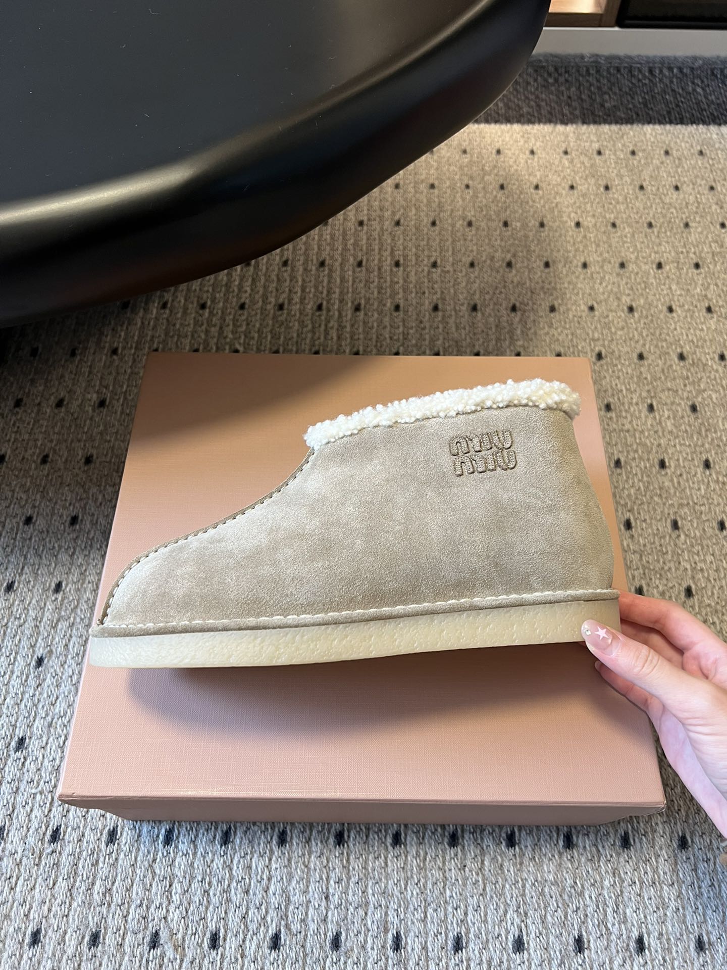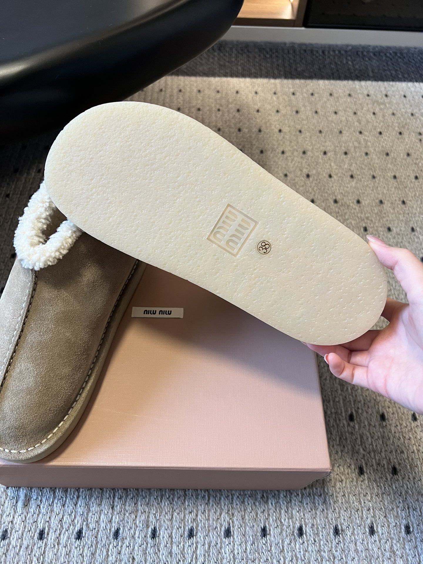 这款鞋子是AAAAA 1:1 质量 (非常棒). 使用了和原版一模一样的材料. 商标部分也保持了和缪缪/Miu Miu一样. 图片拍摄是实物鞋子拍摄, 您所收到的实物保证和我们图片一模一样.