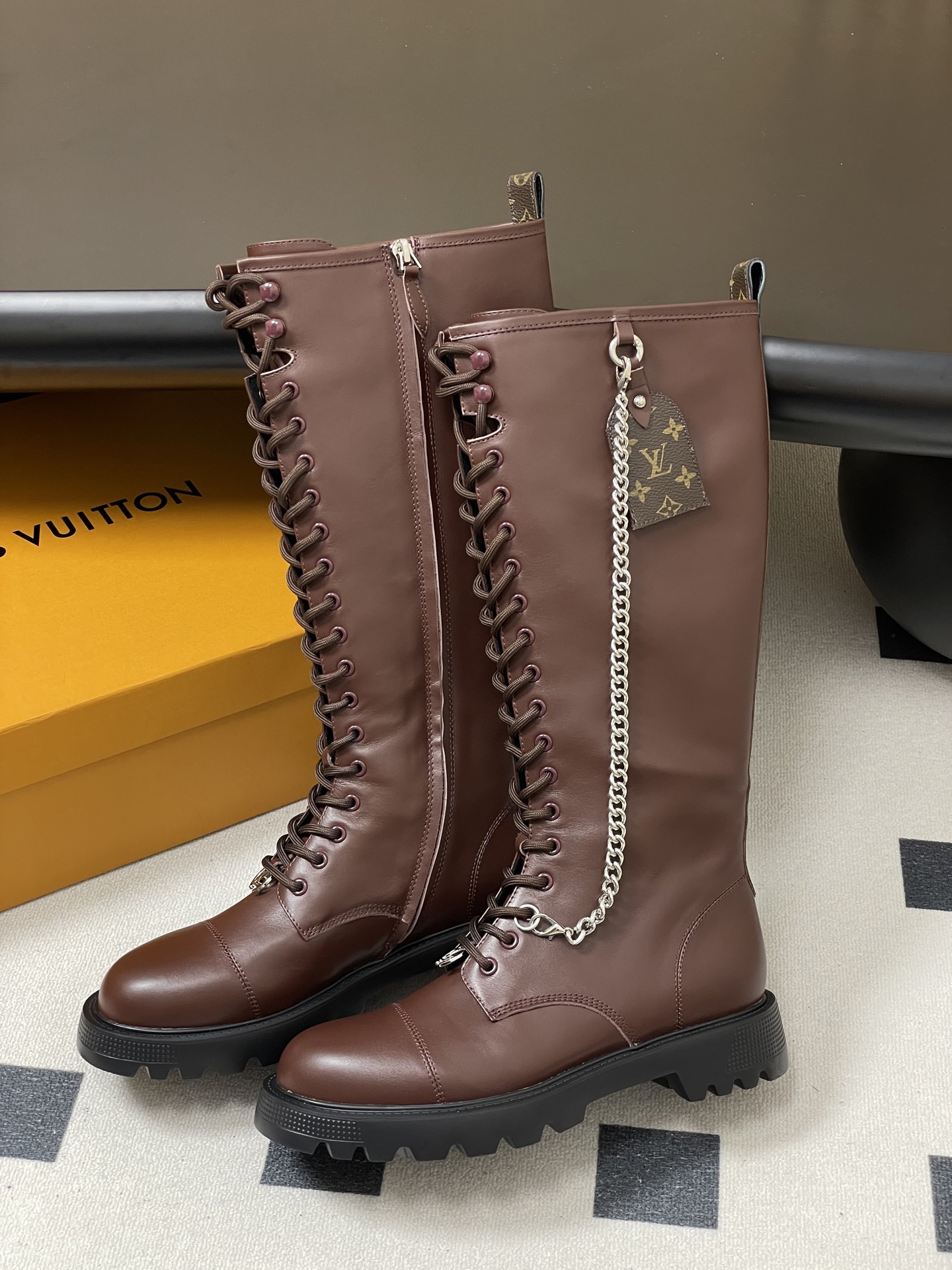 这款鞋子是AAAAA 1:1 质量 (非常棒). 使用了和原版一模一样的材料. 商标部分也保持了和路易威登/Louis Vuitton一样. 图片拍摄是实物鞋子拍摄, 您所收到的实物保证和我们图片一模一样.