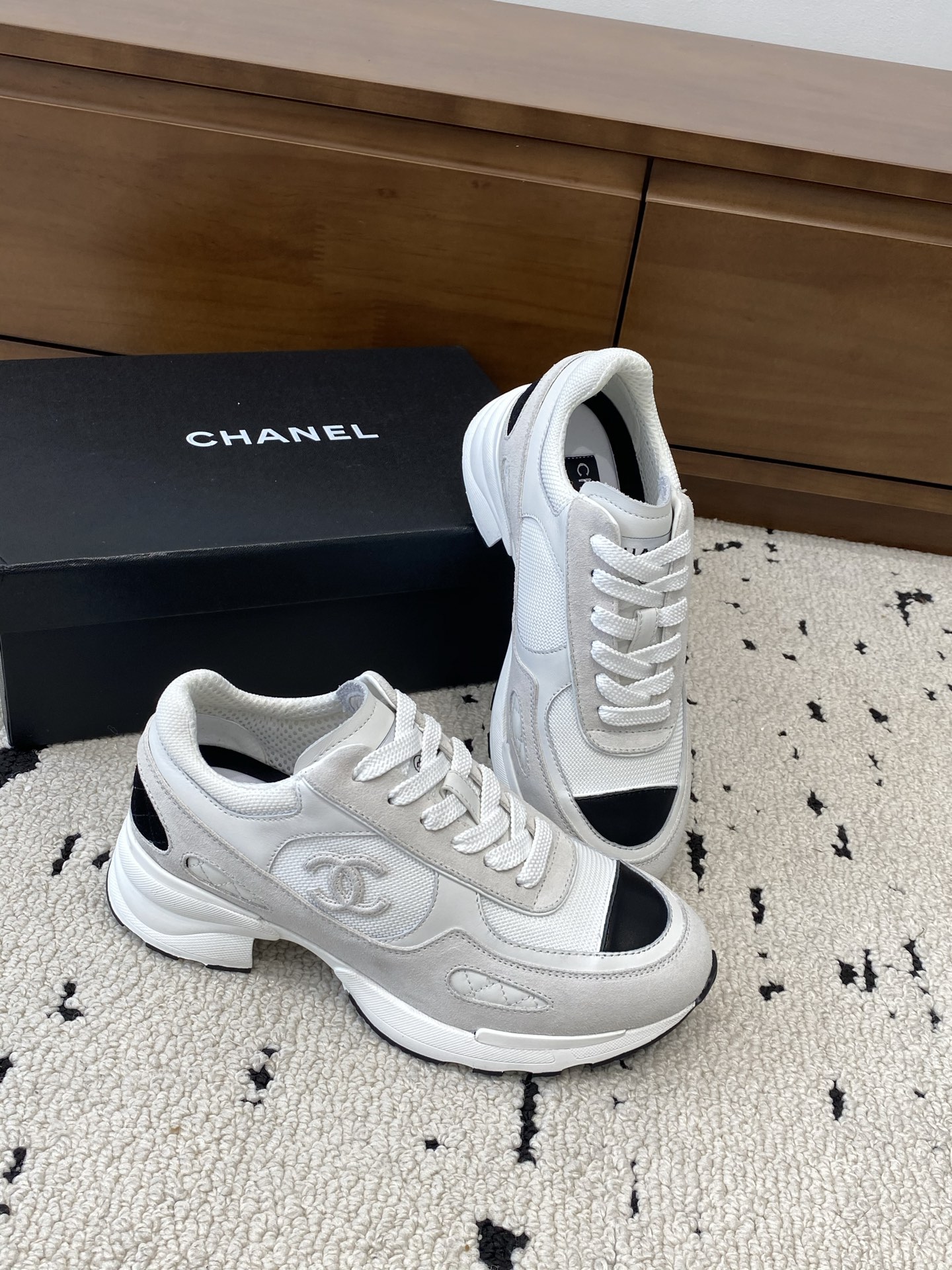 这款鞋子是AAAAA 1:1 质量 (非常棒). 使用了和原版一模一样的材料. 商标部分也保持了和香奈儿/Chanel一样. 图片拍摄是实物鞋子拍摄, 您所收到的实物保证和我们图片一模一样.