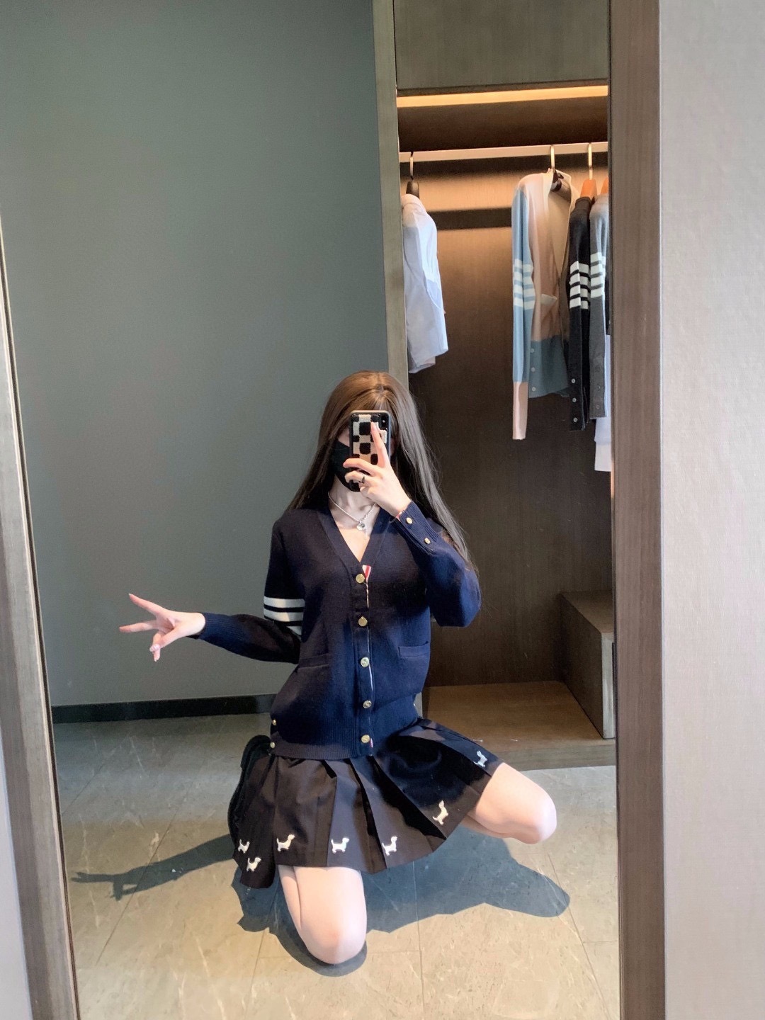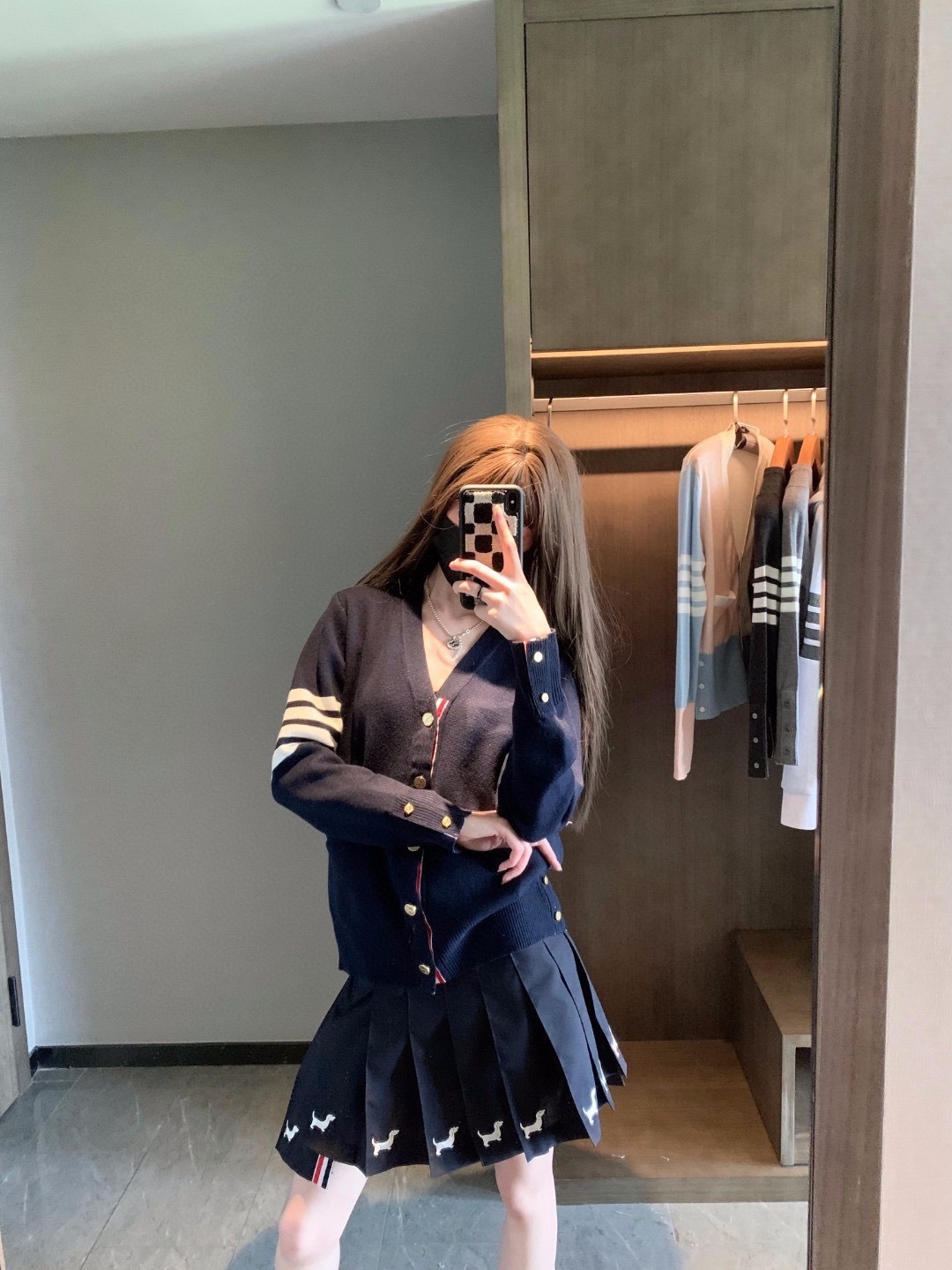 这款衣服是AAAAA 1:1 质量 (非常棒). 使用了和原版一模一样的材料. 商标部分也保持了和汤姆布朗/Thom Browne一样. 图片拍摄是实物衣服拍摄, 您所收到的实物保证和我们图片一模一样.