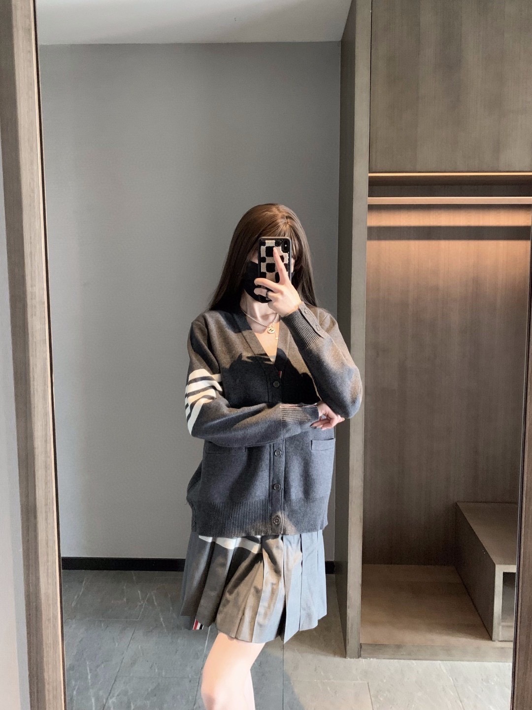 这款衣服是AAAAA 1:1 质量 (非常棒). 使用了和原版一模一样的材料. 商标部分也保持了和汤姆布朗/Thom Browne一样. 图片拍摄是实物衣服拍摄, 您所收到的实物保证和我们图片一模一样.