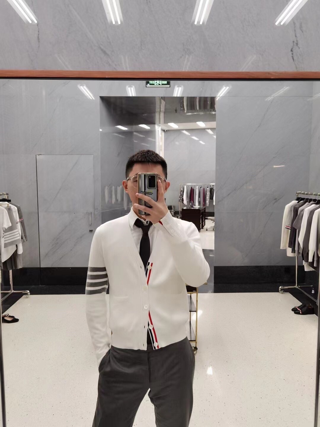 这款衣服是AAAAA 1:1 质量 (非常棒). 使用了和原版一模一样的材料. 商标部分也保持了和汤姆布朗/Thom Browne一样. 图片拍摄是实物衣服拍摄, 您所收到的实物保证和我们图片一模一样.