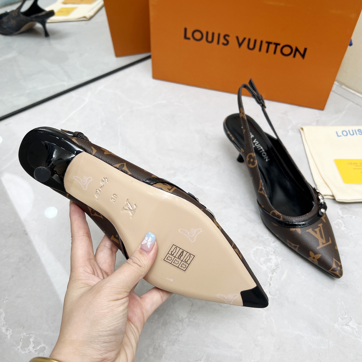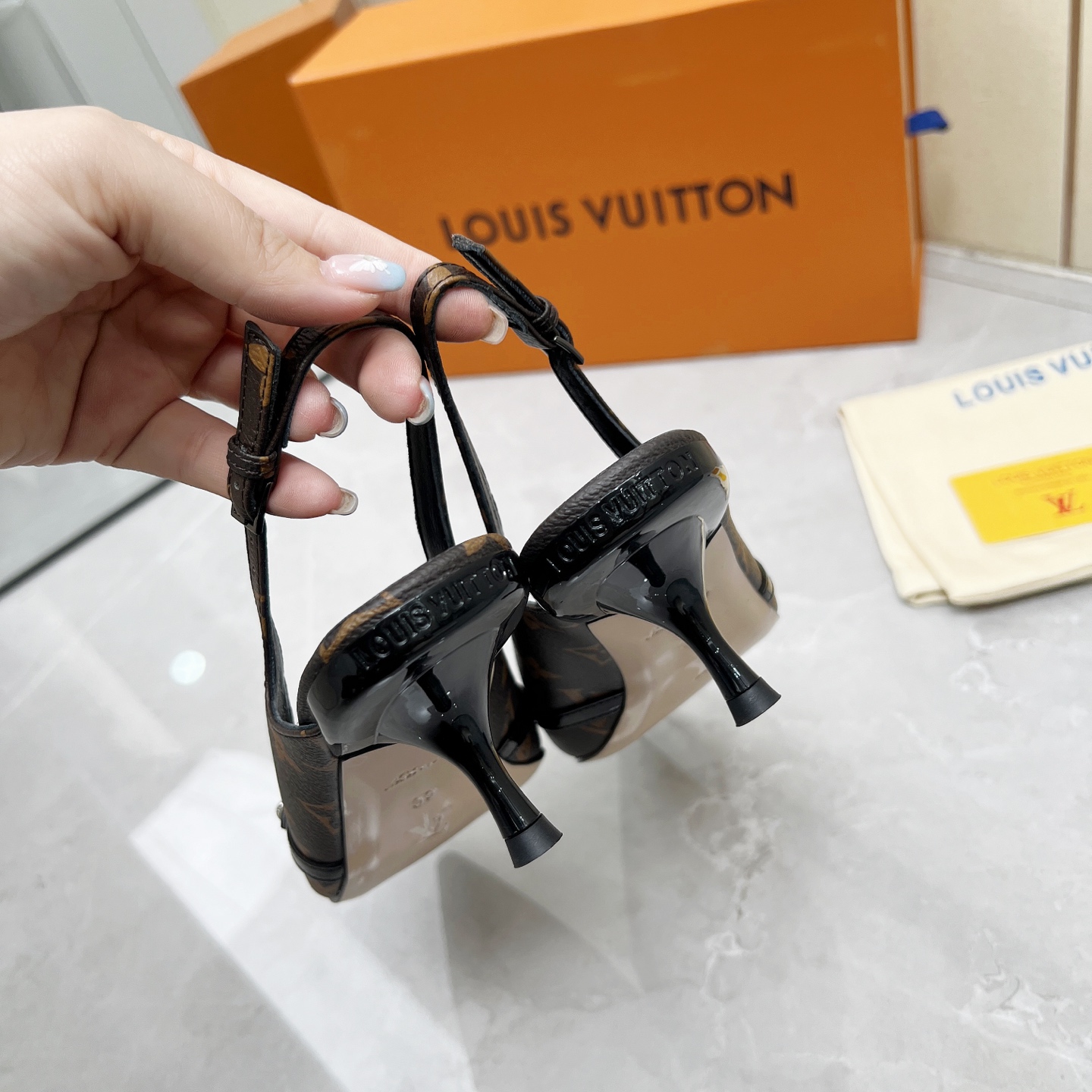 这款鞋子是AAAAA 1:1 质量 (非常棒). 使用了和原版一模一样的材料. 商标部分也保持了和路易威登/Louis Vuitton一样. 图片拍摄是实物鞋子拍摄, 您所收到的实物保证和我们图片一模一样.
