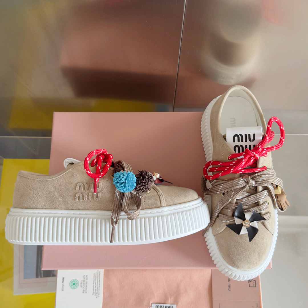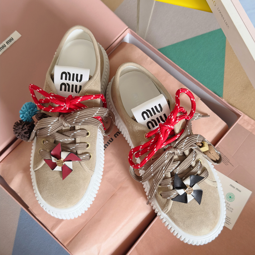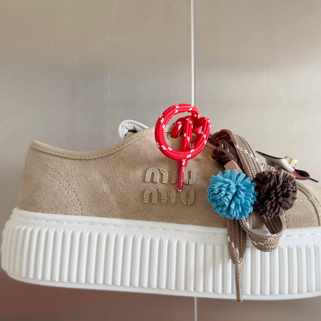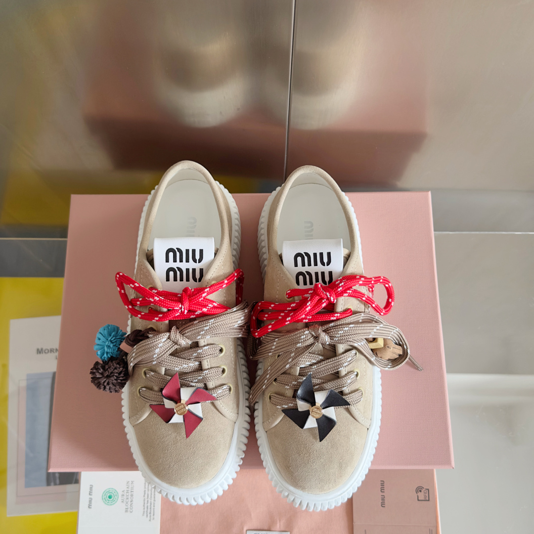 这款鞋子是AAAAA 1:1 质量 (非常棒). 使用了和原版一模一样的材料. 商标部分也保持了和缪缪/Miu Miu一样. 图片拍摄是实物鞋子拍摄, 您所收到的实物保证和我们图片一模一样.