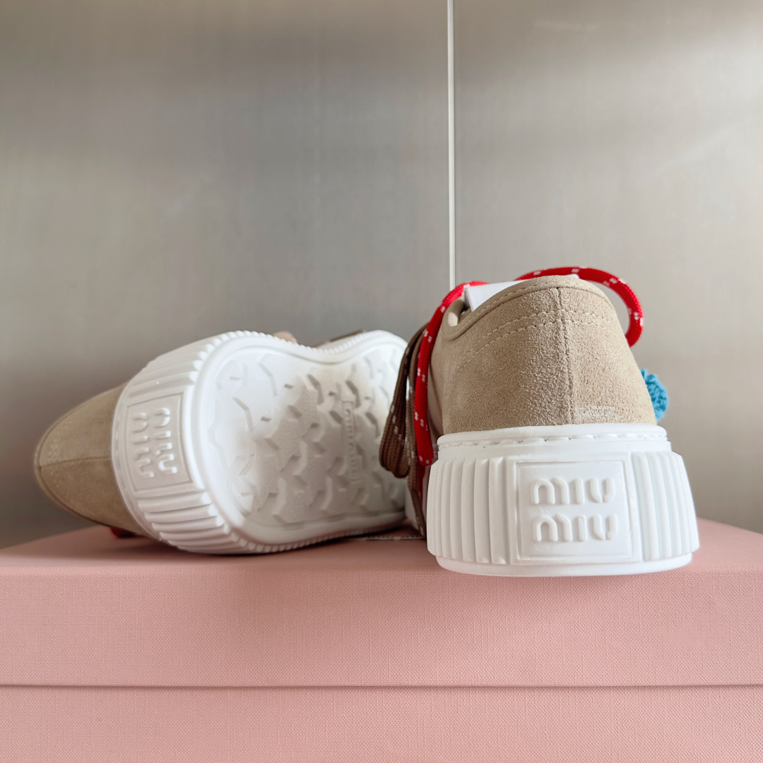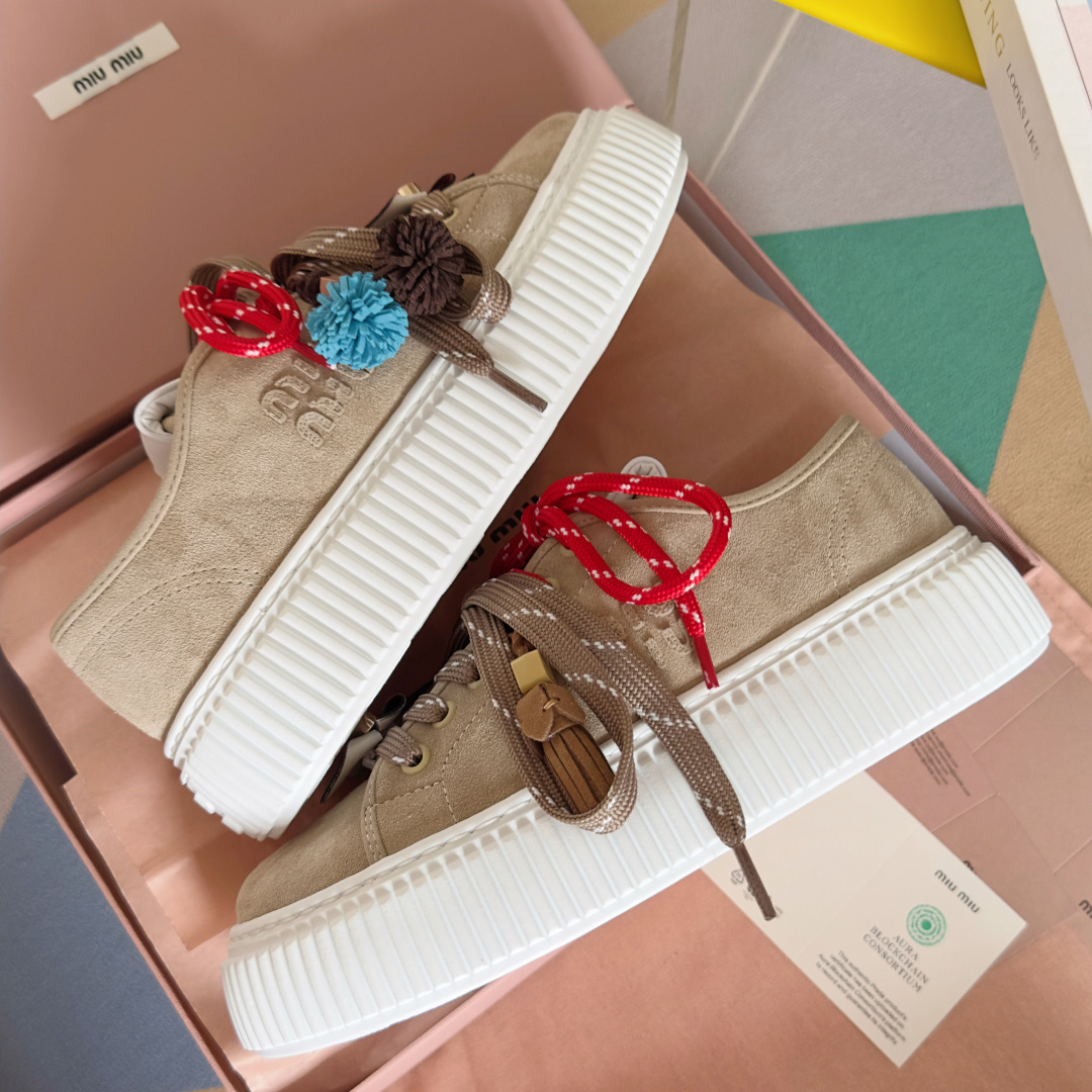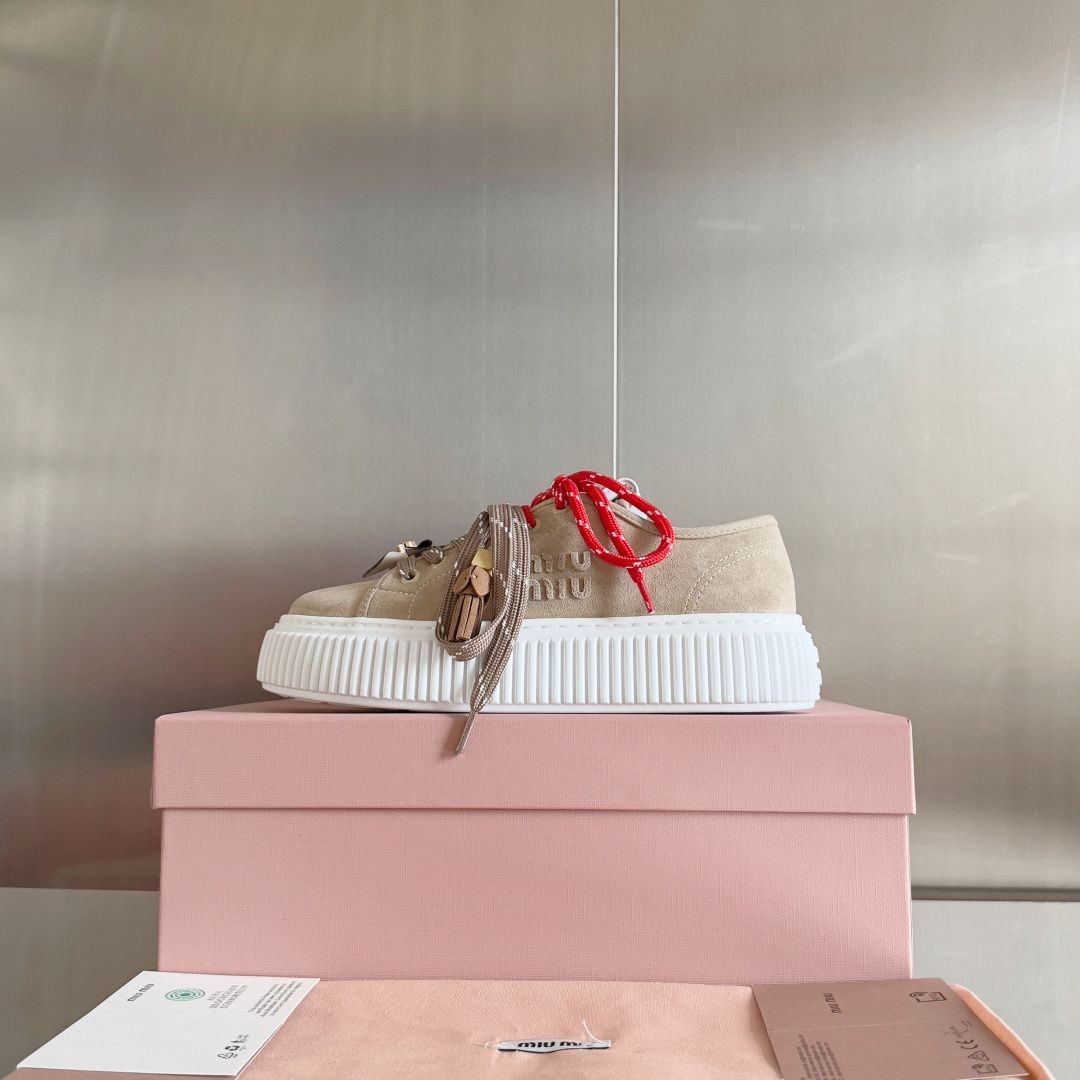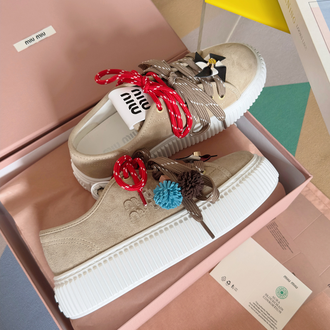 这款鞋子是AAAAA 1:1 质量 (非常棒). 使用了和原版一模一样的材料. 商标部分也保持了和缪缪/Miu Miu一样. 图片拍摄是实物鞋子拍摄, 您所收到的实物保证和我们图片一模一样.