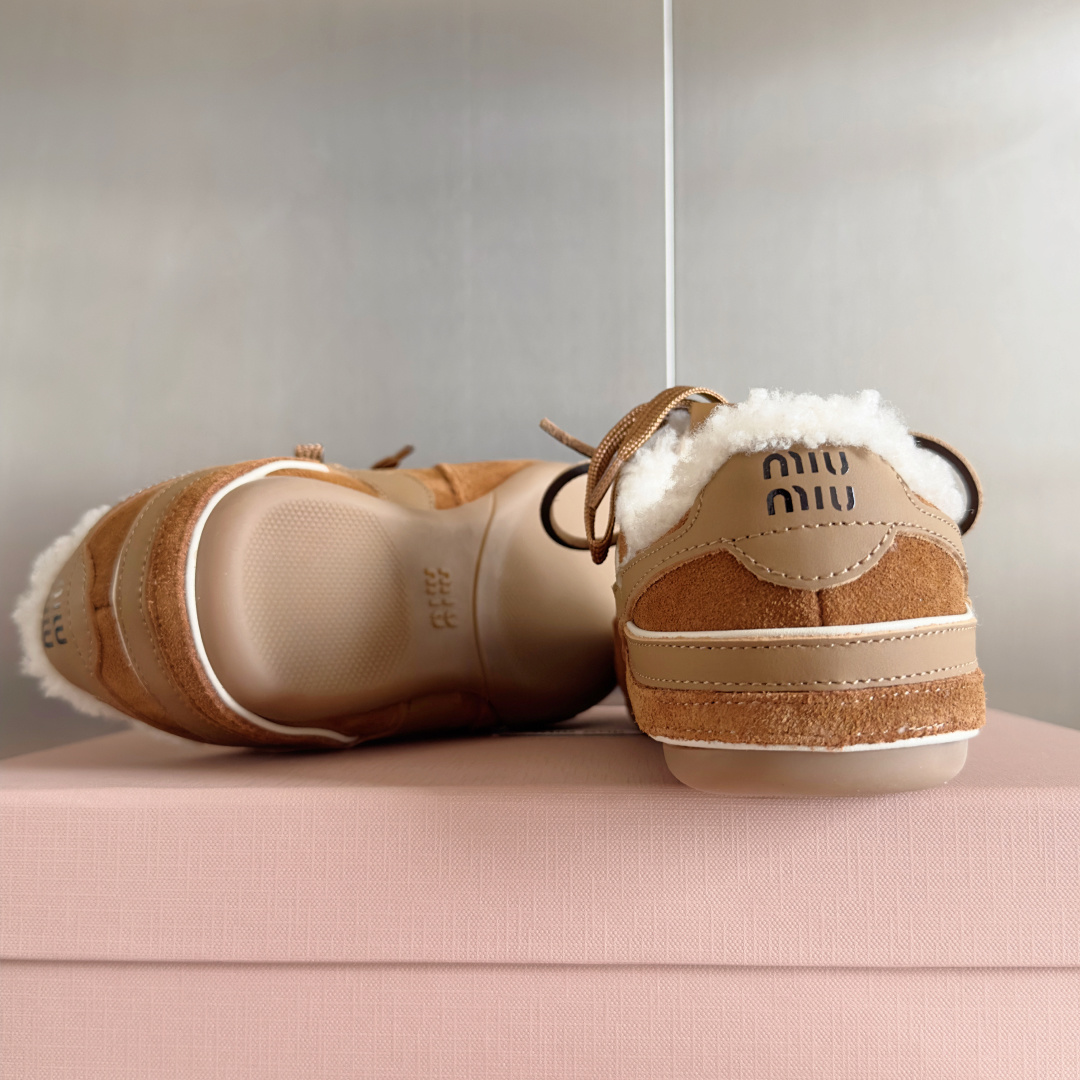 这款鞋子是AAAAA 1:1 质量 (非常棒). 使用了和原版一模一样的材料. 商标部分也保持了和缪缪/Miu Miu一样. 图片拍摄是实物鞋子拍摄, 您所收到的实物保证和我们图片一模一样.