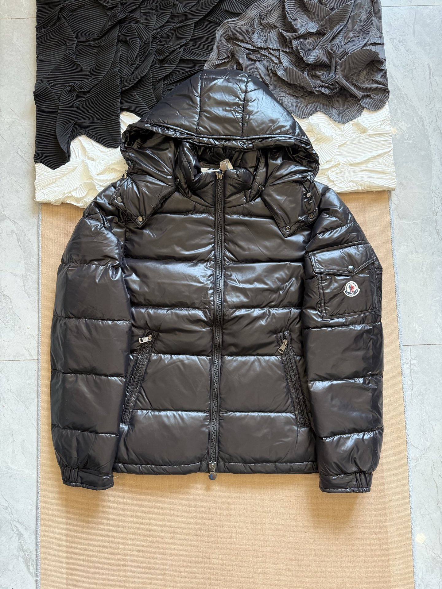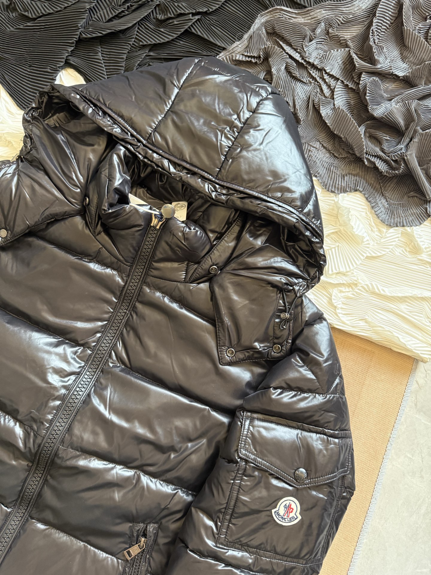 这款衣服是AAAAA 1:1 质量 (非常棒). 使用了和原版一模一样的材料. 商标部分也保持了和盟可睐/moncler一样. 图片拍摄是实物衣服拍摄, 您所收到的实物保证和我们图片一模一样.