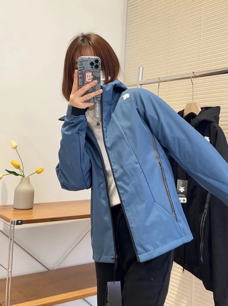 这款衣服是AAAAA 1:1 质量 (非常棒). 使用了和原版一模一样的材料. 商标部分也保持了和Descente一样. 图片拍摄是实物衣服拍摄, 您所收到的实物保证和我们图片一模一样.