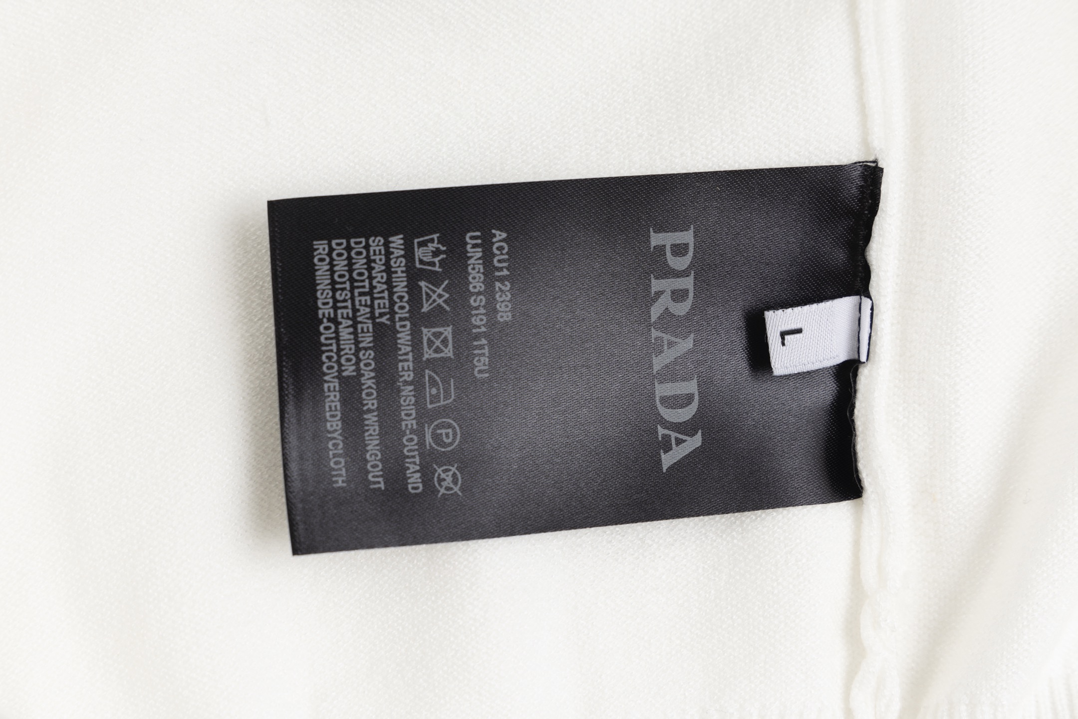 这款衣服是AAAAA 1:1 质量 (非常棒). 使用了和原版一模一样的材料. 商标部分也保持了和普拉达/Prada一样. 图片拍摄是实物衣服拍摄, 您所收到的实物保证和我们图片一模一样.