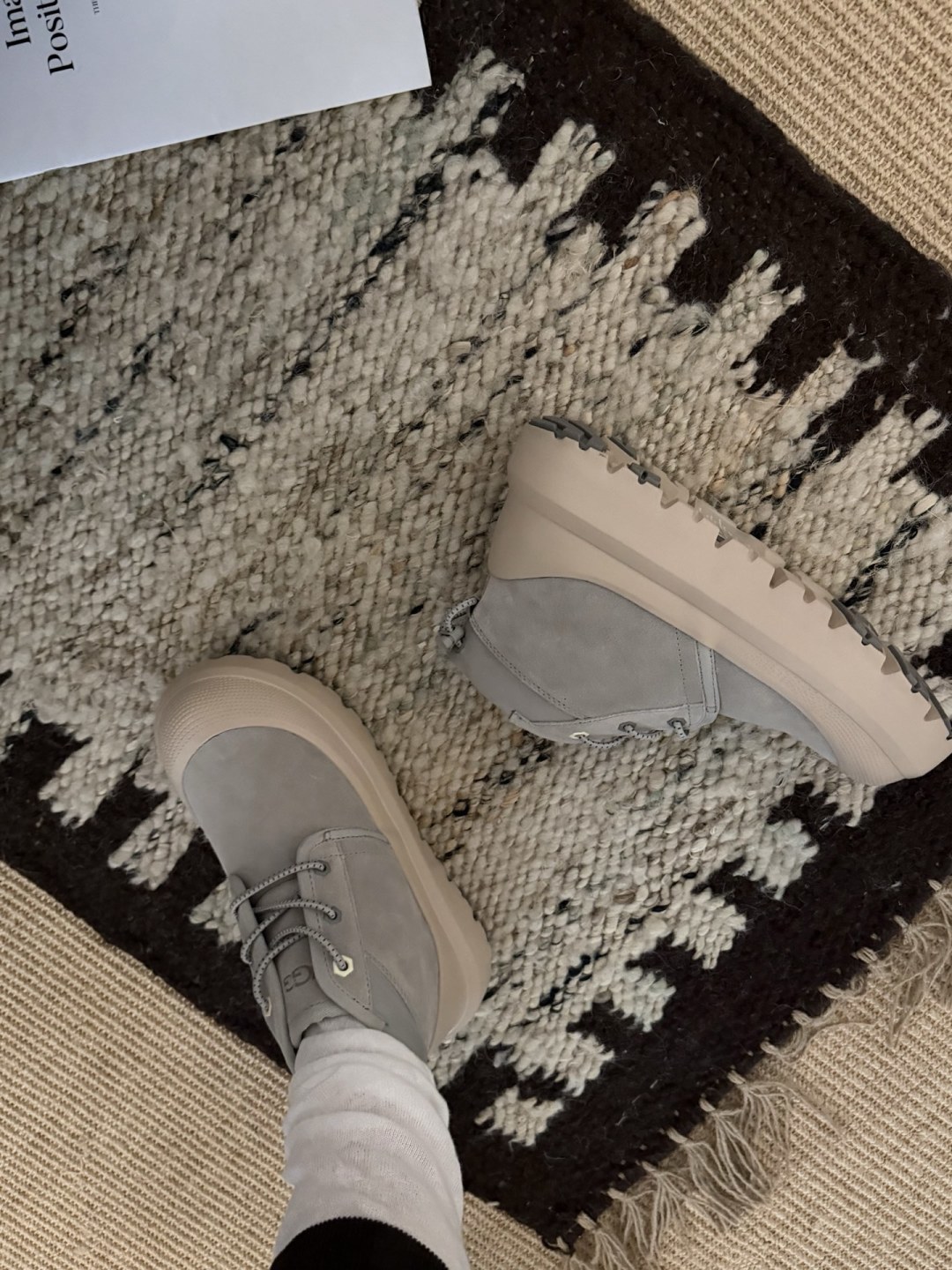 这款兒童鞋是AAAAA 1:1 质量 (非常棒). 使用了和原版一模一样的材料. 商标部分也保持了和UGG雪地靴一样. 图片拍摄是实物兒童鞋拍摄, 您所收到的实物保证和我们图片一模一样.