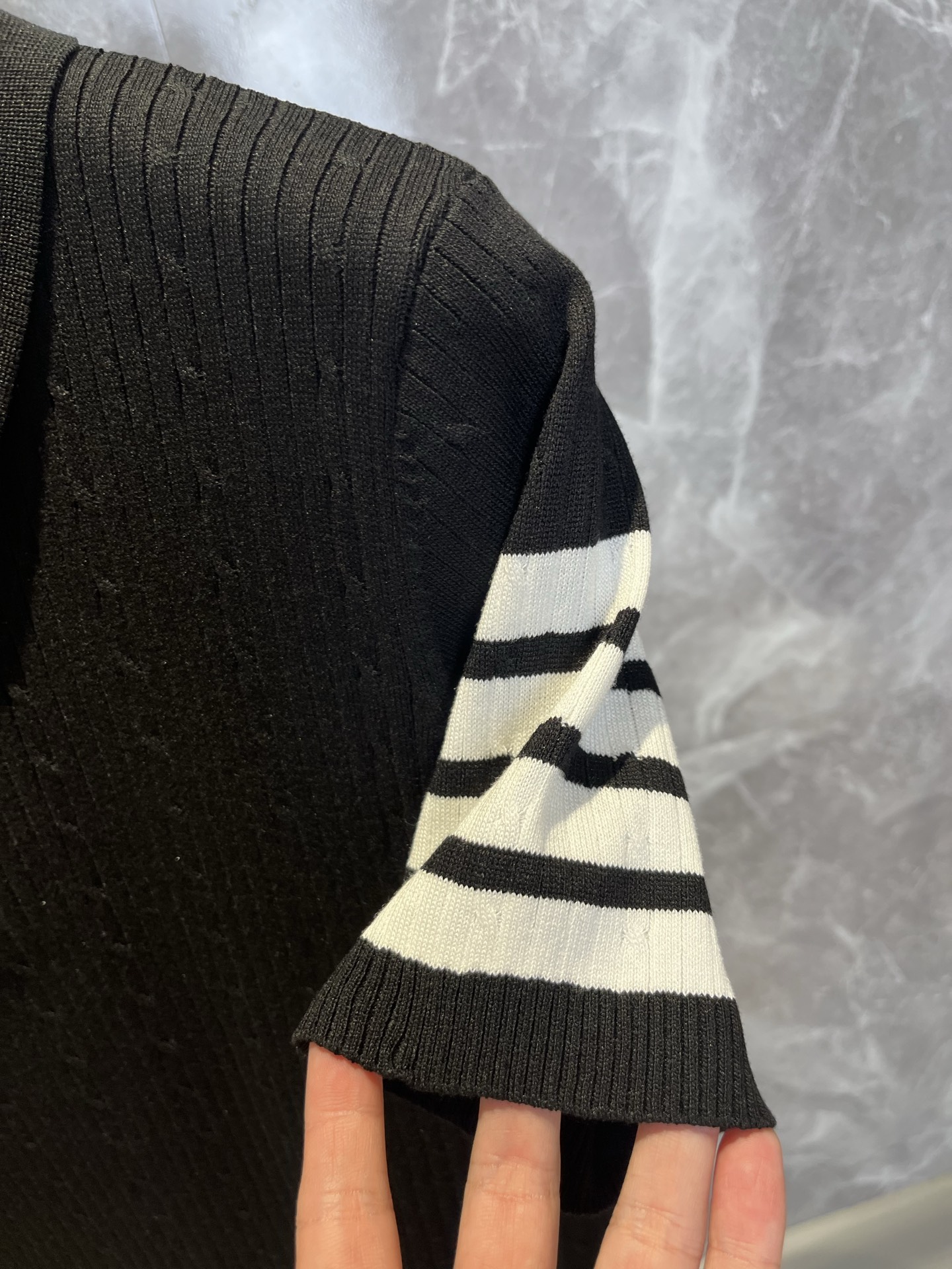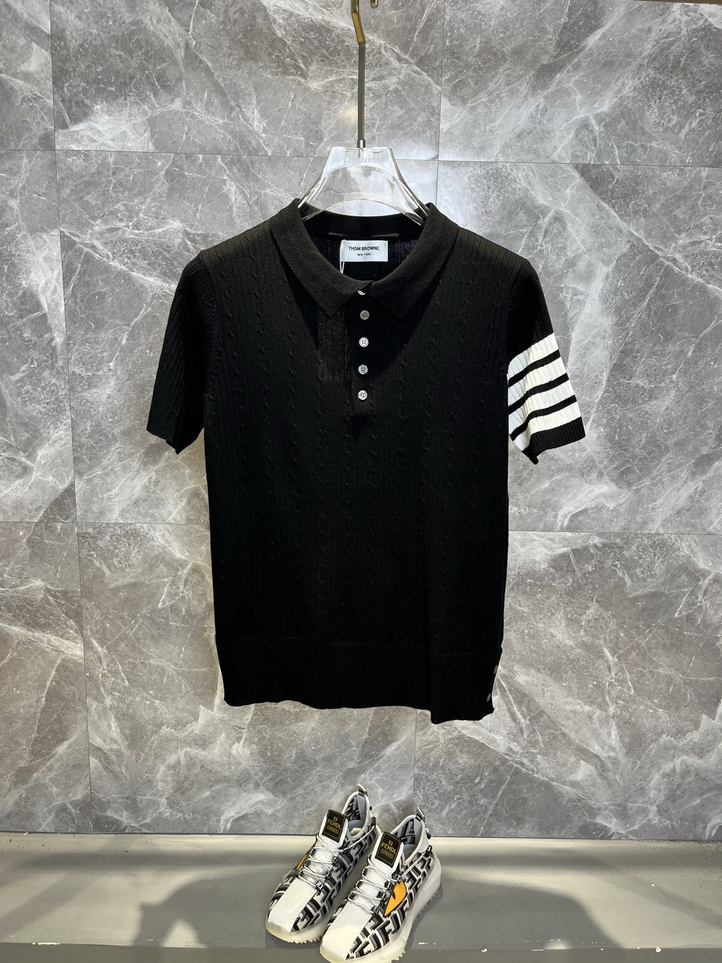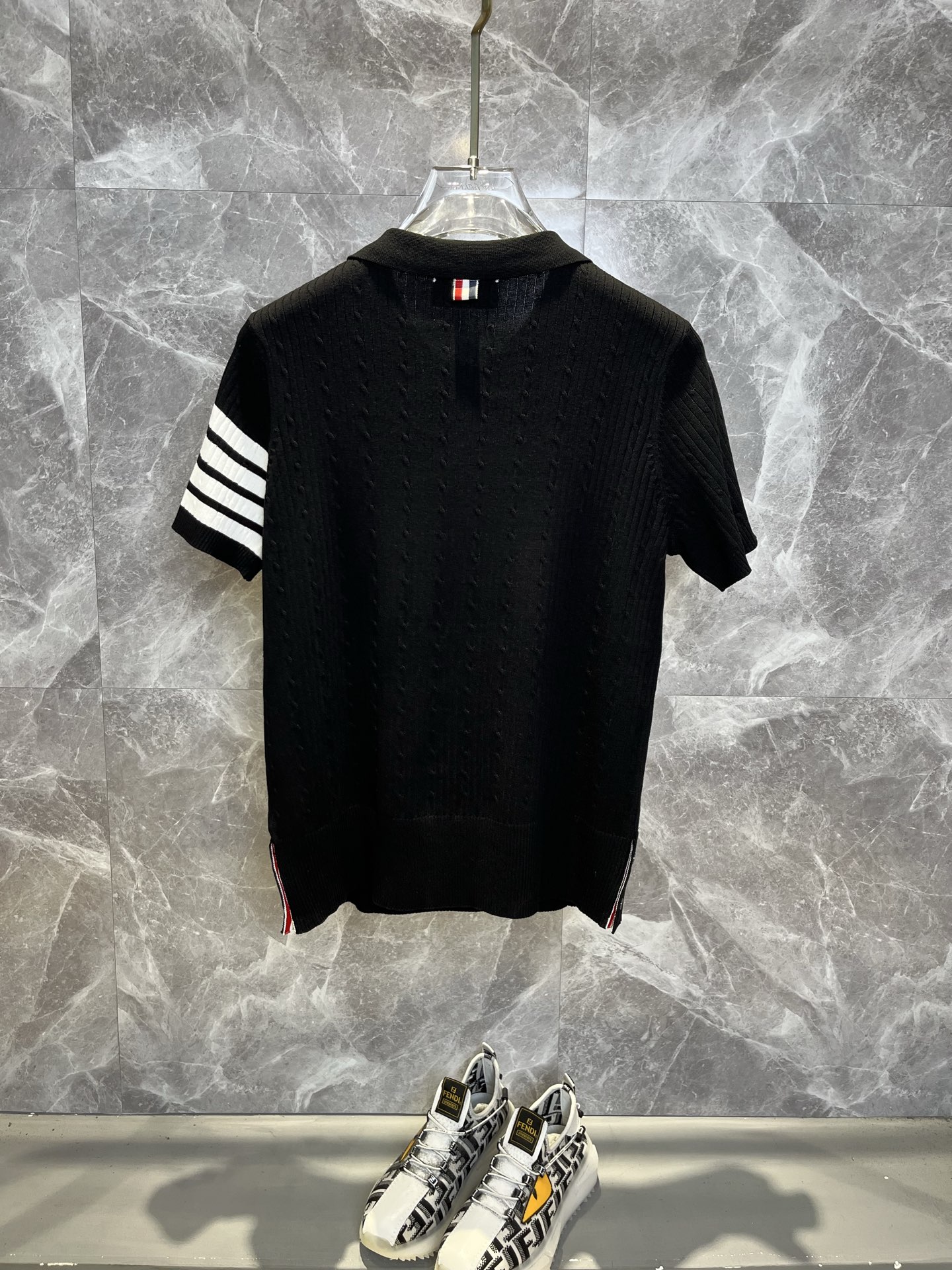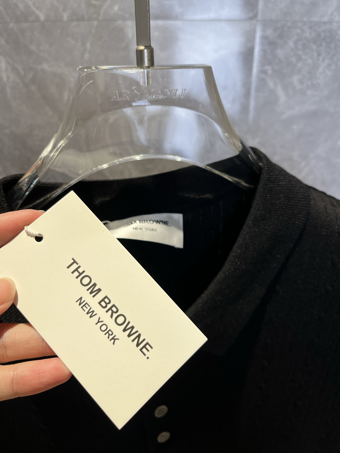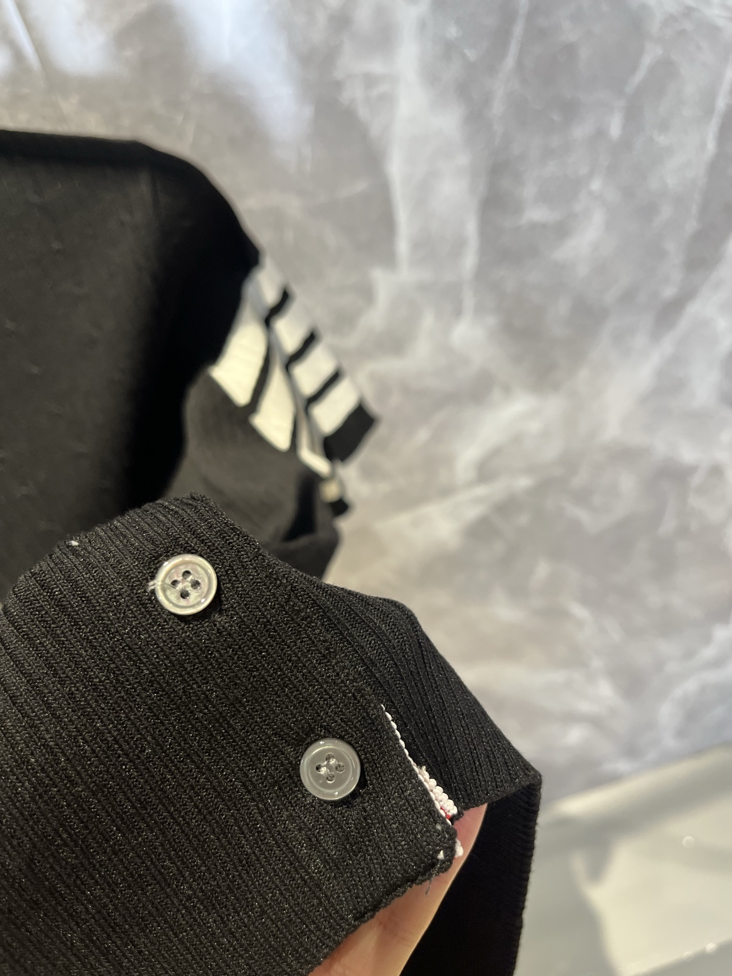 这款衣服是AAAAA 1:1 质量 (非常棒). 使用了和原版一模一样的材料. 商标部分也保持了和汤姆布朗/Thom Browne一样. 图片拍摄是实物衣服拍摄, 您所收到的实物保证和我们图片一模一样.
