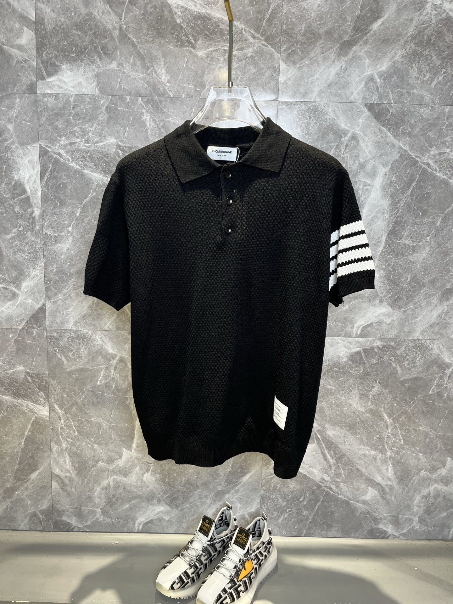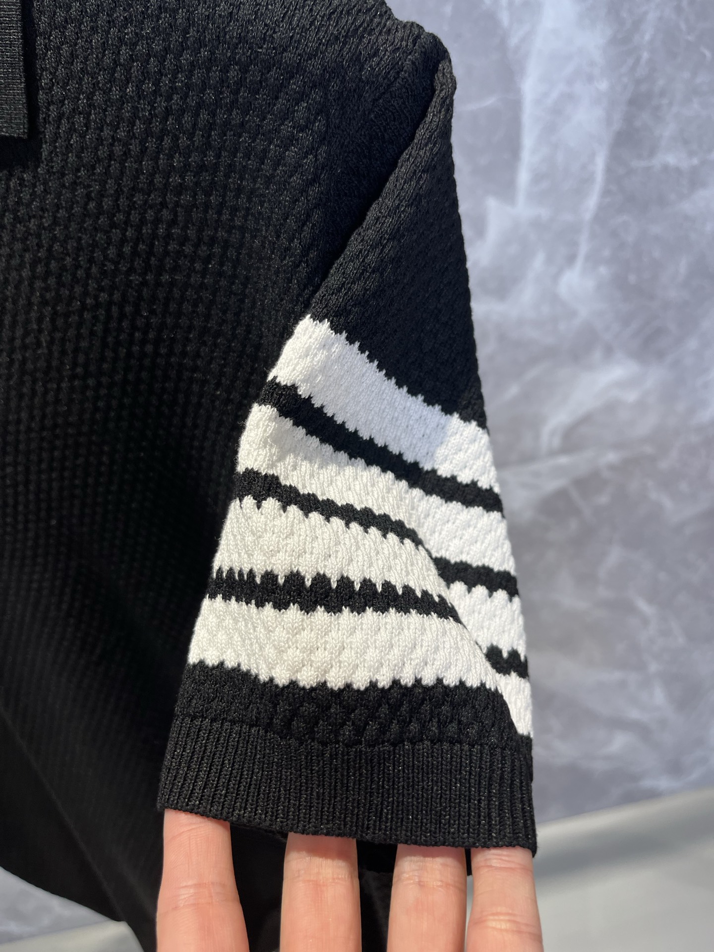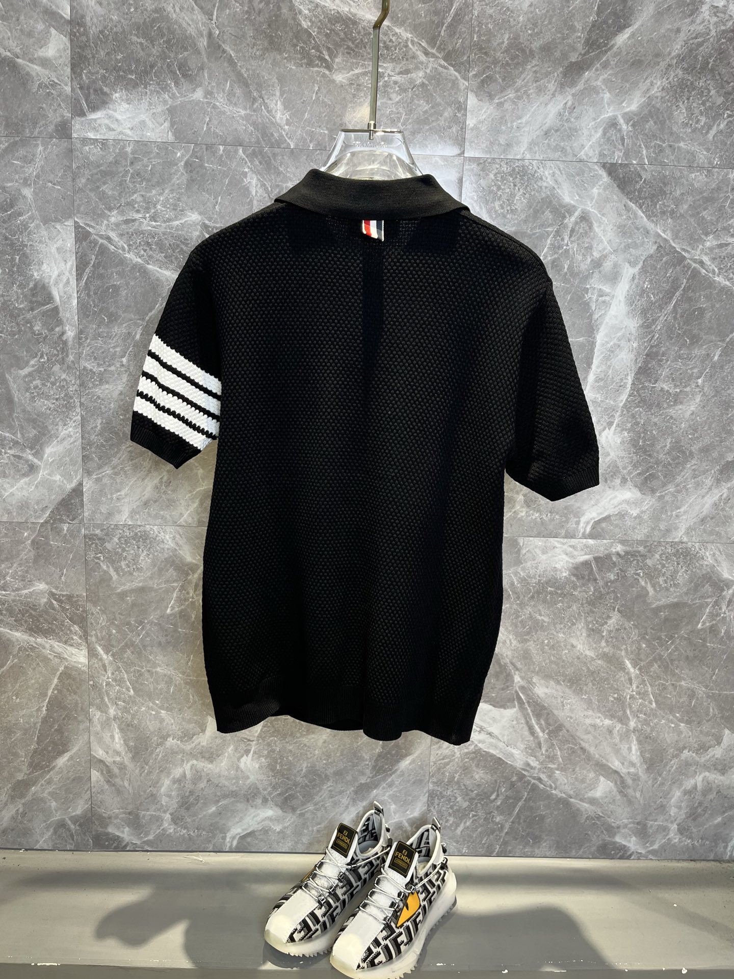 这款衣服是AAAAA 1:1 质量 (非常棒). 使用了和原版一模一样的材料. 商标部分也保持了和汤姆布朗/Thom Browne一样. 图片拍摄是实物衣服拍摄, 您所收到的实物保证和我们图片一模一样.