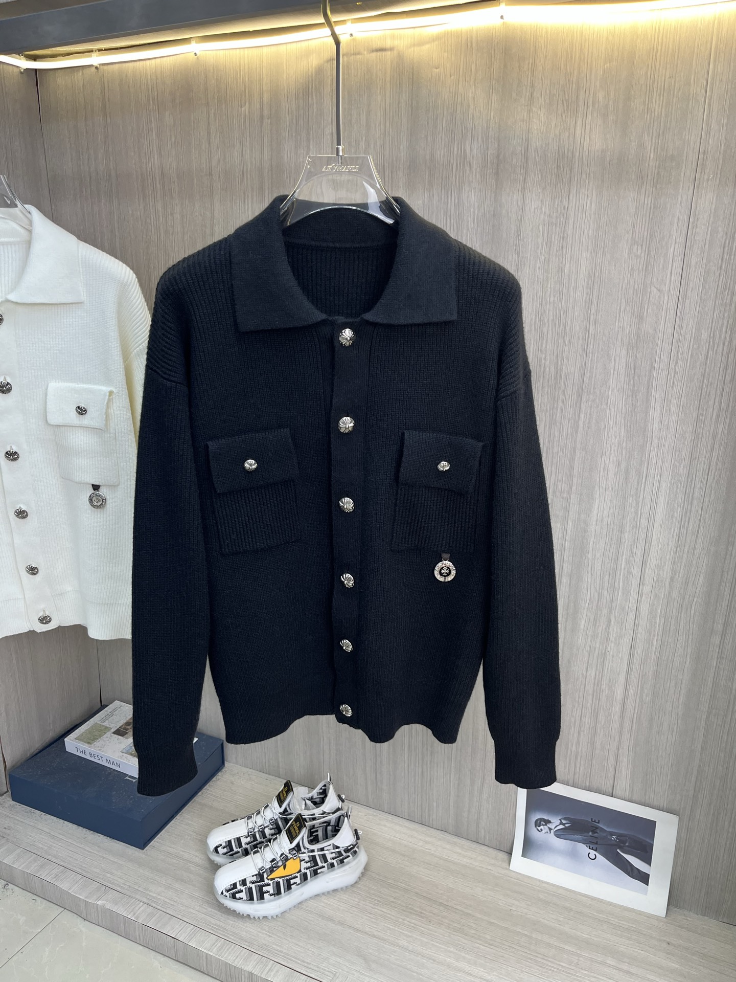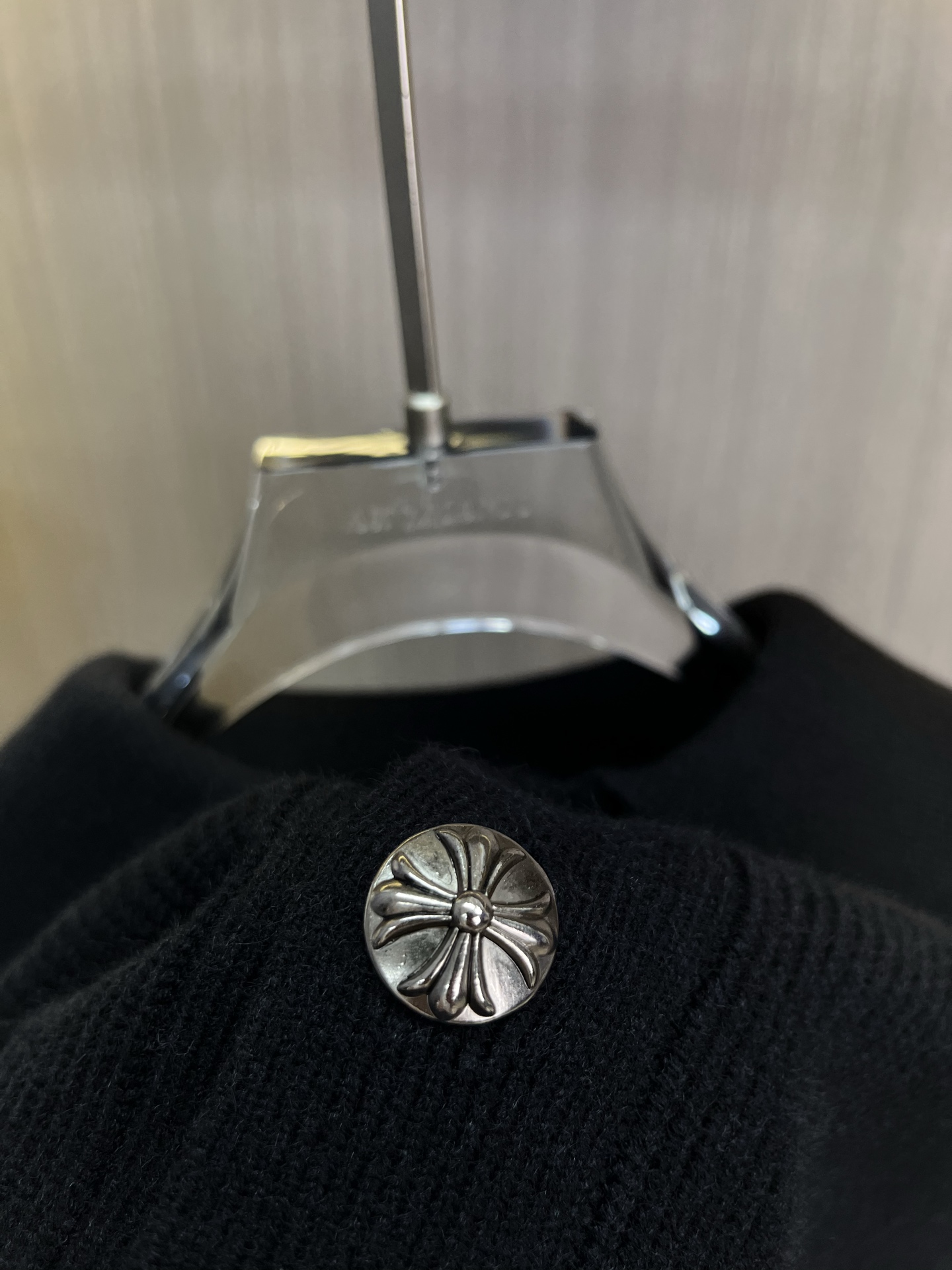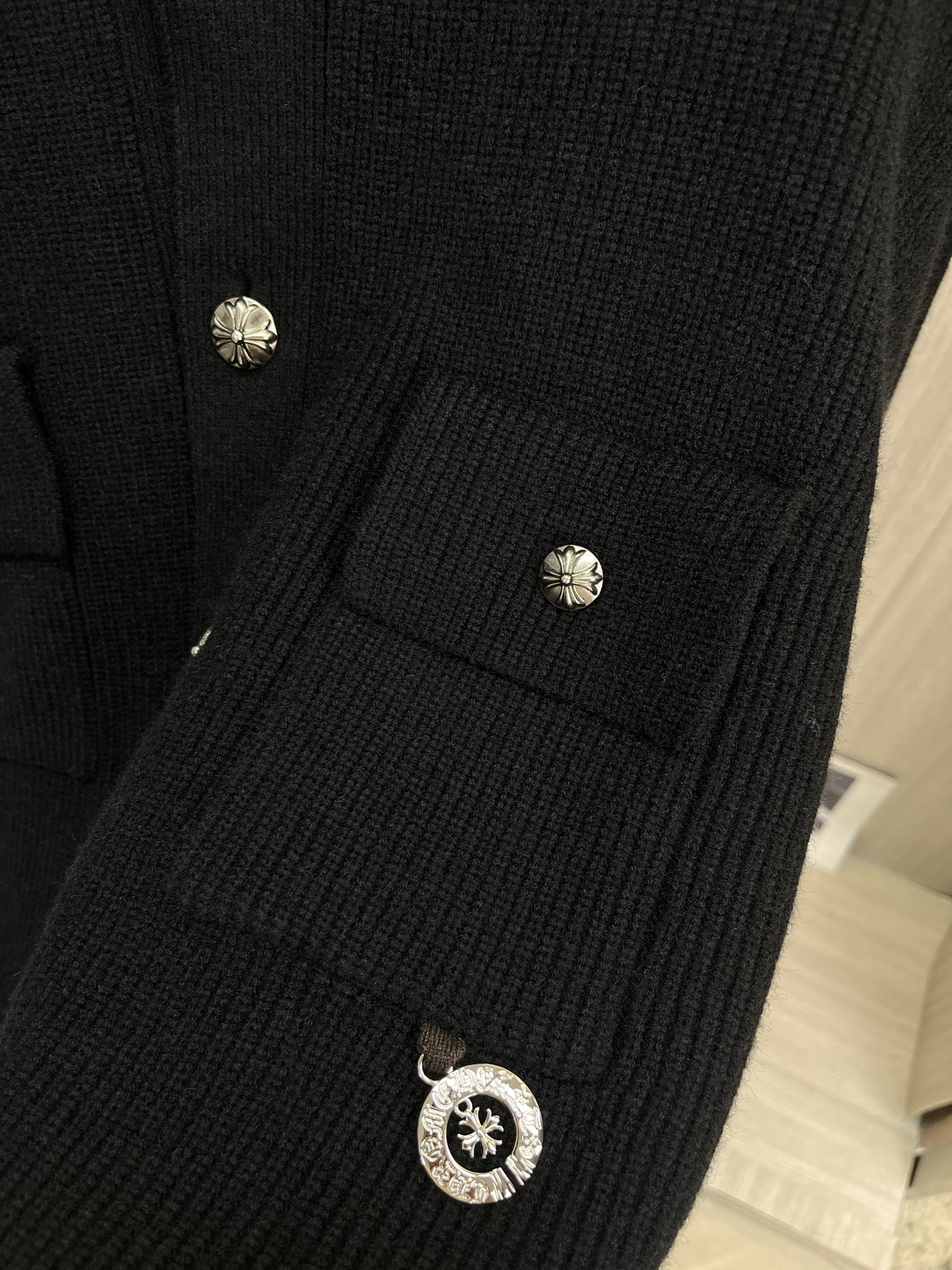 这款衣服是AAAAA 1:1 质量 (非常棒). 使用了和原版一模一样的材料. 商标部分也保持了和克罗心/Chrome Hearts一样. 图片拍摄是实物衣服拍摄, 您所收到的实物保证和我们图片一模一样.