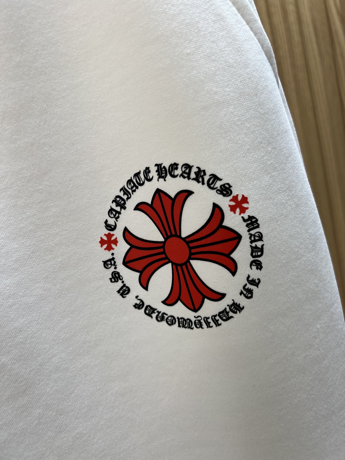 这款衣服是AAAAA 1:1 质量 (非常棒). 使用了和原版一模一样的材料. 商标部分也保持了和克罗心/Chrome Hearts一样. 图片拍摄是实物衣服拍摄, 您所收到的实物保证和我们图片一模一样.