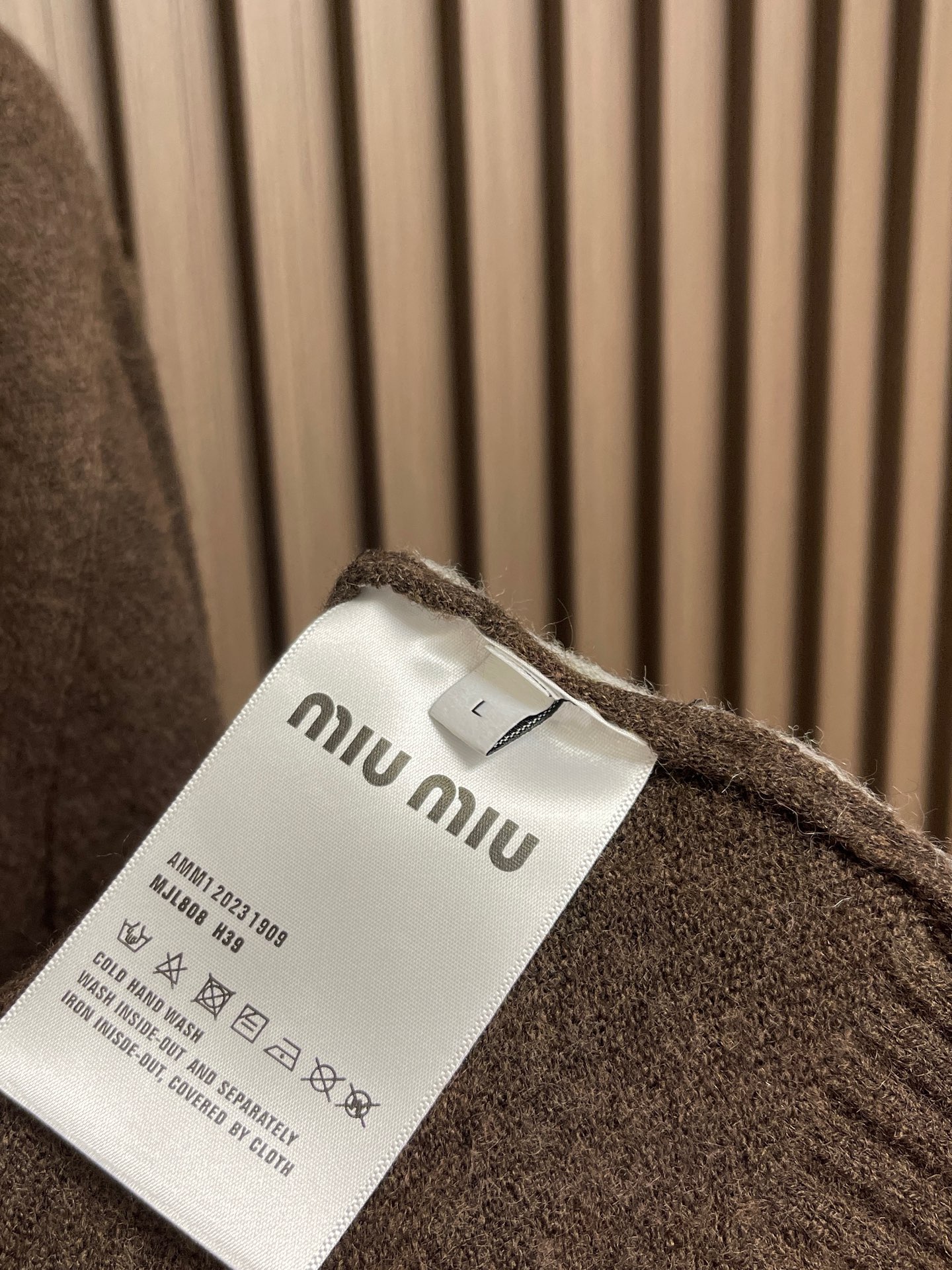 这款衣服是AAAAA 1:1 质量 (非常棒). 使用了和原版一模一样的材料. 商标部分也保持了和缪缪/Miu Miu一样. 图片拍摄是实物衣服拍摄, 您所收到的实物保证和我们图片一模一样.