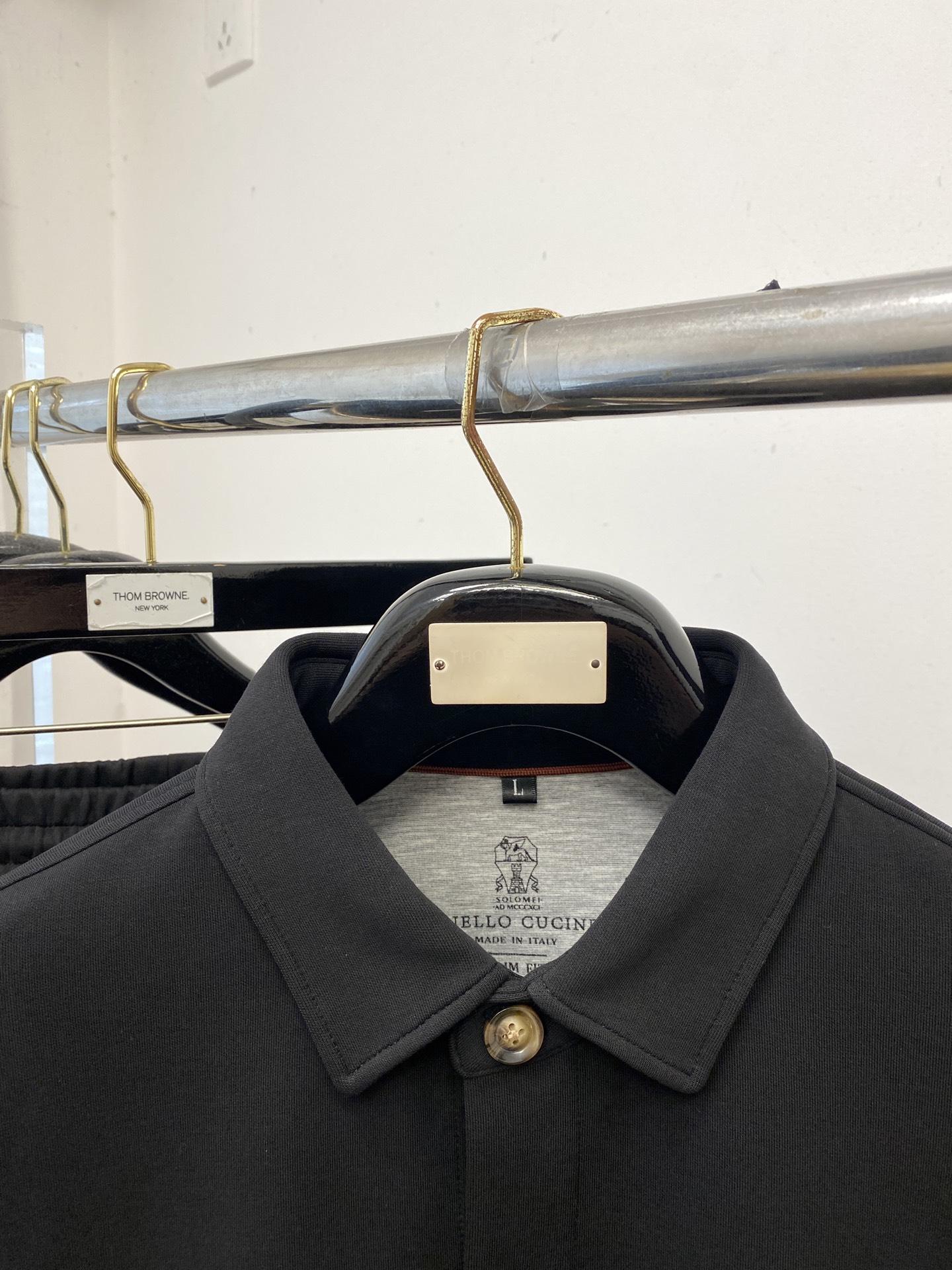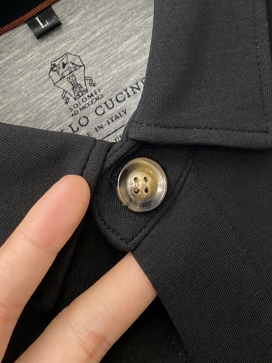 这款衣服是AAAAA 1:1 质量 (非常棒). 使用了和原版一模一样的材料. 商标部分也保持了和Brunello Cucinelli一样. 图片拍摄是实物衣服拍摄, 您所收到的实物保证和我们图片一模一样.