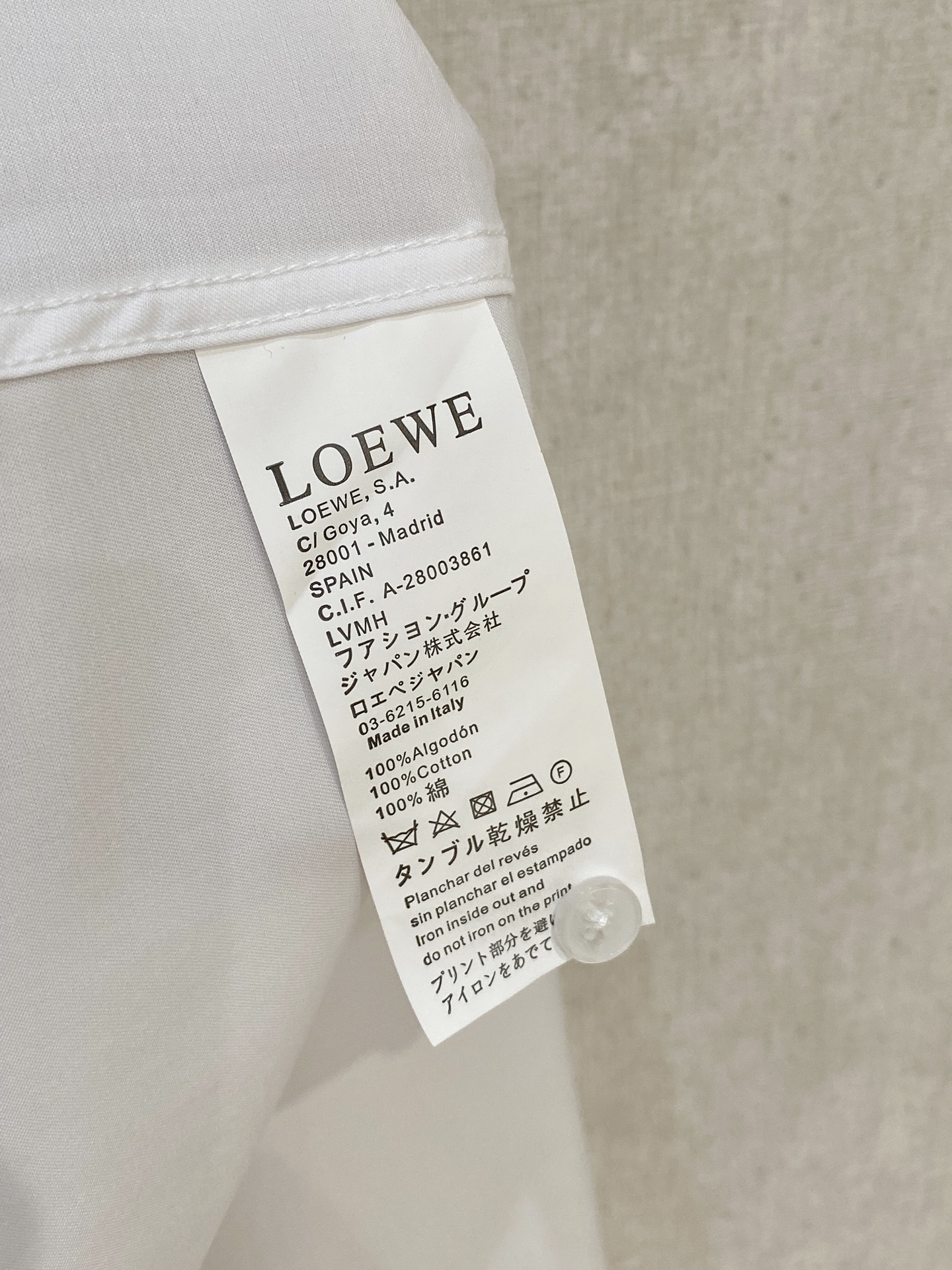 这款衣服是AAAAA 1:1 质量 (非常棒). 使用了和原版一模一样的材料. 商标部分也保持了和罗意威/Loewe一样. 图片拍摄是实物衣服拍摄, 您所收到的实物保证和我们图片一模一样.