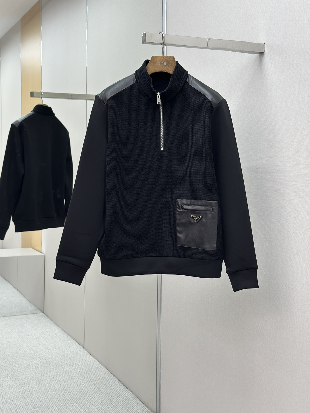 这款衣服是AAAAA 1:1 质量 (非常棒). 使用了和原版一模一样的材料. 商标部分也保持了和普拉达/Prada一样. 图片拍摄是实物衣服拍摄, 您所收到的实物保证和我们图片一模一样.