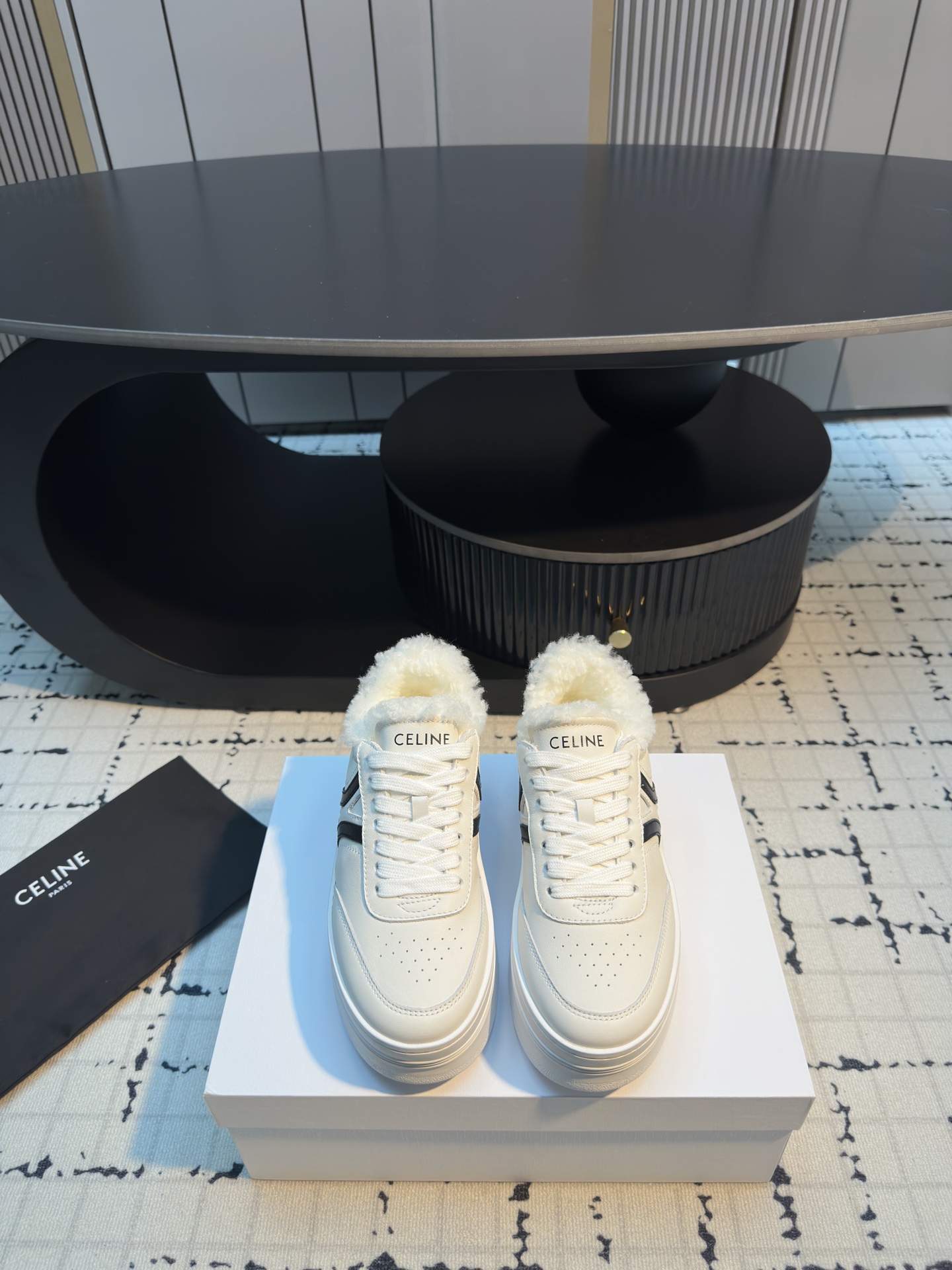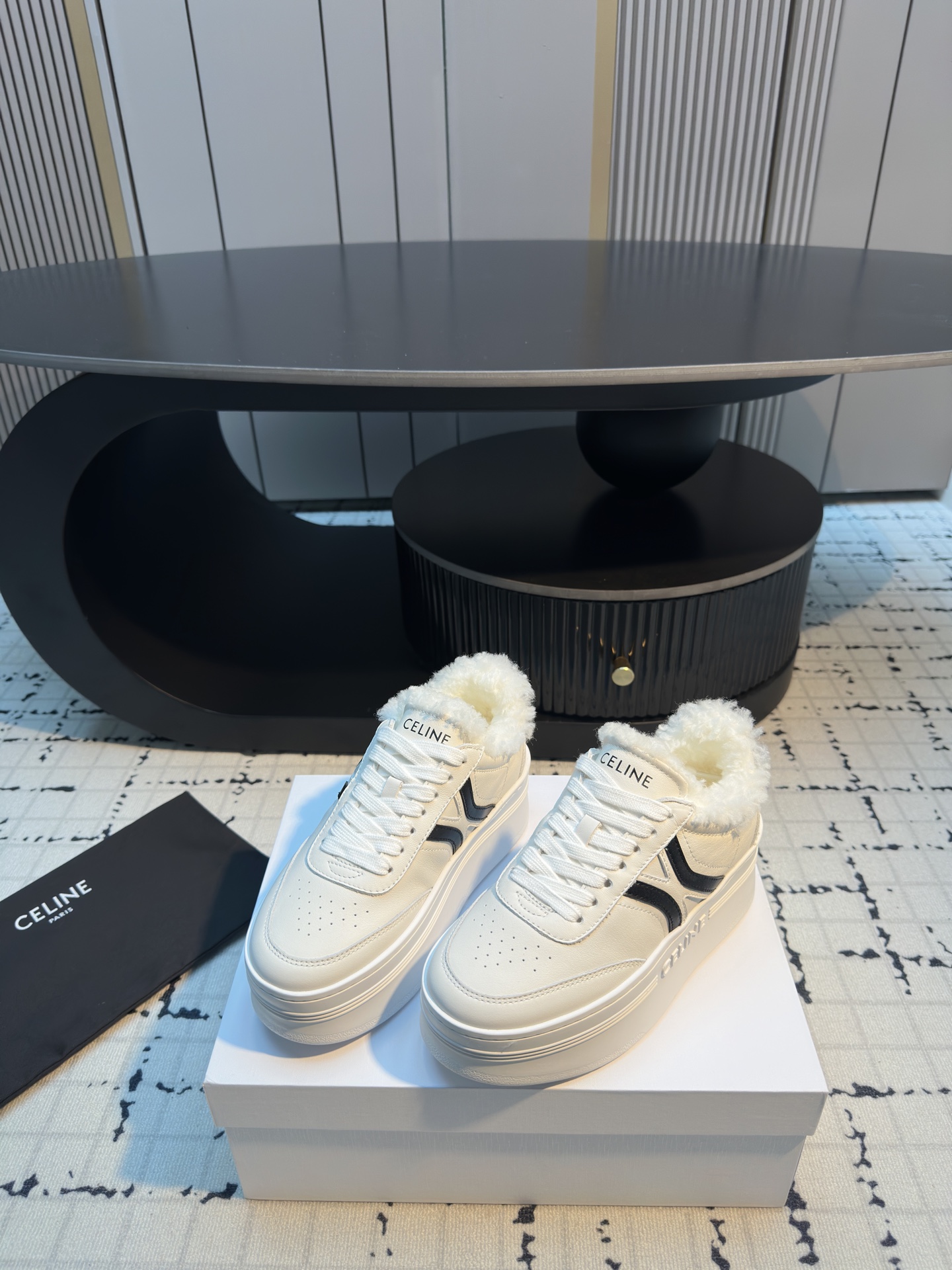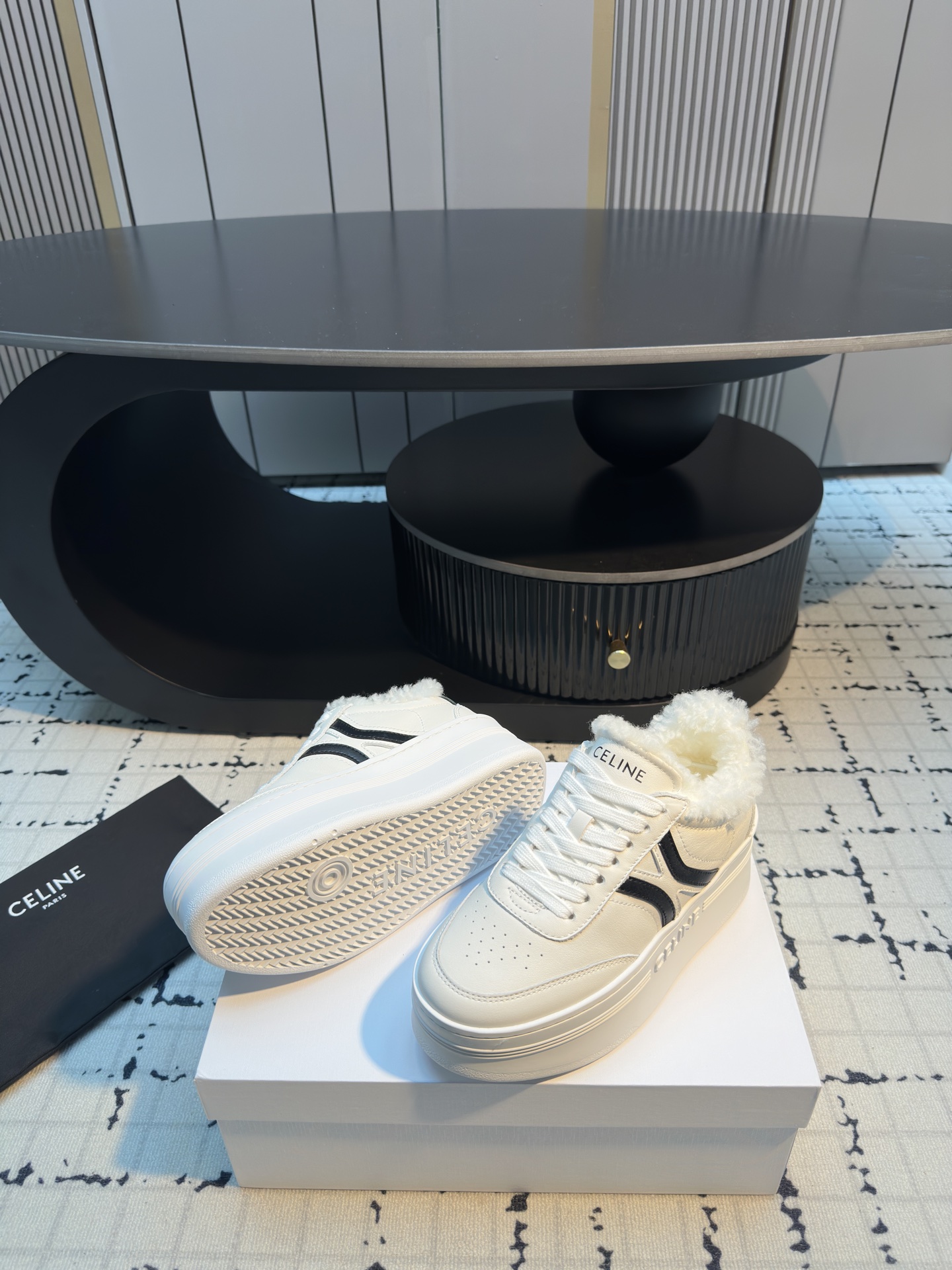 这款鞋子是AAAAA 1:1 质量 (非常棒). 使用了和原版一模一样的材料. 商标部分也保持了和思琳/Celine一样. 图片拍摄是实物鞋子拍摄, 您所收到的实物保证和我们图片一模一样.