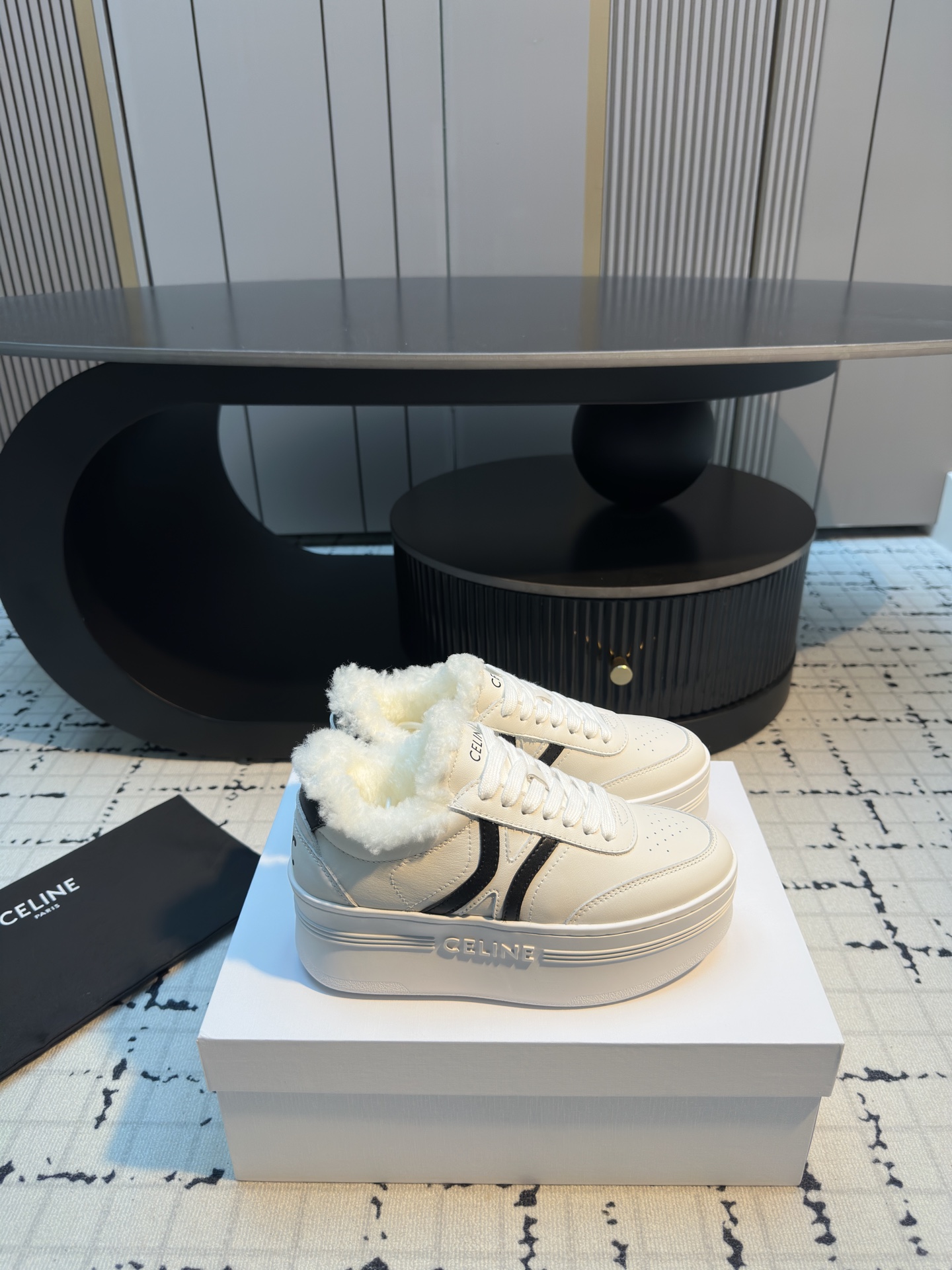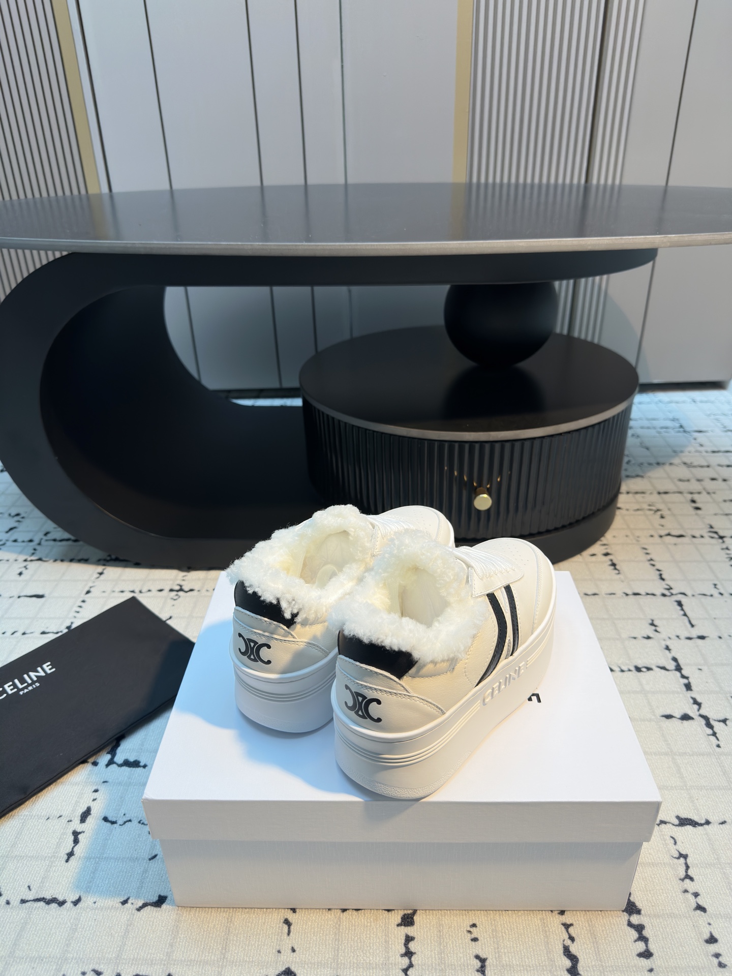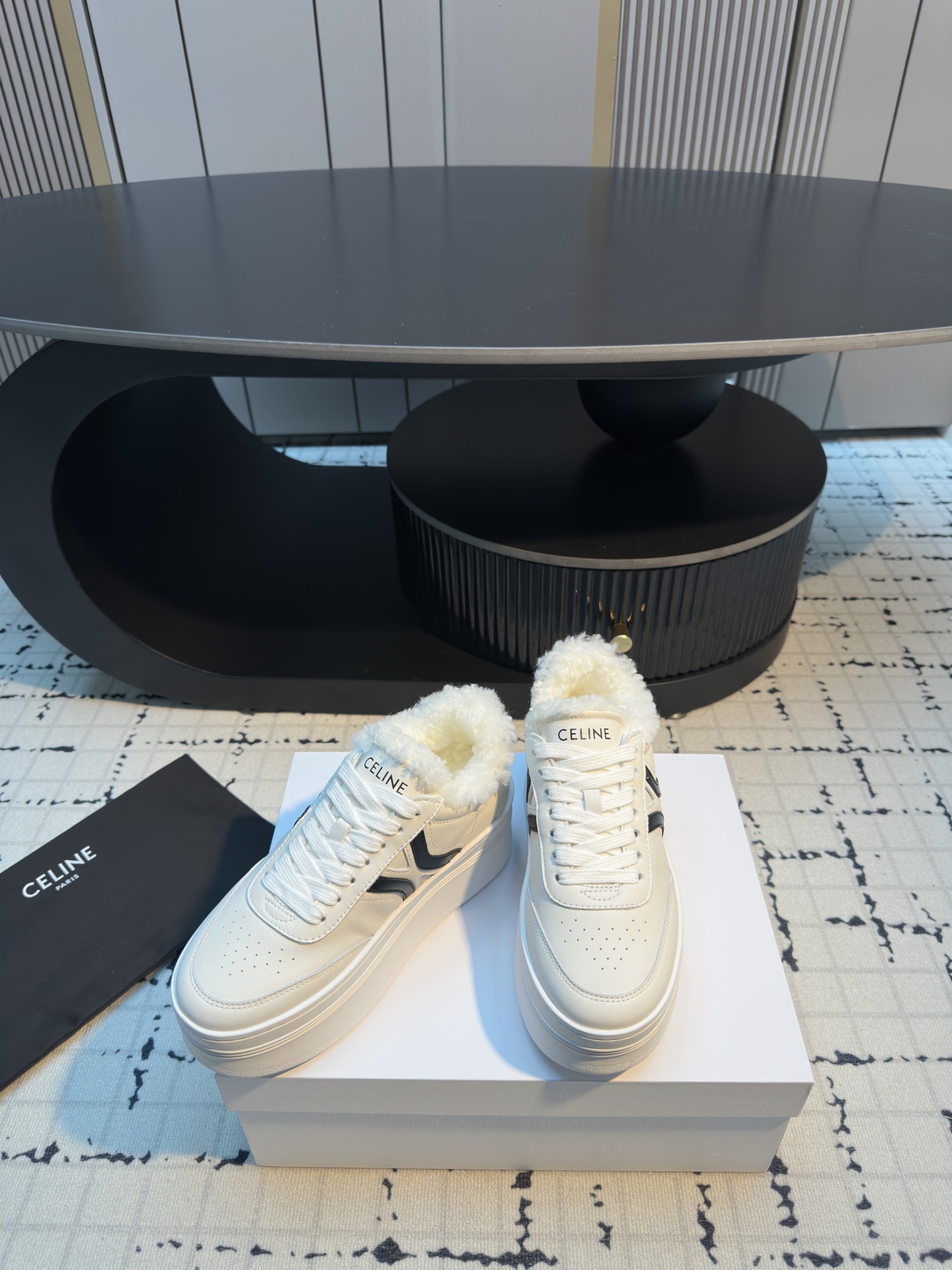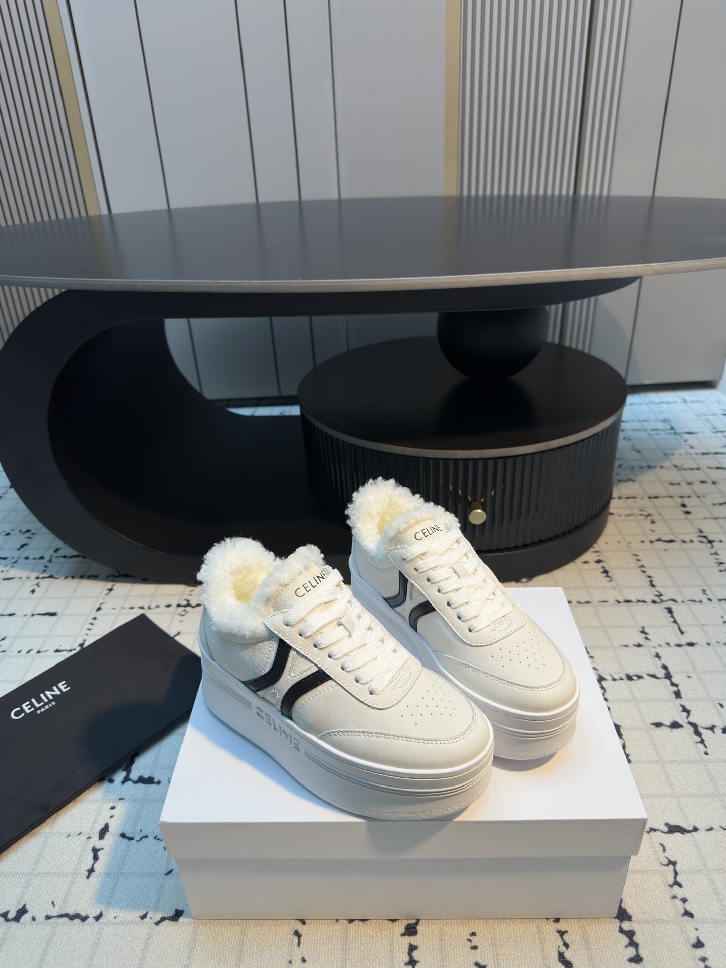 这款鞋子是AAAAA 1:1 质量 (非常棒). 使用了和原版一模一样的材料. 商标部分也保持了和思琳/Celine一样. 图片拍摄是实物鞋子拍摄, 您所收到的实物保证和我们图片一模一样.