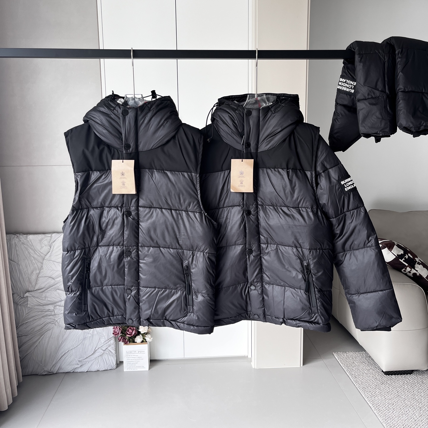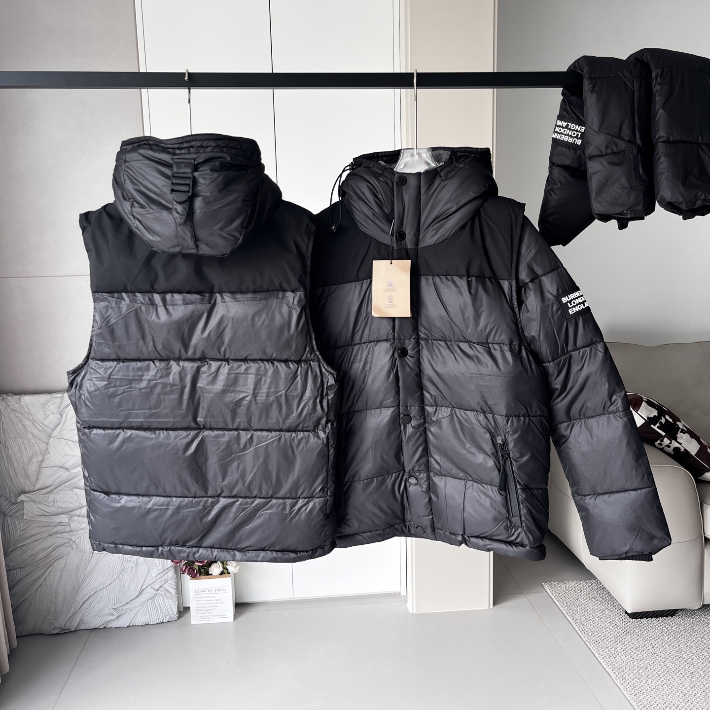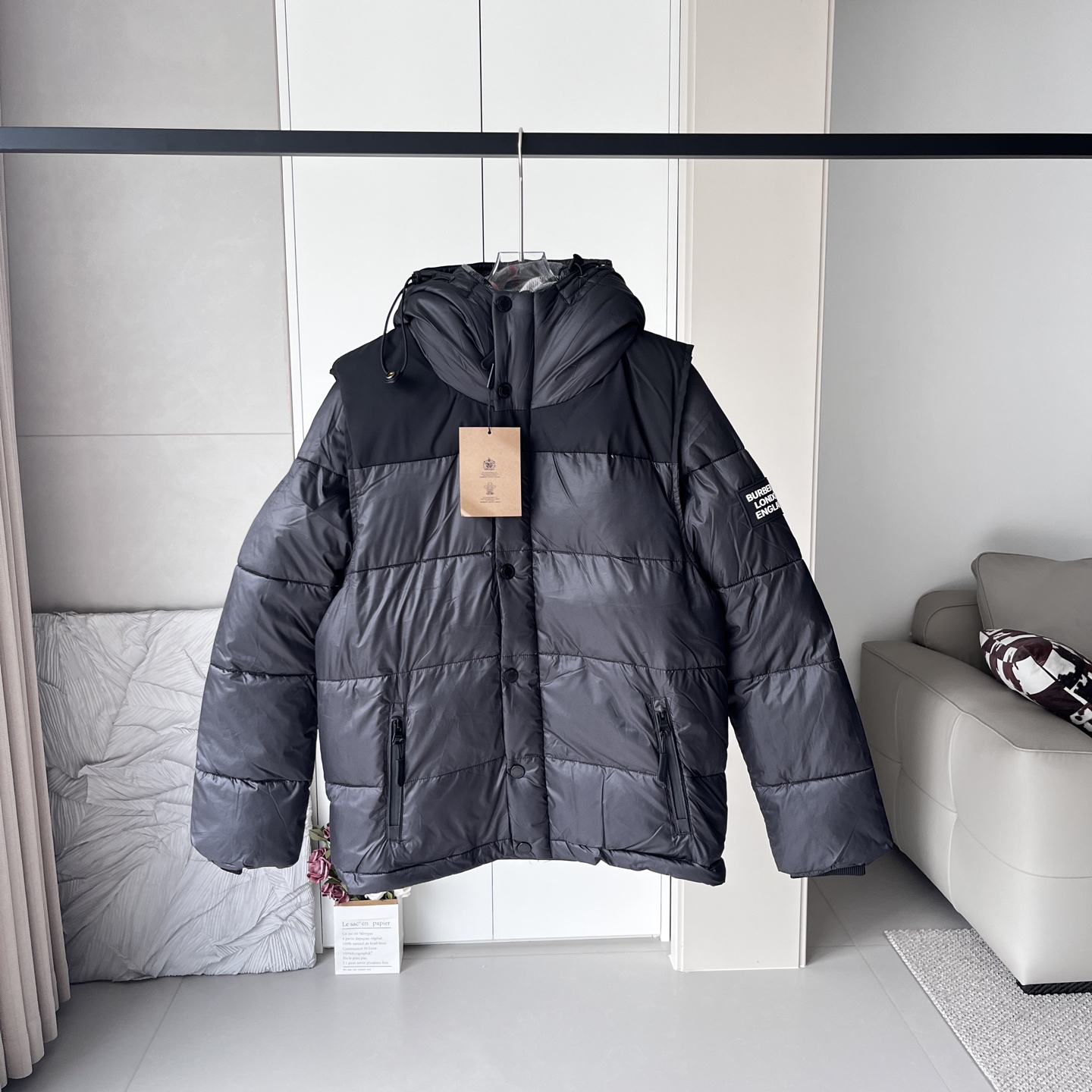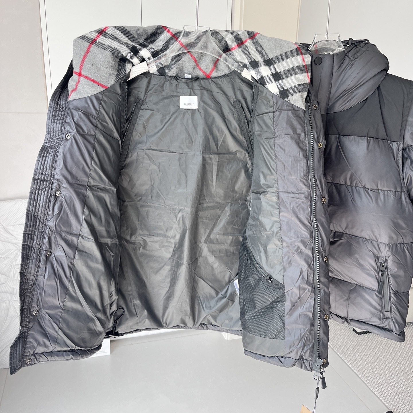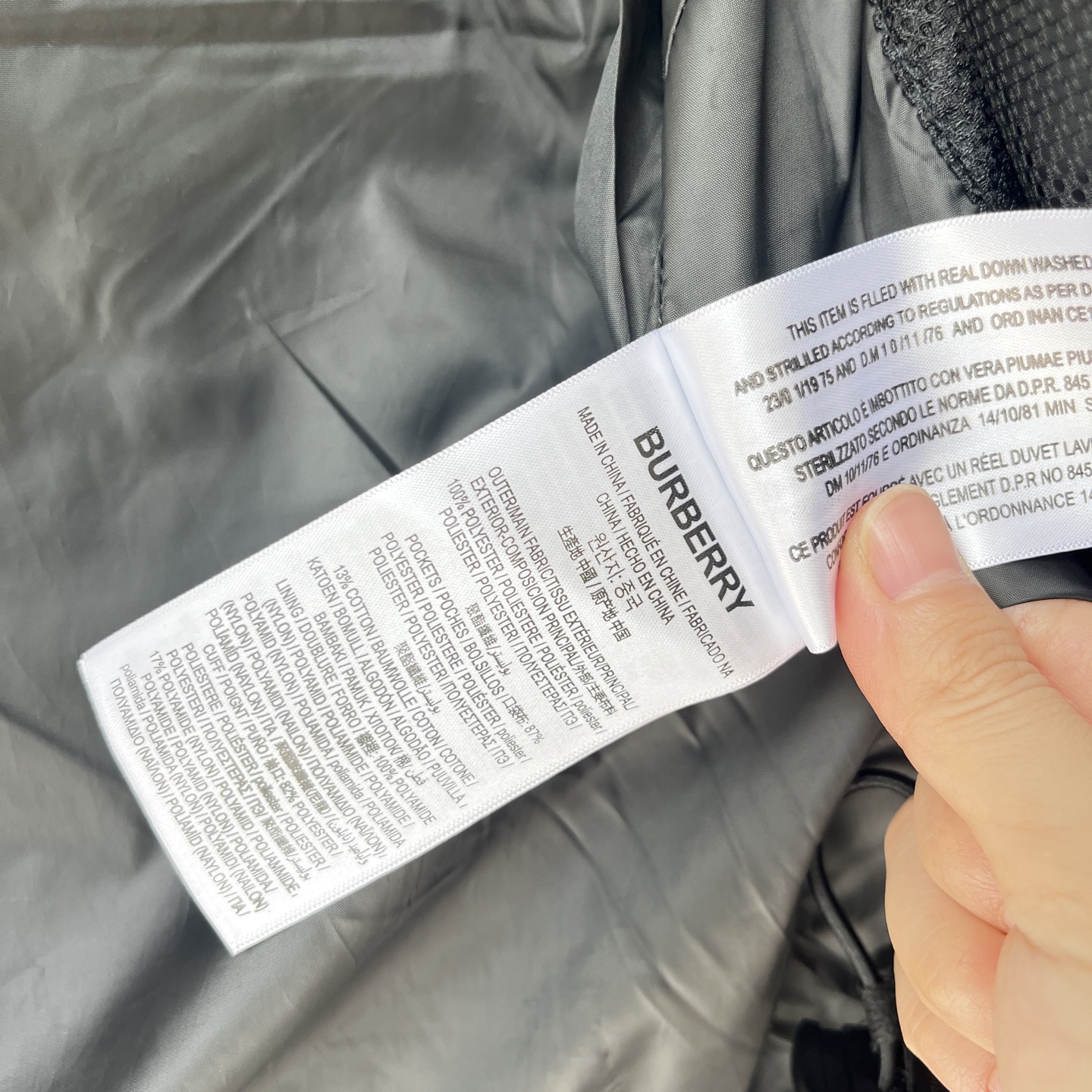 这款衣服是AAAAA 1:1 质量 (非常棒). 使用了和原版一模一样的材料. 商标部分也保持了和巴宝莉/Burberry一样. 图片拍摄是实物衣服拍摄, 您所收到的实物保证和我们图片一模一样.