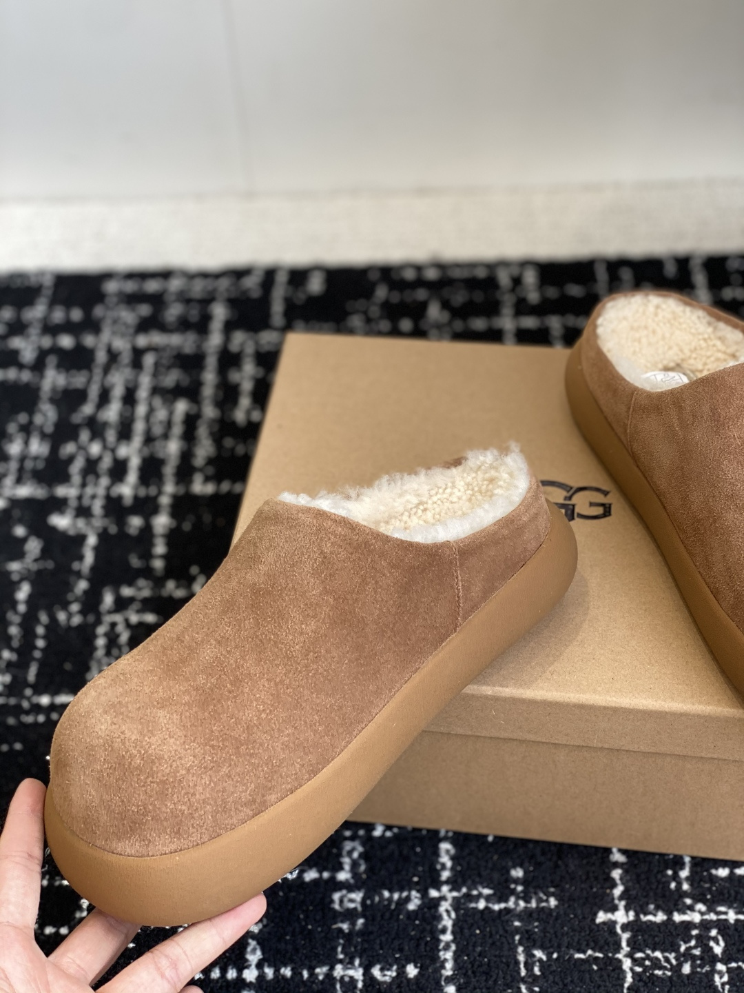 这款鞋子是AAAAA 1:1 质量 (非常棒). 使用了和原版一模一样的材料. 商标部分也保持了和UGG雪地靴一样. 图片拍摄是实物鞋子拍摄, 您所收到的实物保证和我们图片一模一样.