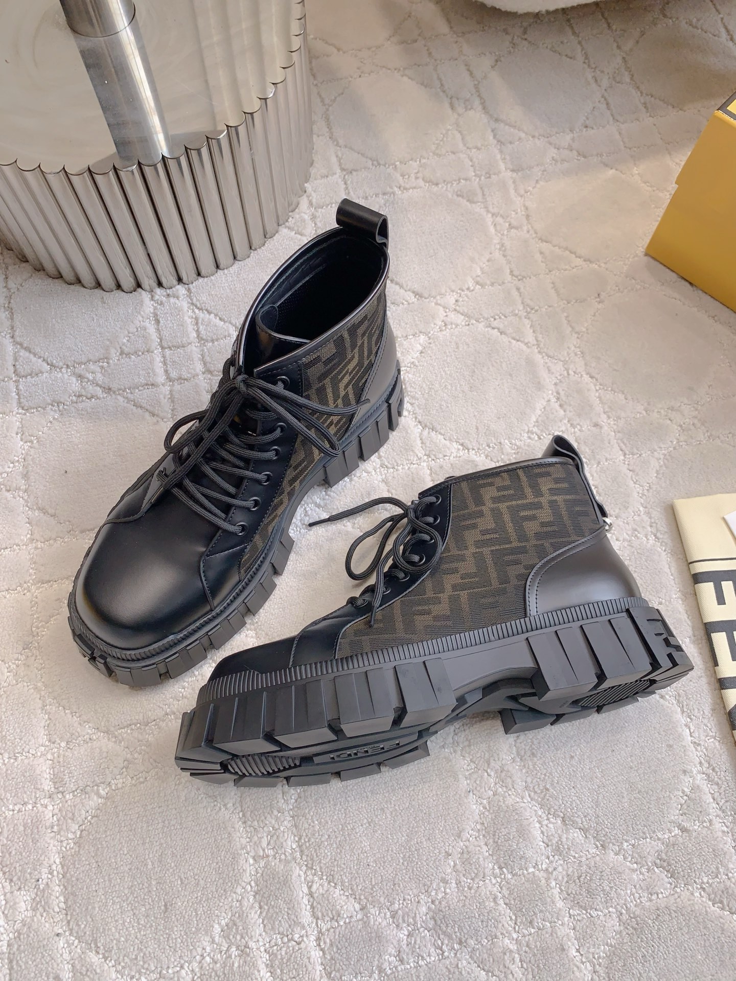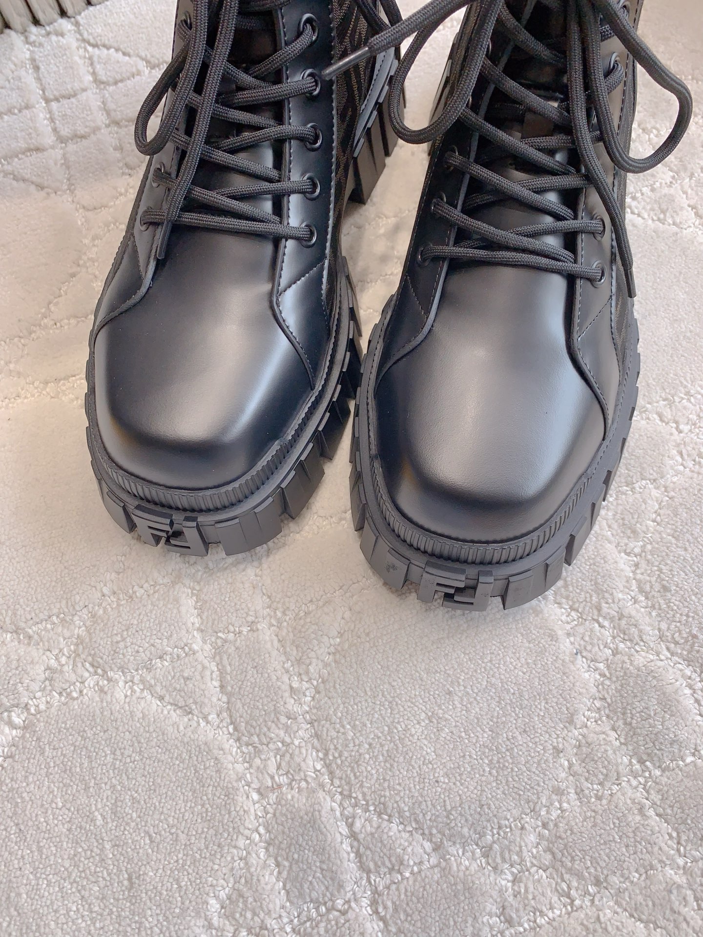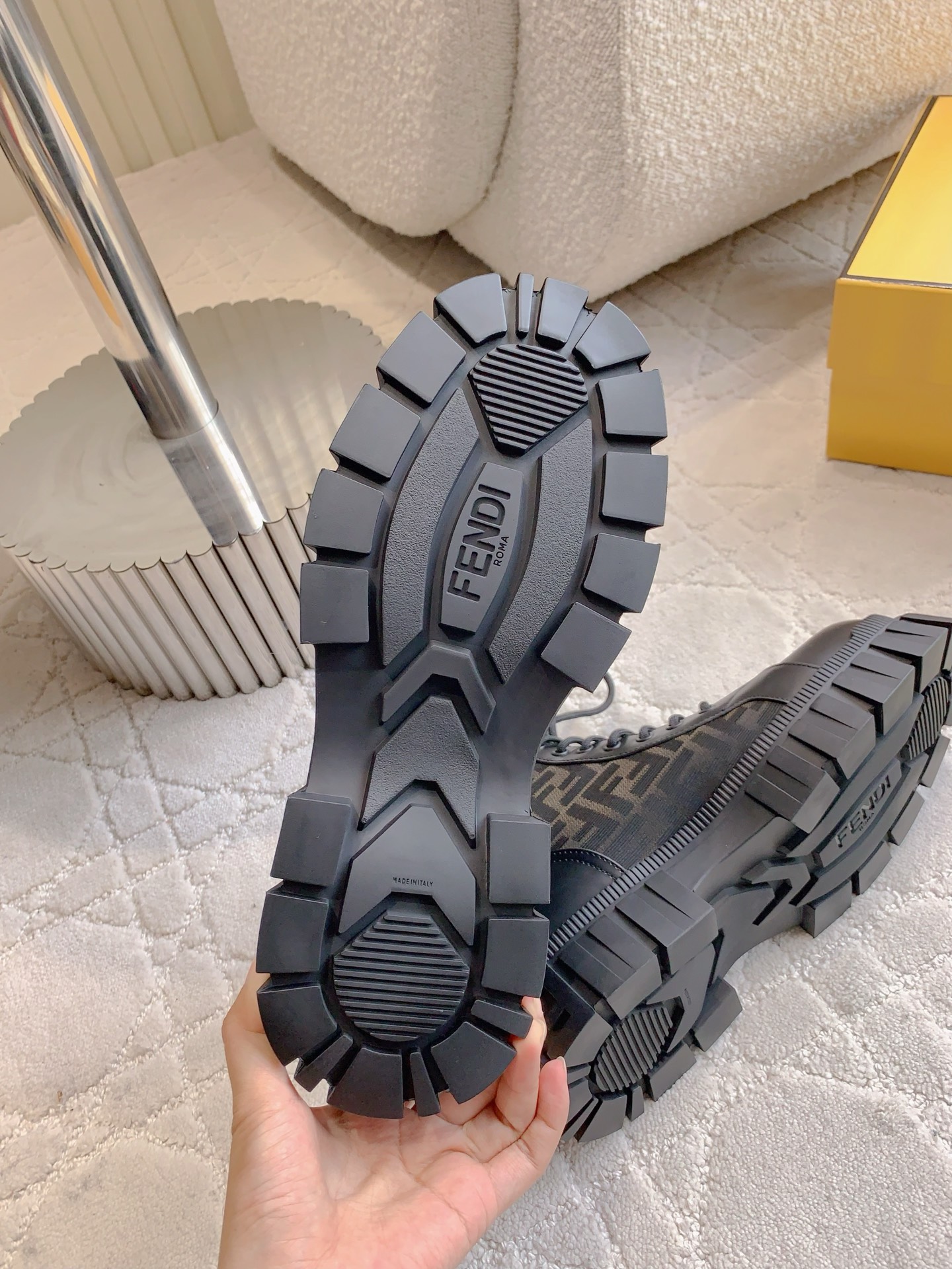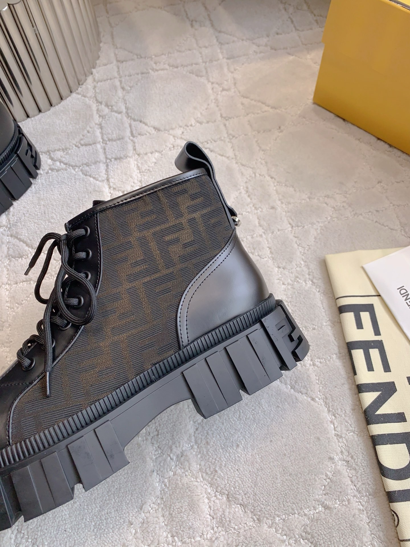 这款鞋子是AAAAA 1:1 质量 (非常棒). 使用了和原版一模一样的材料. 商标部分也保持了和芬迪/Fendi一样. 图片拍摄是实物鞋子拍摄, 您所收到的实物保证和我们图片一模一样.
