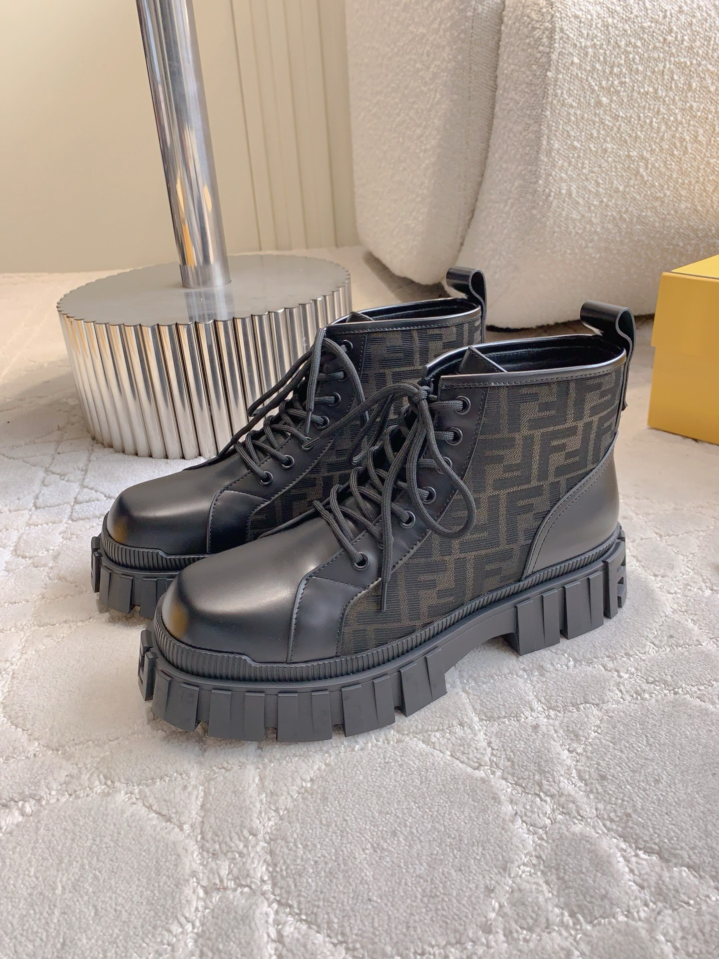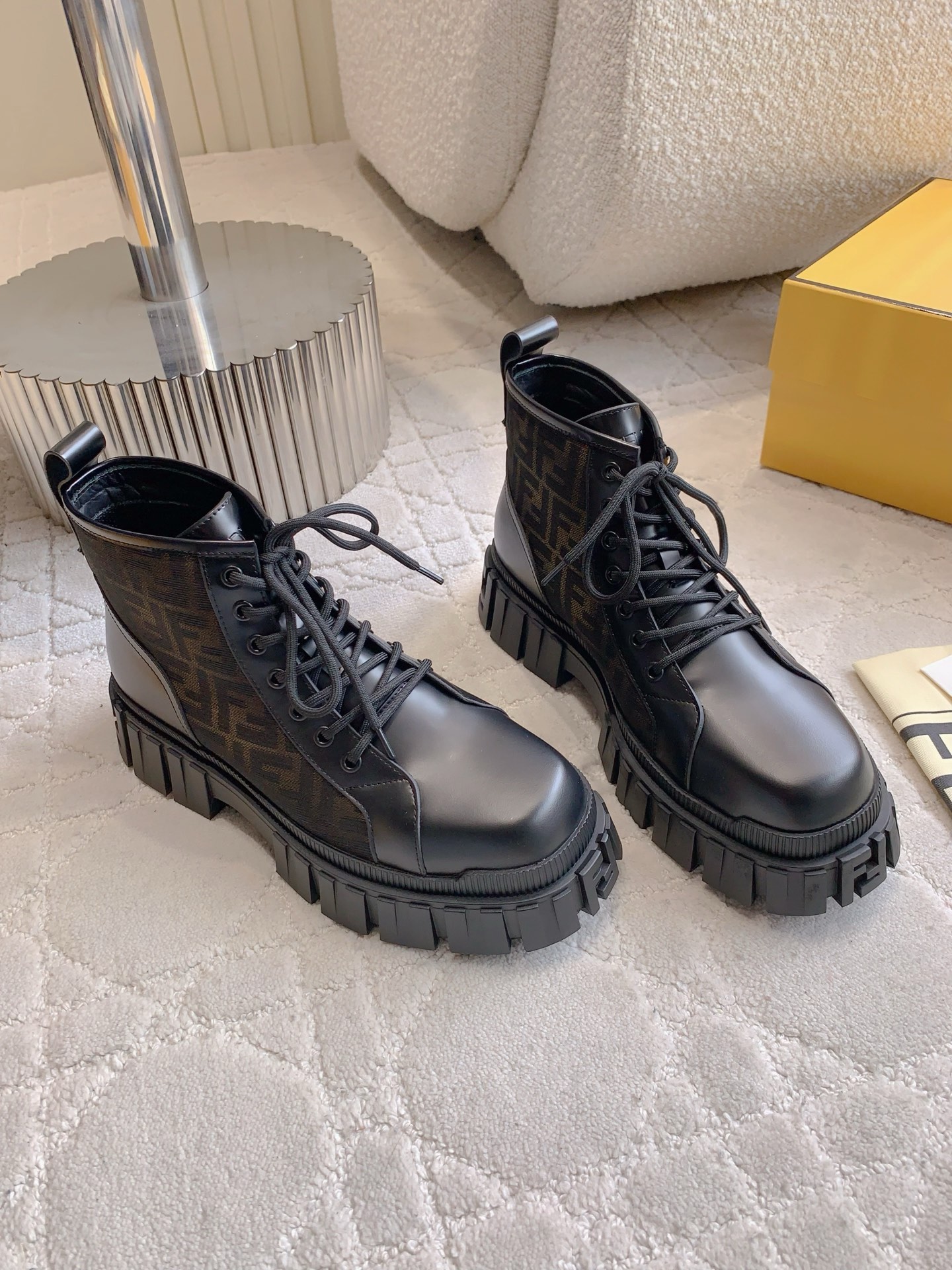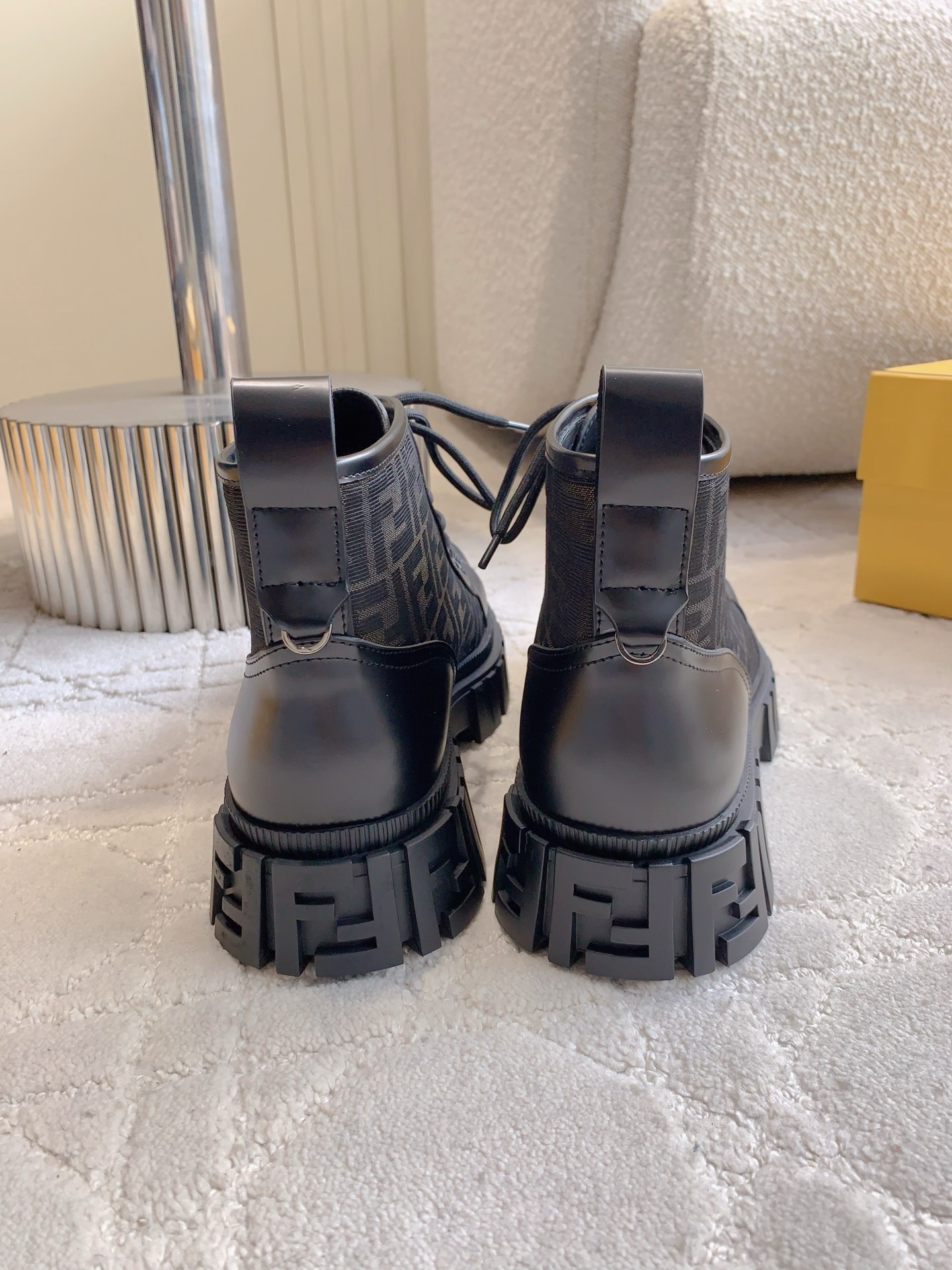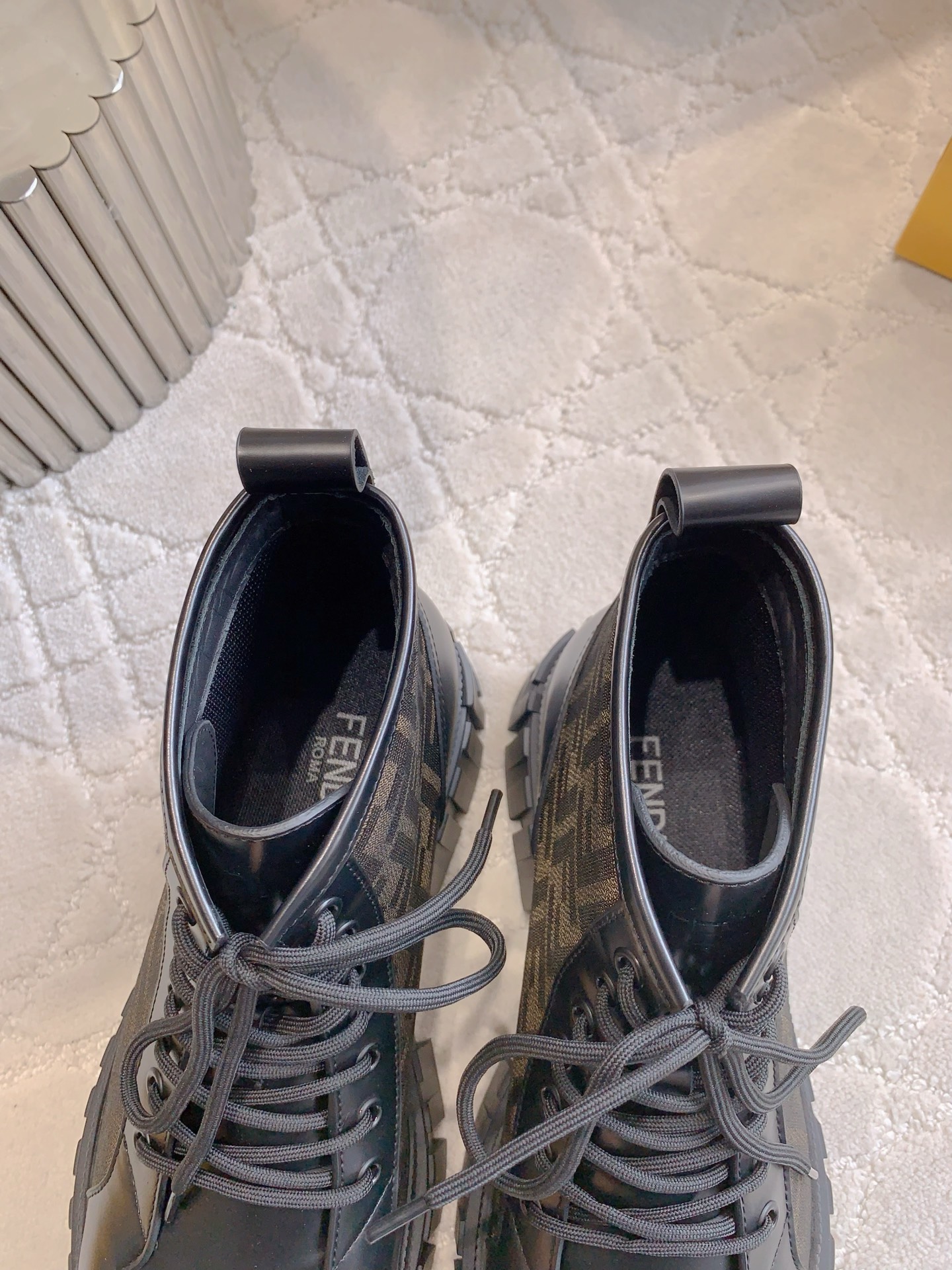 这款鞋子是AAAAA 1:1 质量 (非常棒). 使用了和原版一模一样的材料. 商标部分也保持了和芬迪/Fendi一样. 图片拍摄是实物鞋子拍摄, 您所收到的实物保证和我们图片一模一样.