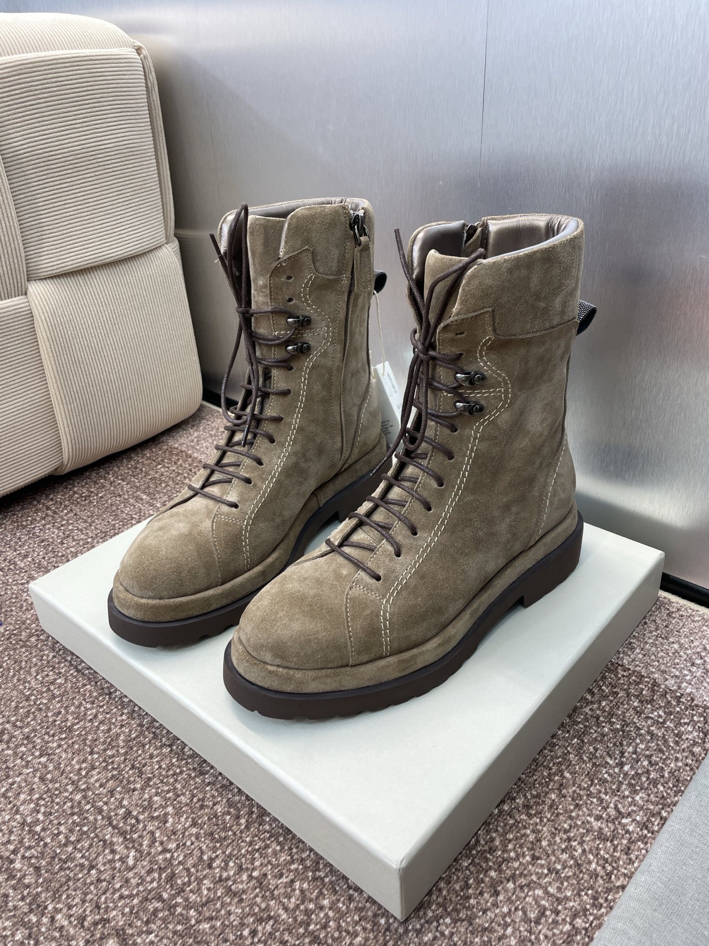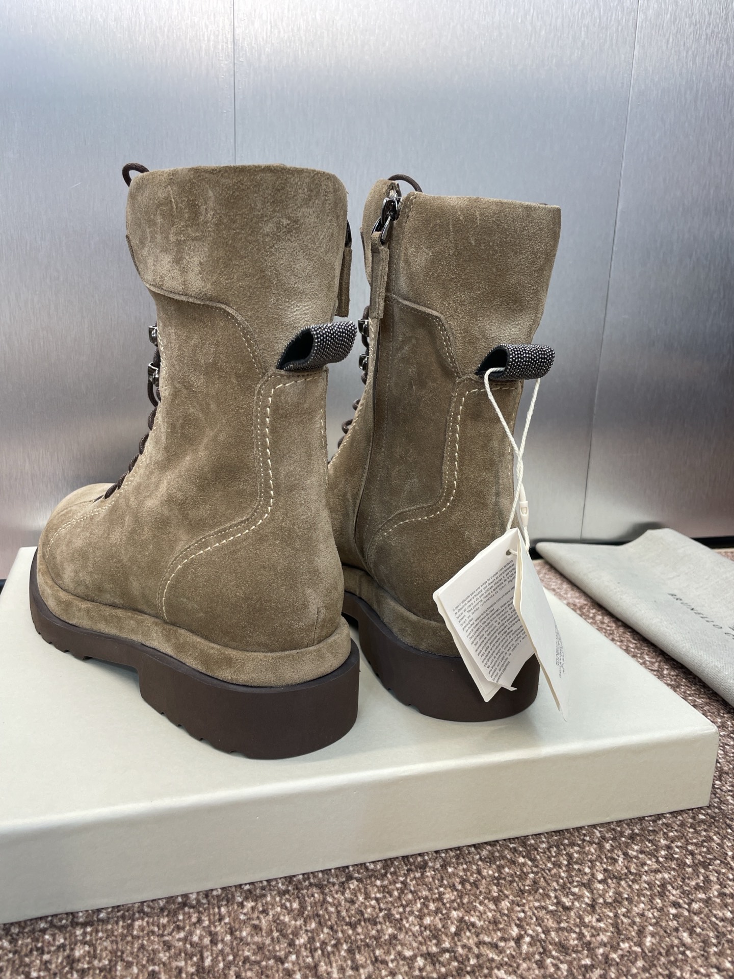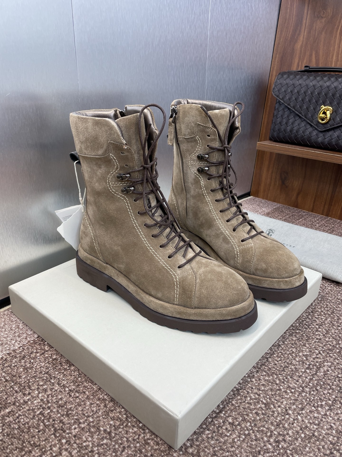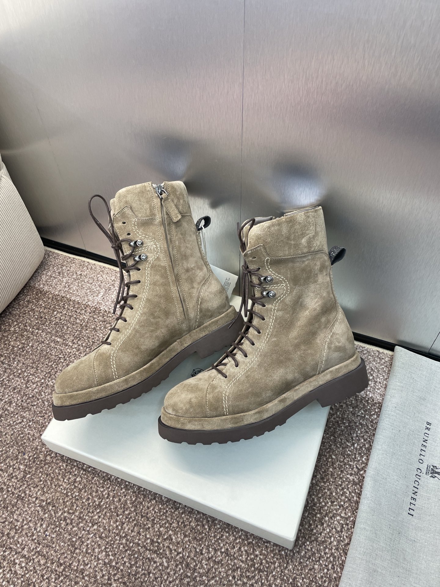 这款鞋子是AAAAA 1:1 质量 (非常棒). 使用了和原版一模一样的材料. 商标部分也保持了和Brunello Cucinelli一样. 图片拍摄是实物鞋子拍摄, 您所收到的实物保证和我们图片一模一样.