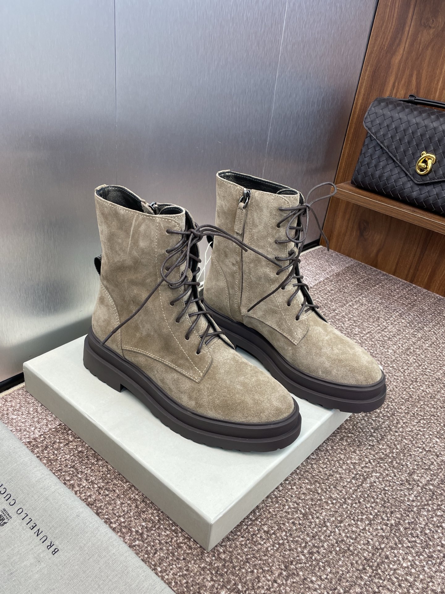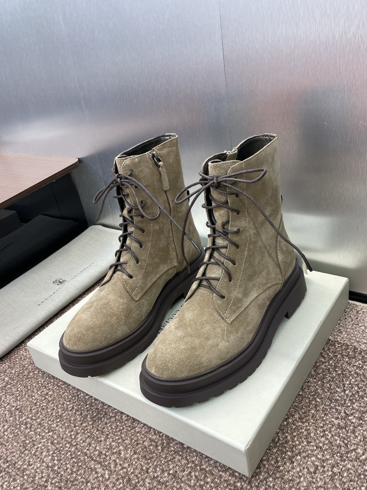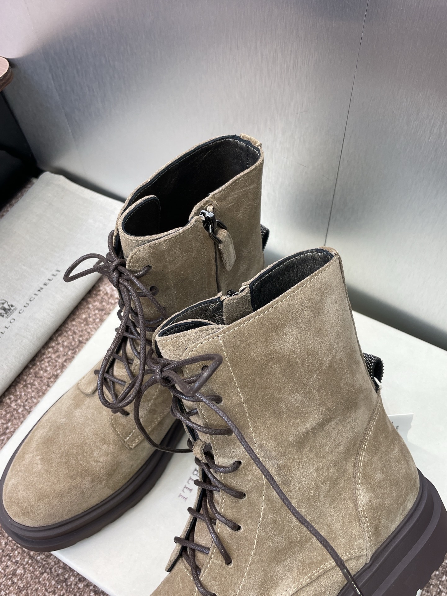 这款鞋子是AAAAA 1:1 质量 (非常棒). 使用了和原版一模一样的材料. 商标部分也保持了和Brunello Cucinelli一样. 图片拍摄是实物鞋子拍摄, 您所收到的实物保证和我们图片一模一样.