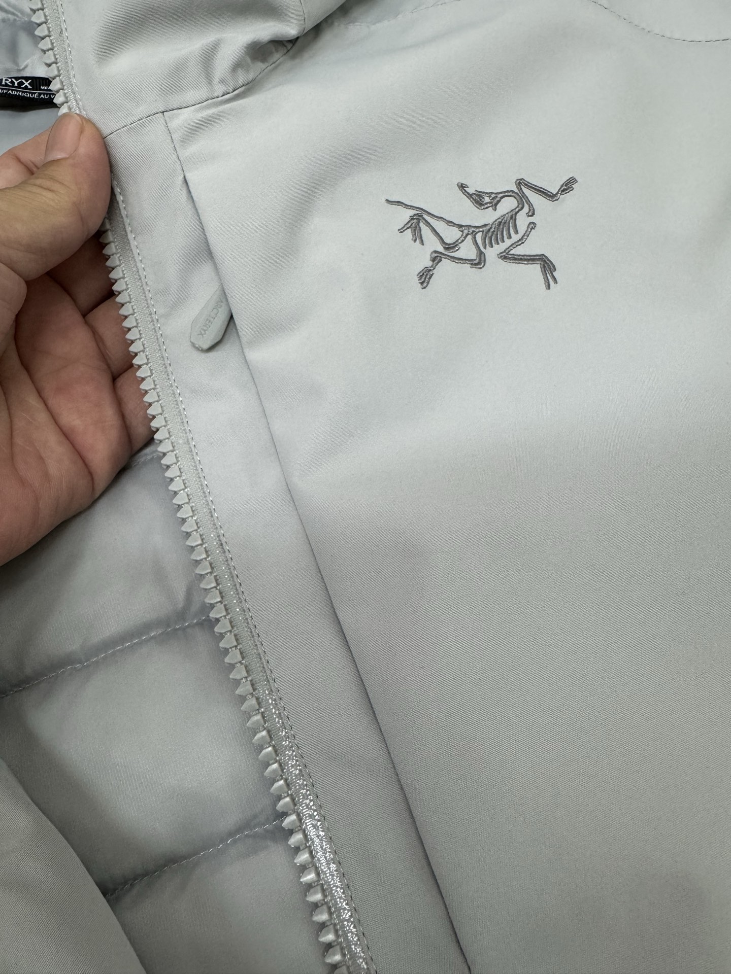 这款衣服是AAAAA 1:1 质量 (非常棒). 使用了和原版一模一样的材料. 商标部分也保持了和ARC'TERYX一样. 图片拍摄是实物衣服拍摄, 您所收到的实物保证和我们图片一模一样.