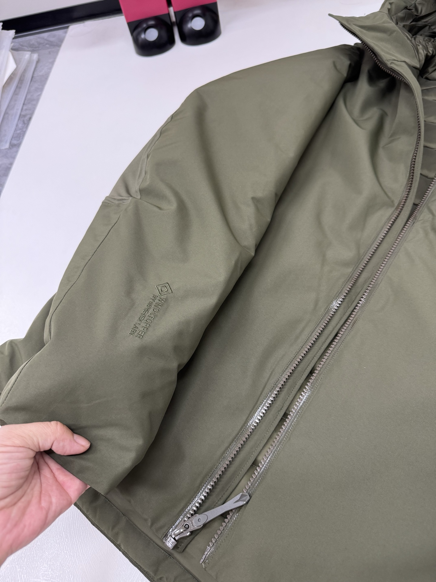 这款衣服是AAAAA 1:1 质量 (非常棒). 使用了和原版一模一样的材料. 商标部分也保持了和ARC'TERYX一样. 图片拍摄是实物衣服拍摄, 您所收到的实物保证和我们图片一模一样.