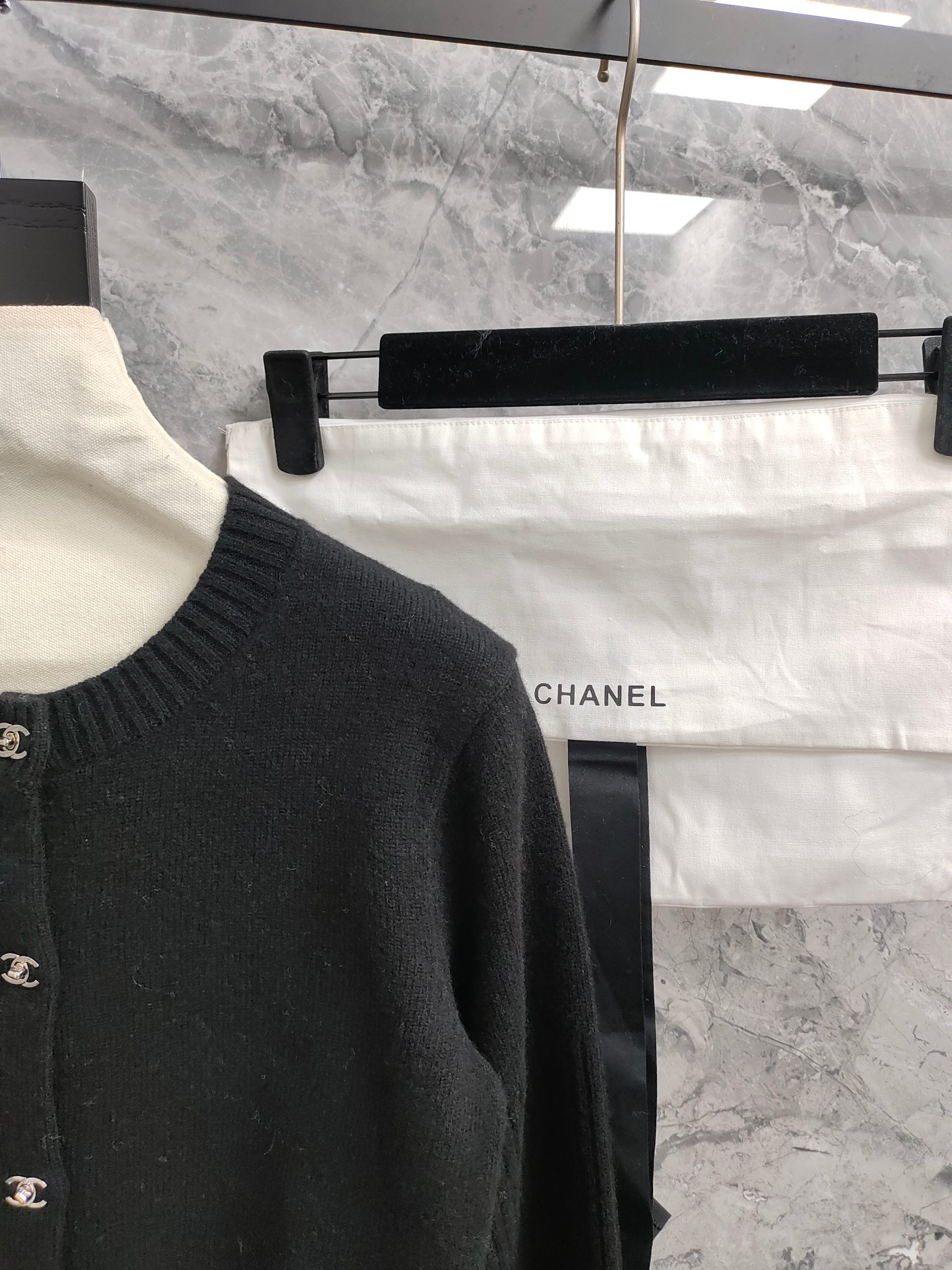 这款衣服是AAAAA 1:1 质量 (非常棒). 使用了和原版一模一样的材料. 商标部分也保持了和香奈儿/Chanel一样. 图片拍摄是实物衣服拍摄, 您所收到的实物保证和我们图片一模一样.