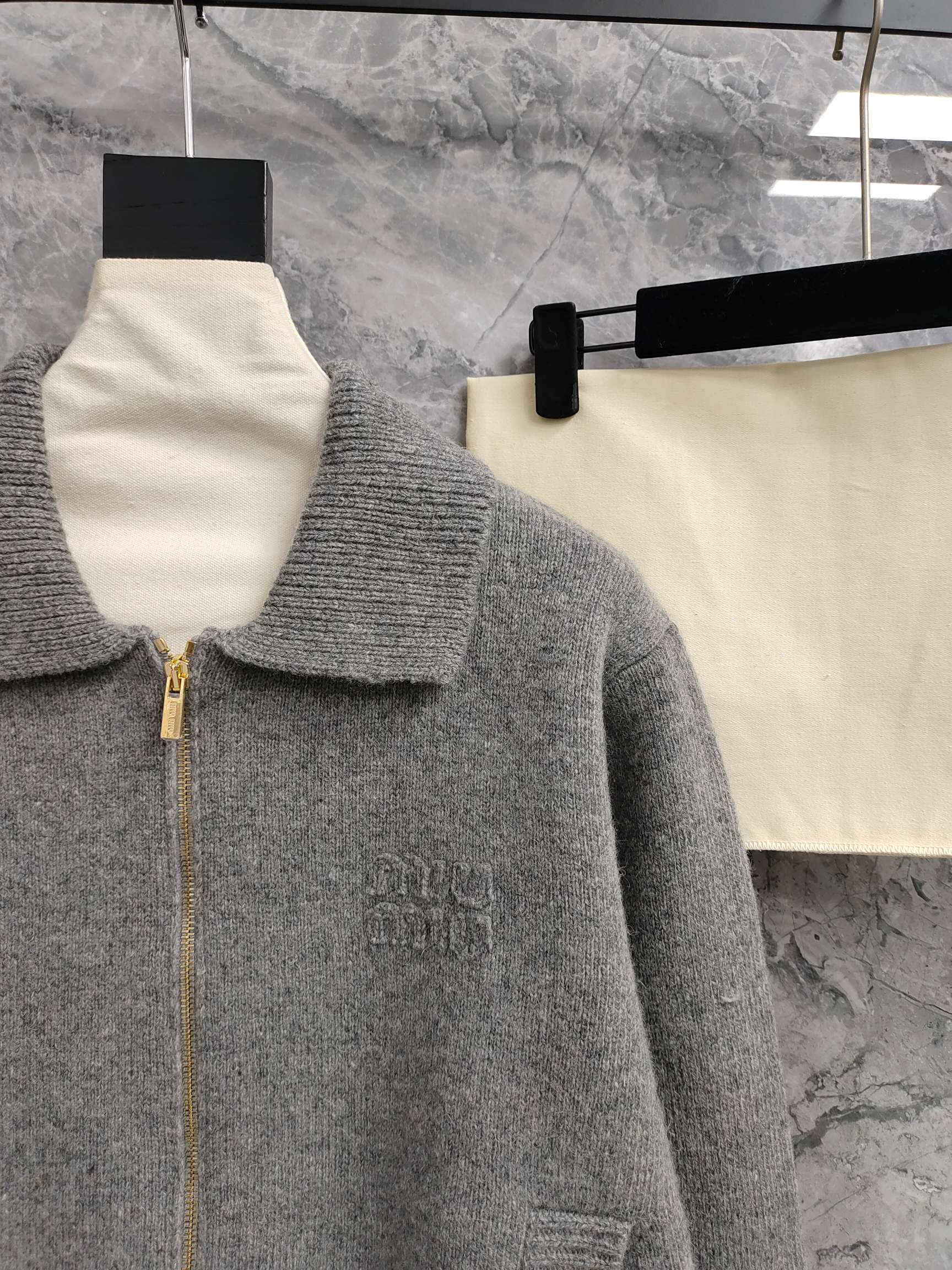 这款衣服是AAAAA 1:1 质量 (非常棒). 使用了和原版一模一样的材料. 商标部分也保持了和缪缪/Miu Miu一样. 图片拍摄是实物衣服拍摄, 您所收到的实物保证和我们图片一模一样.