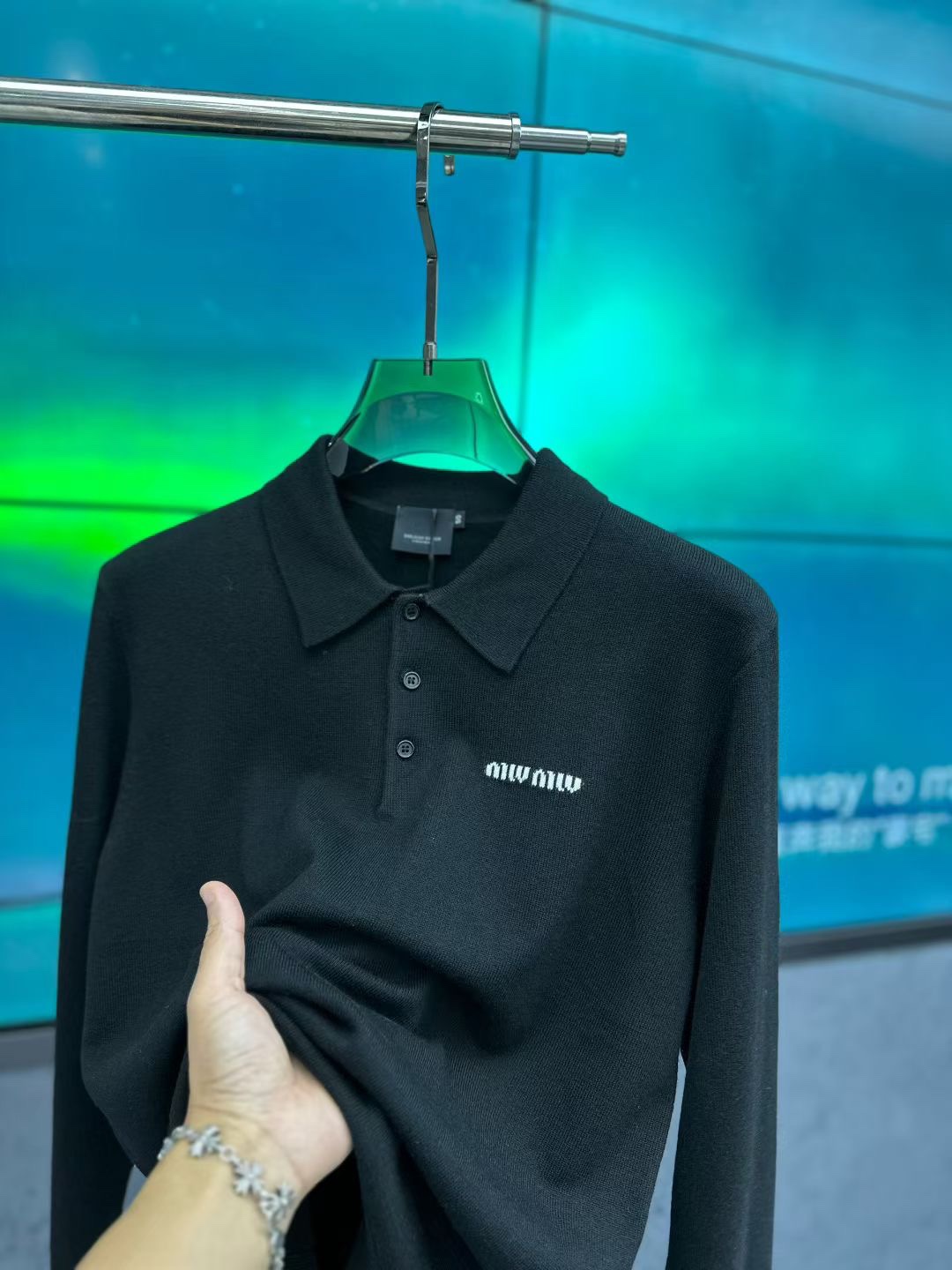 这款衣服是AAAAA 1:1 质量 (非常棒). 使用了和原版一模一样的材料. 商标部分也保持了和缪缪/Miu Miu一样. 图片拍摄是实物衣服拍摄, 您所收到的实物保证和我们图片一模一样.