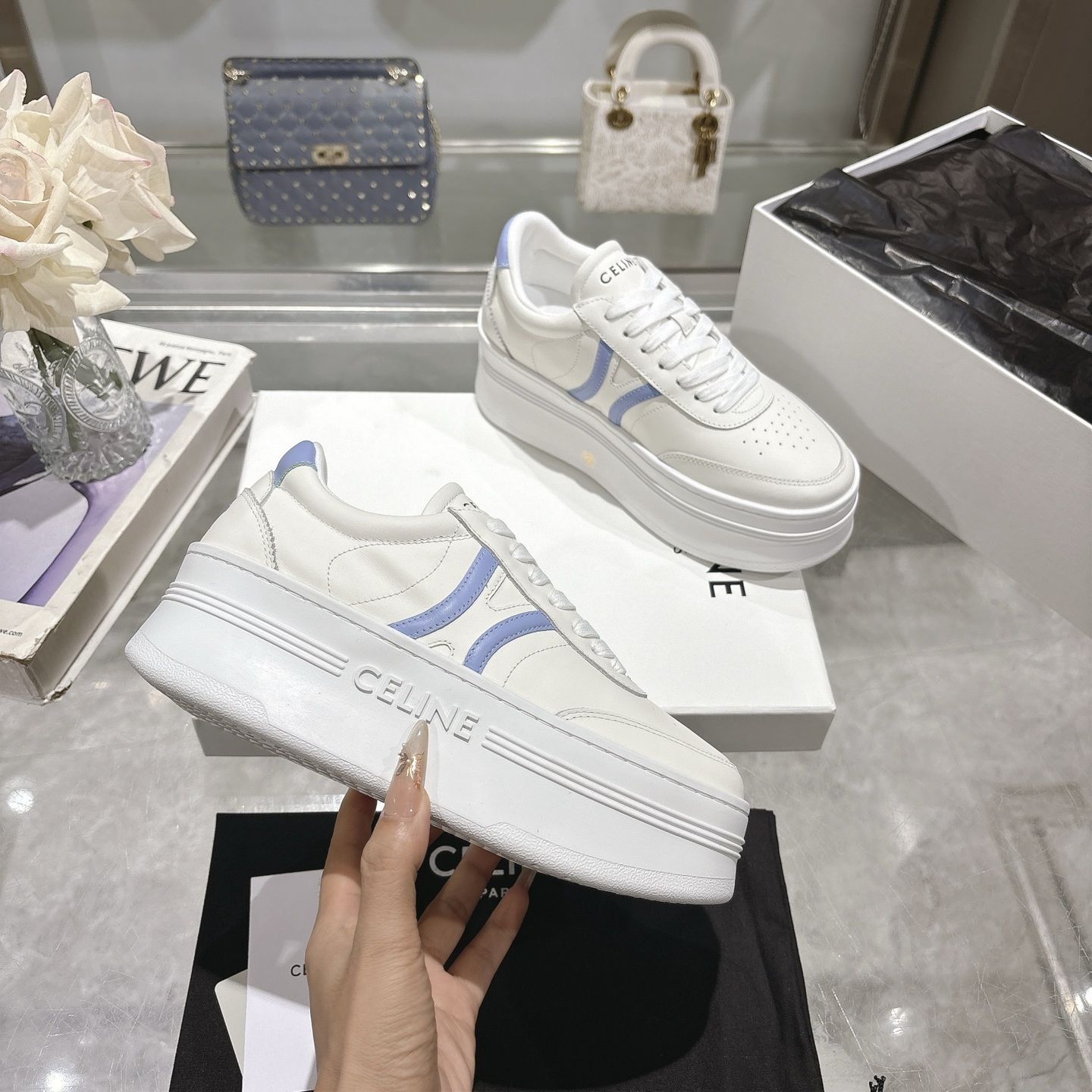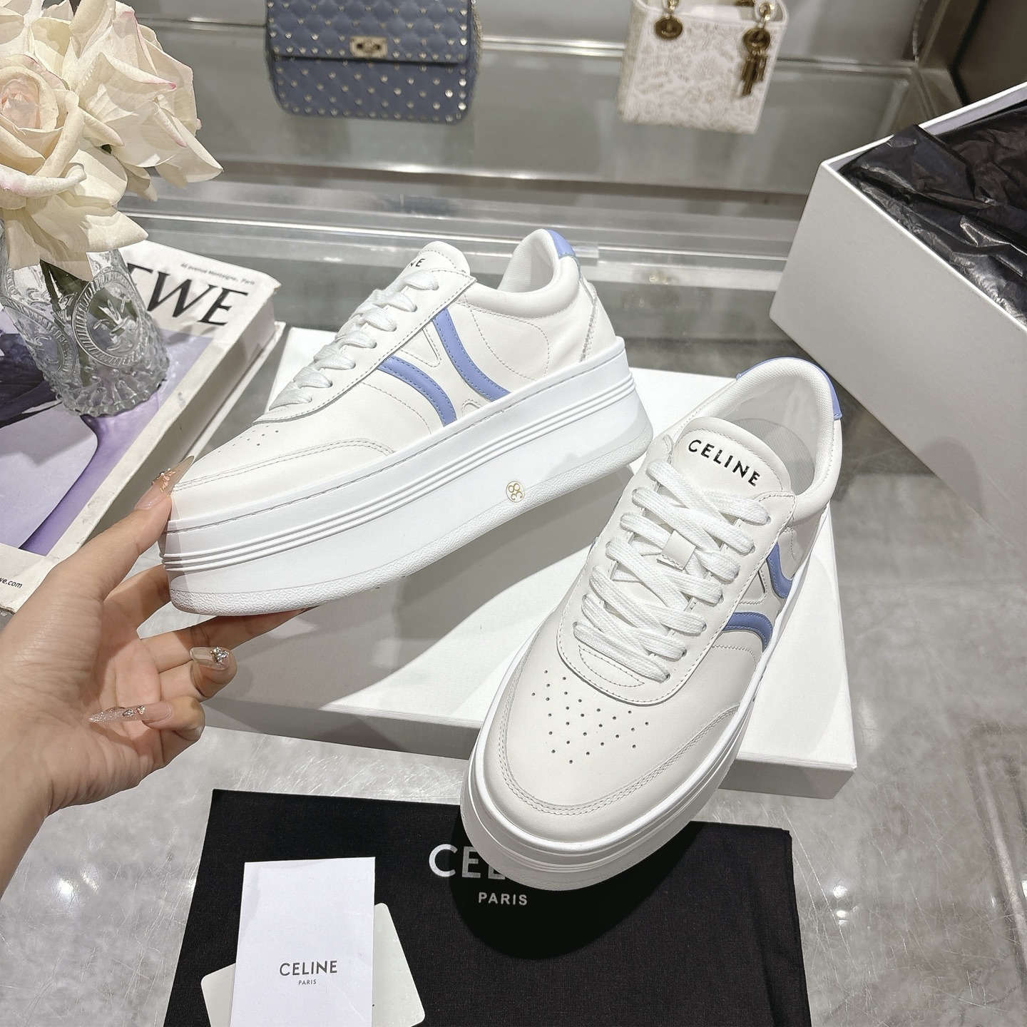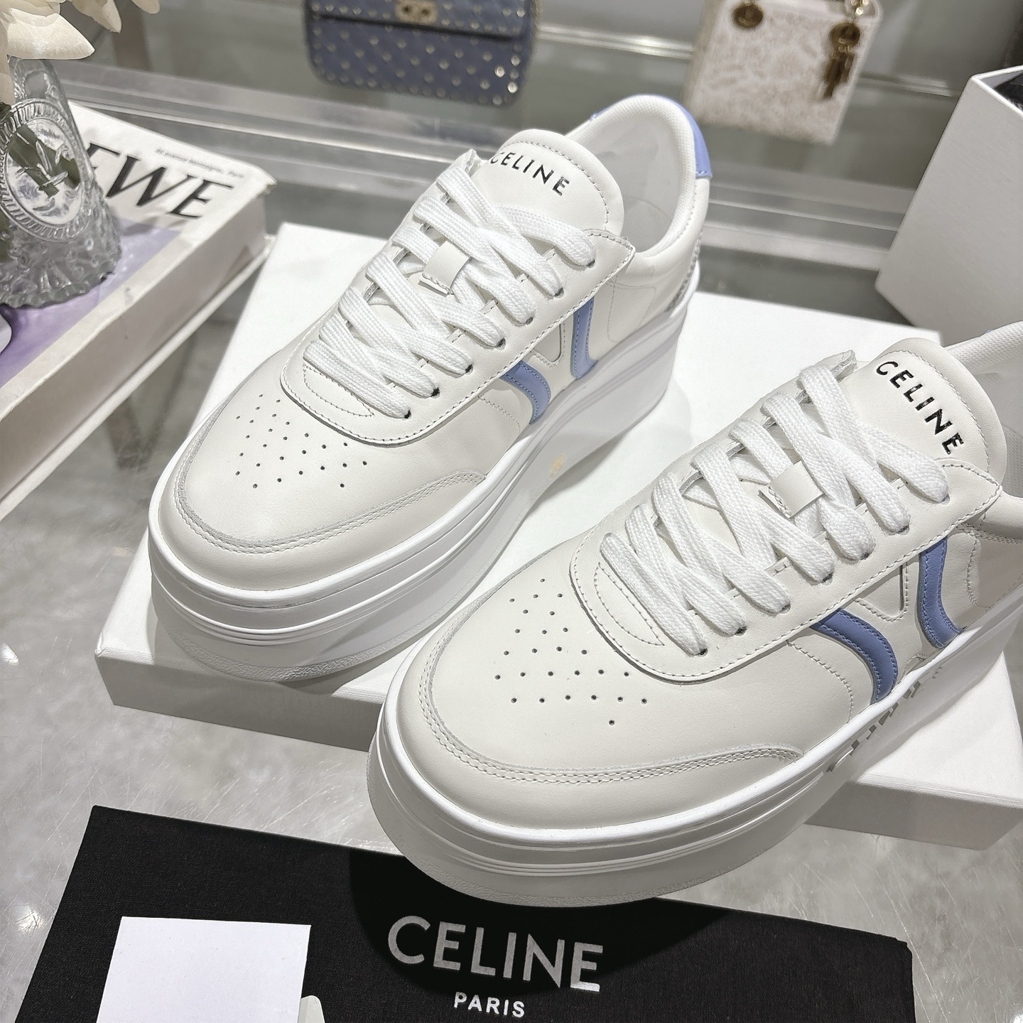 这款鞋子是AAAAA 1:1 质量 (非常棒). 使用了和原版一模一样的材料. 商标部分也保持了和思琳/Celine一样. 图片拍摄是实物鞋子拍摄, 您所收到的实物保证和我们图片一模一样.