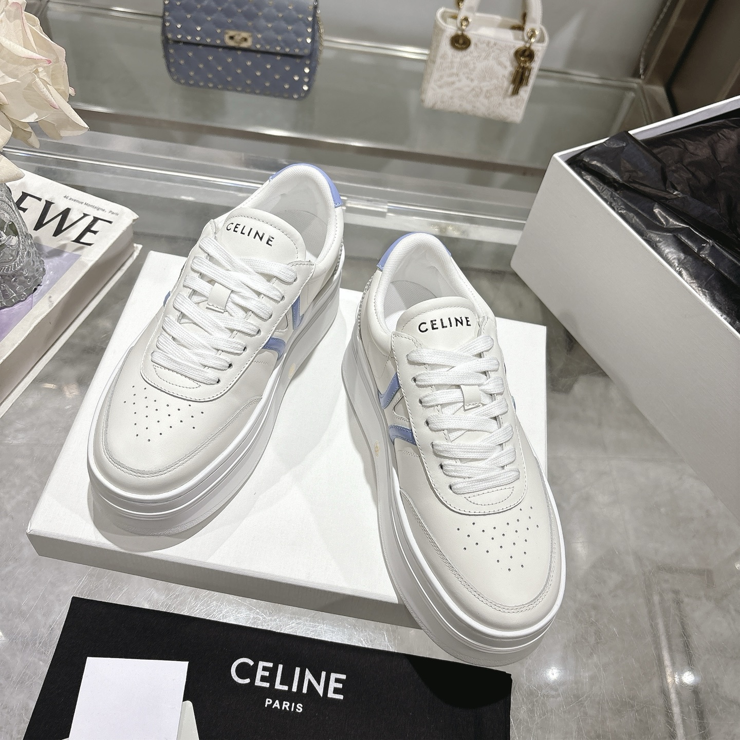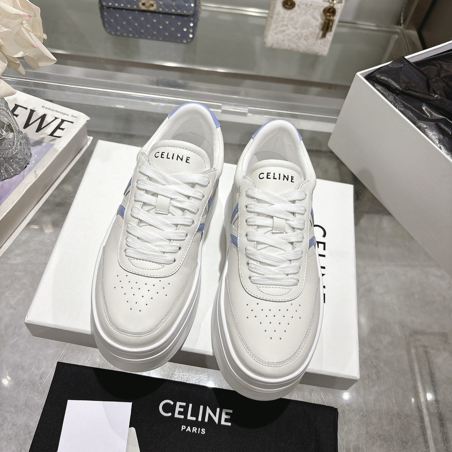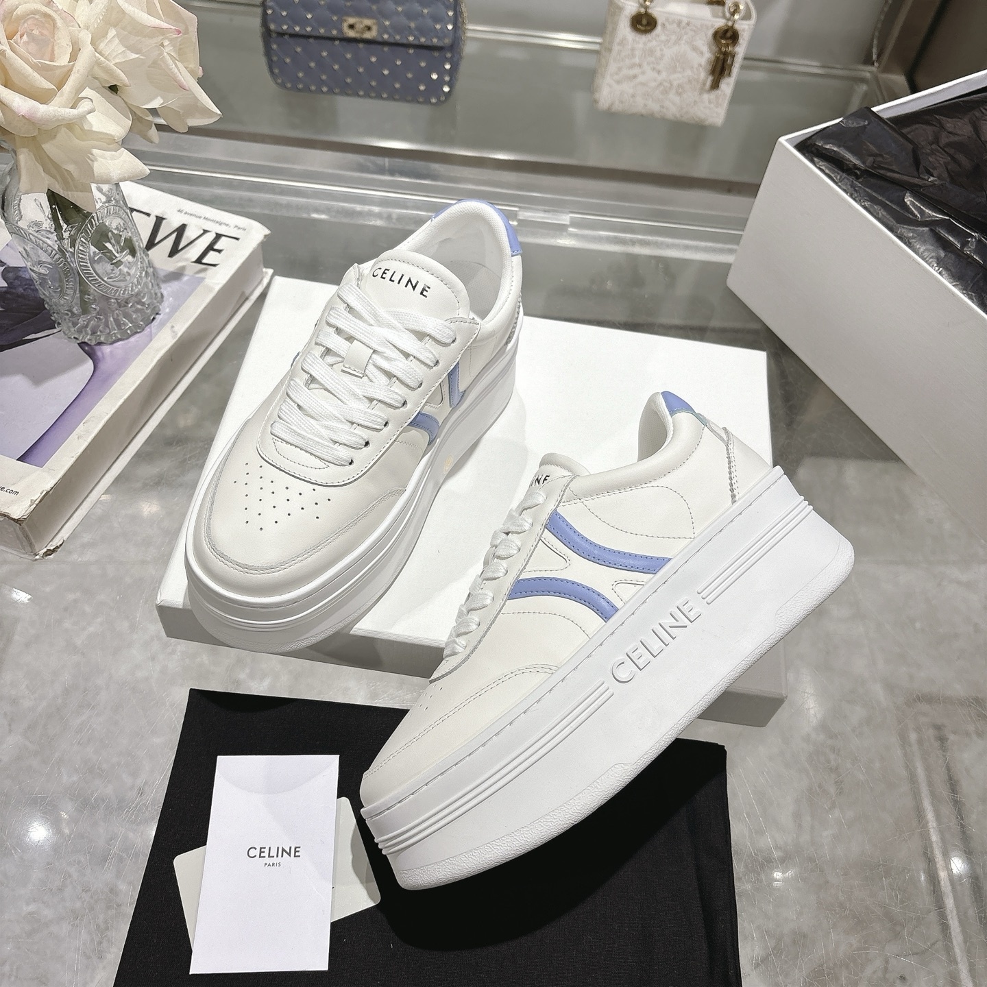 这款鞋子是AAAAA 1:1 质量 (非常棒). 使用了和原版一模一样的材料. 商标部分也保持了和思琳/Celine一样. 图片拍摄是实物鞋子拍摄, 您所收到的实物保证和我们图片一模一样.