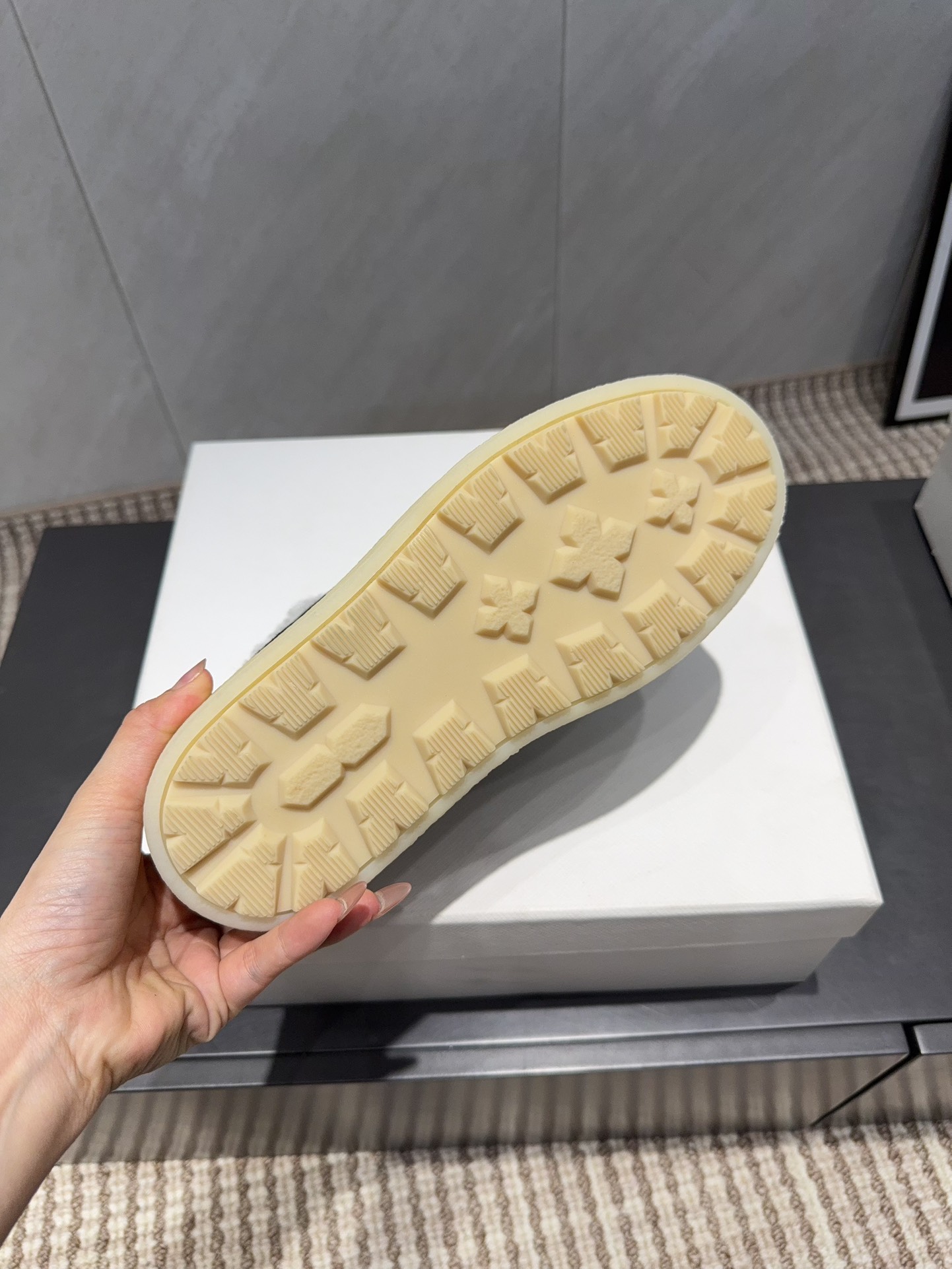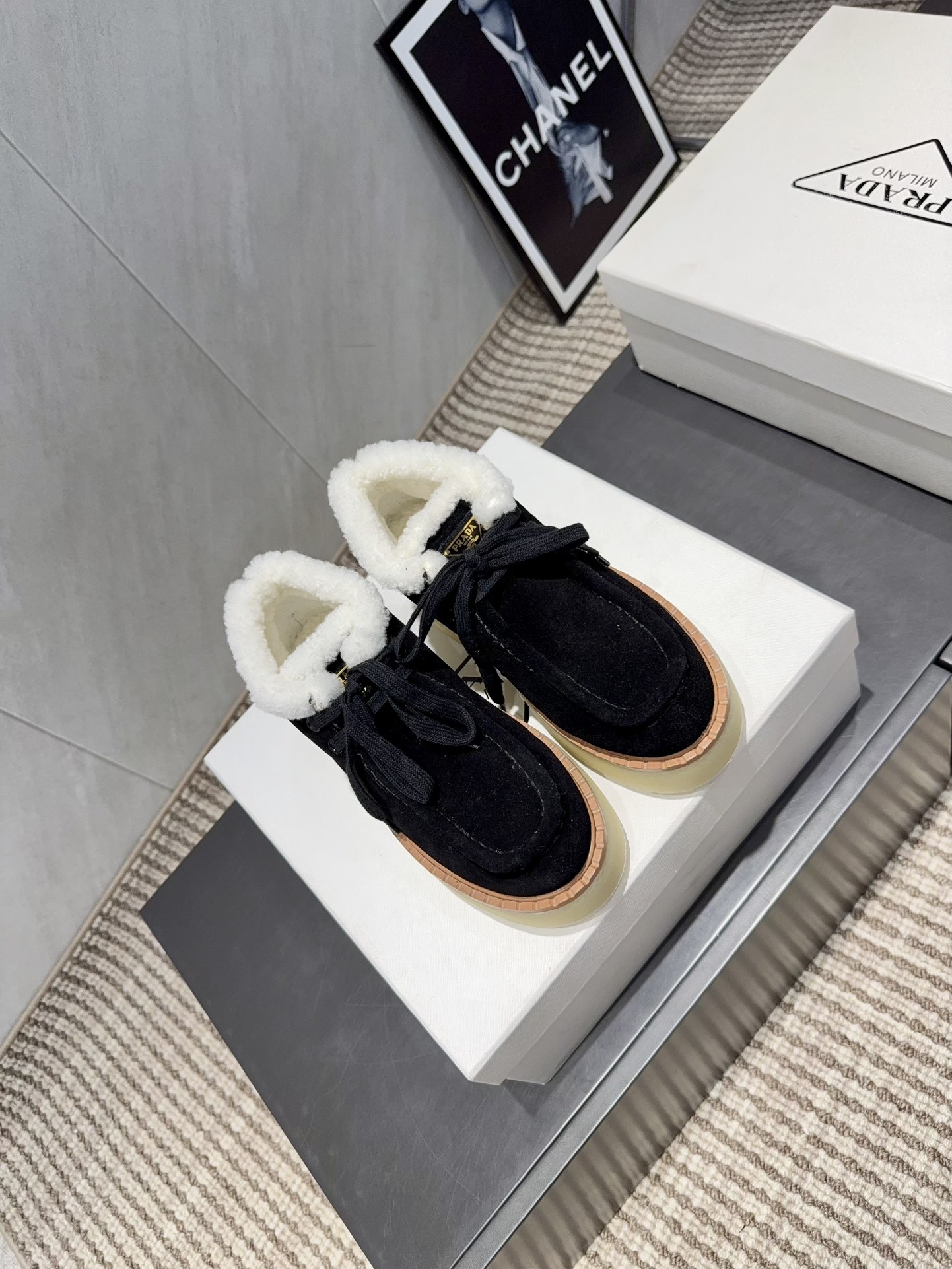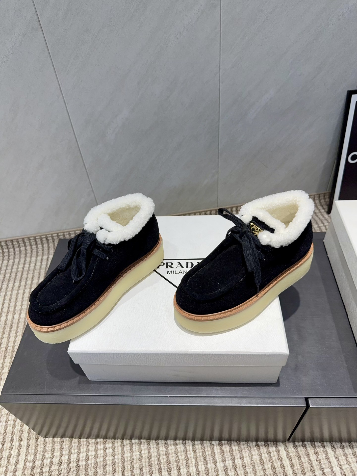 这款鞋子是AAAAA 1:1 质量 (非常棒). 使用了和原版一模一样的材料. 商标部分也保持了和普拉达/Prada一样. 图片拍摄是实物鞋子拍摄, 您所收到的实物保证和我们图片一模一样.