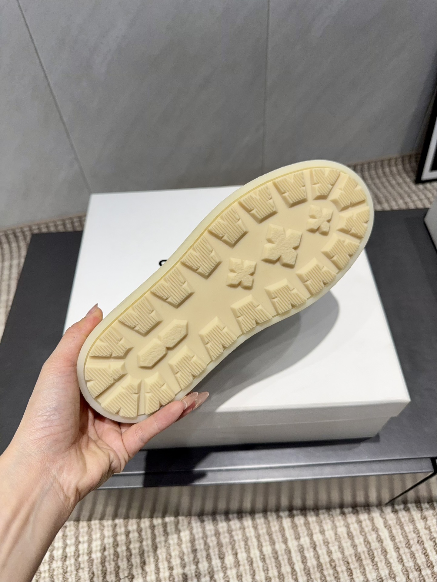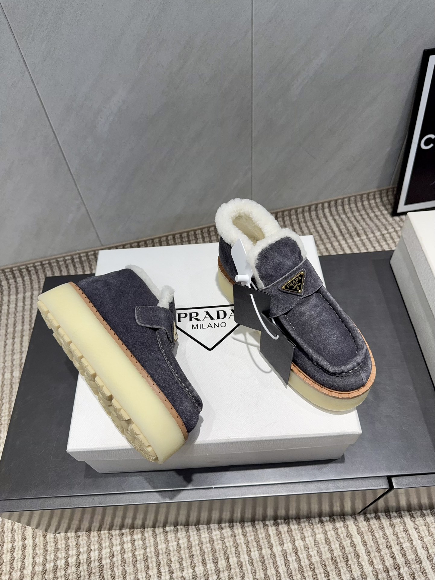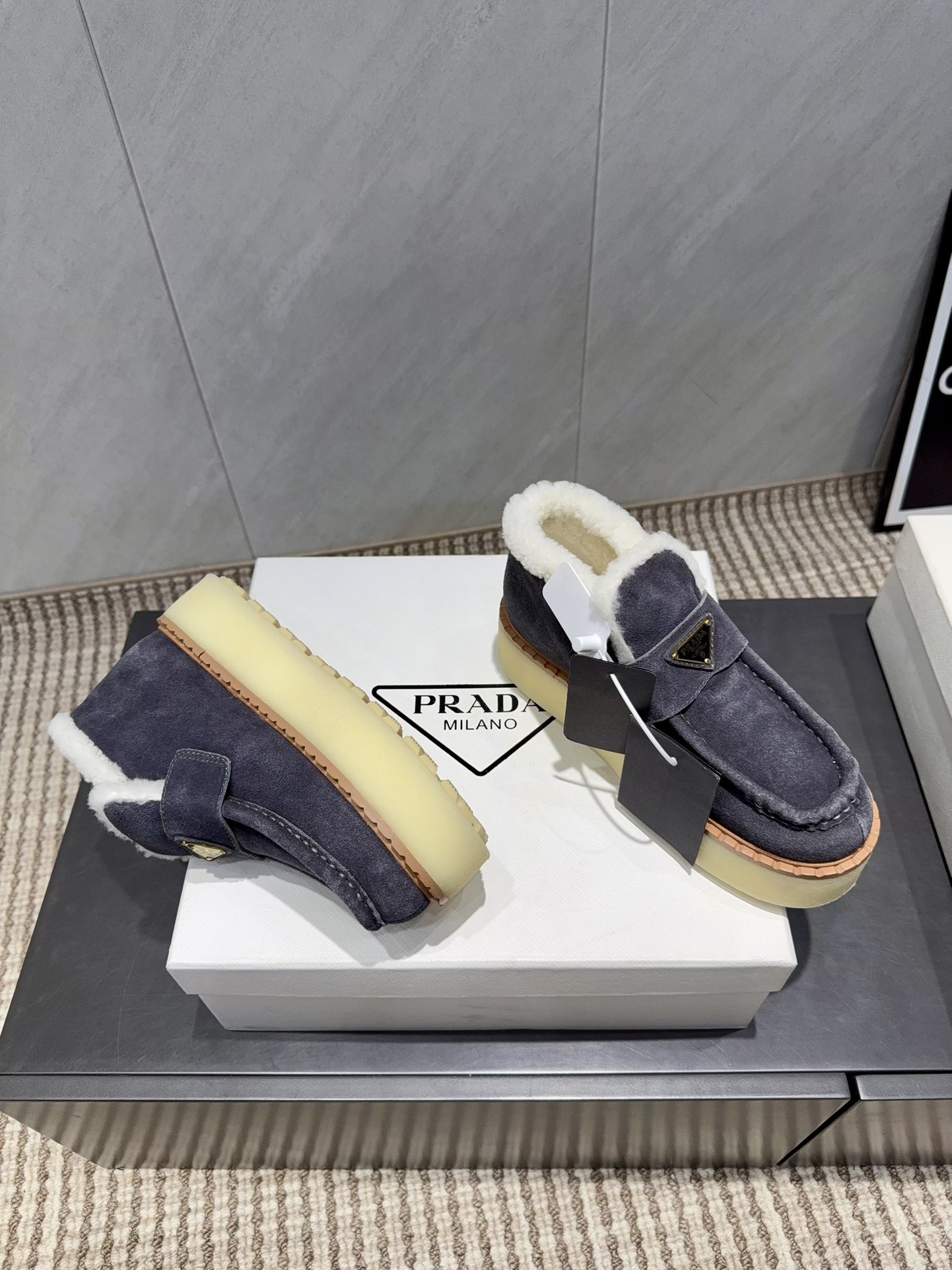 这款鞋子是AAAAA 1:1 质量 (非常棒). 使用了和原版一模一样的材料. 商标部分也保持了和普拉达/Prada一样. 图片拍摄是实物鞋子拍摄, 您所收到的实物保证和我们图片一模一样.