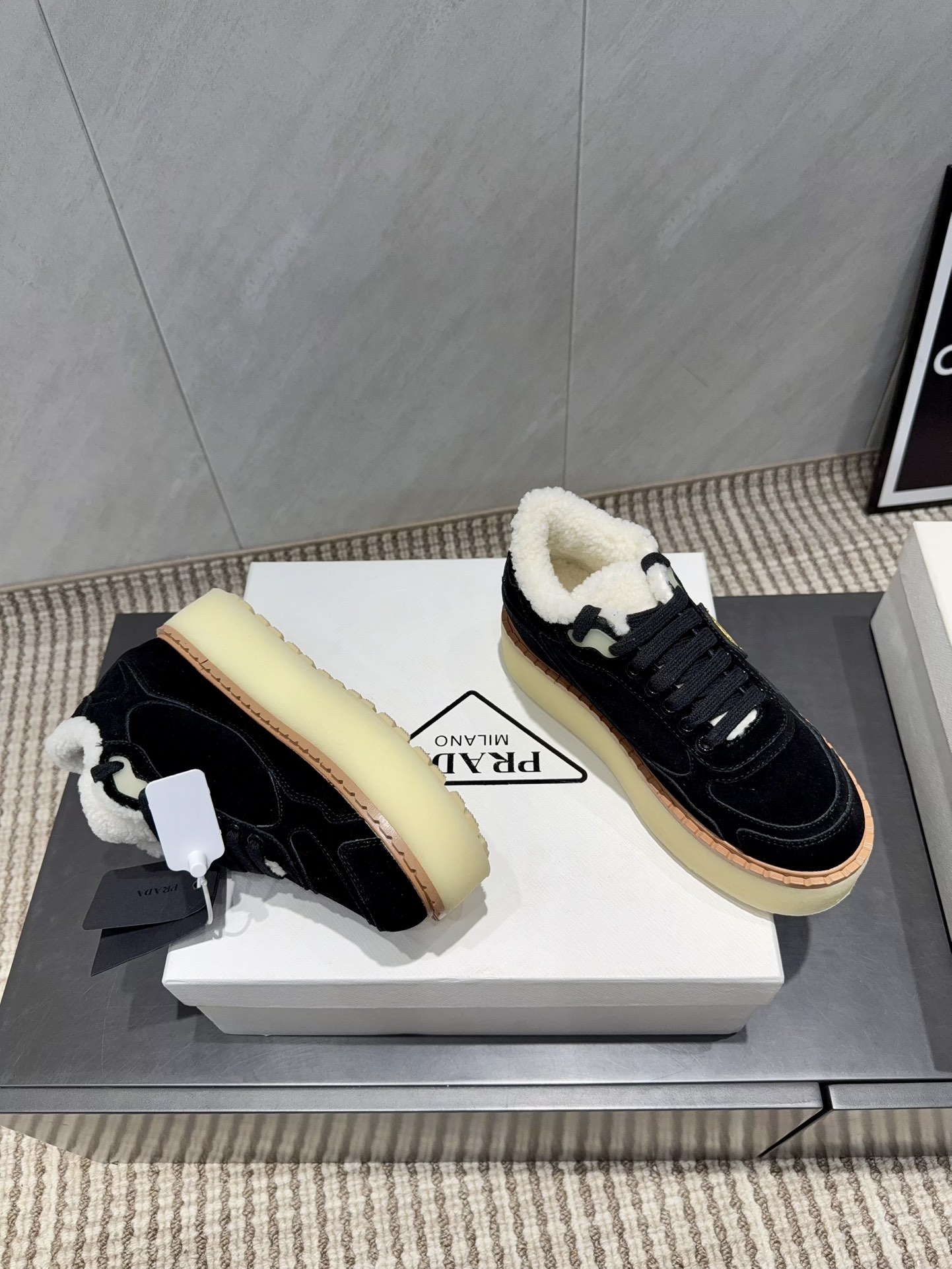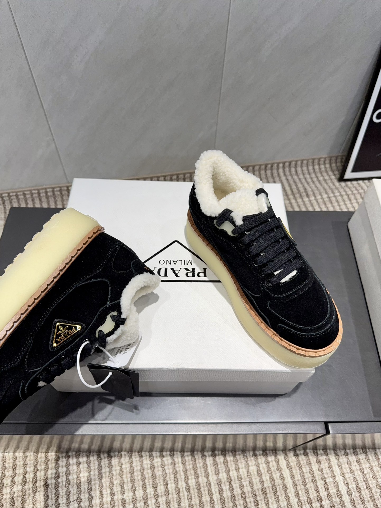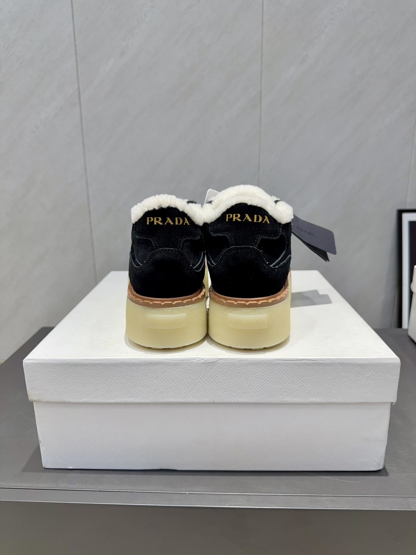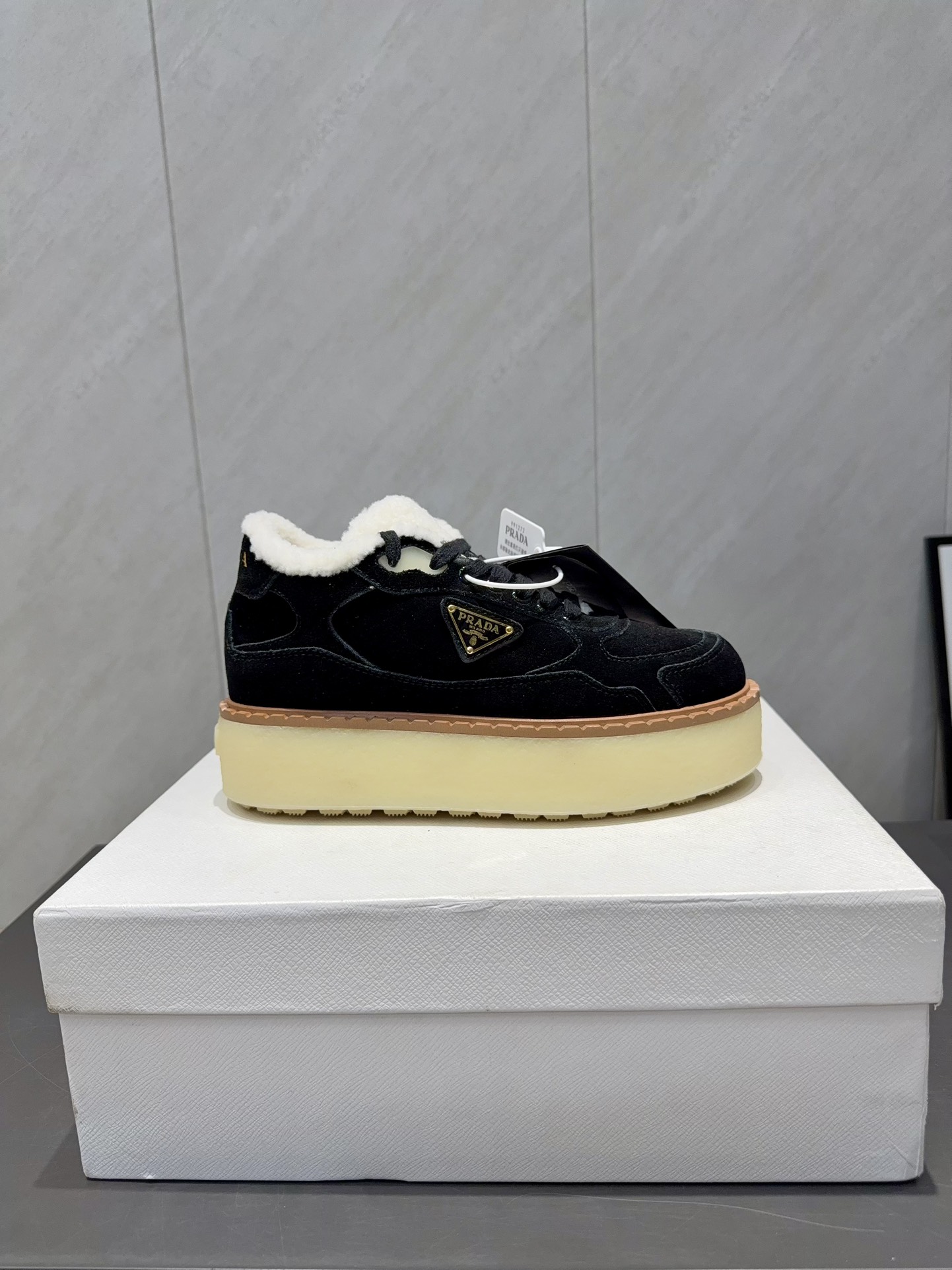 这款鞋子是AAAAA 1:1 质量 (非常棒). 使用了和原版一模一样的材料. 商标部分也保持了和普拉达/Prada一样. 图片拍摄是实物鞋子拍摄, 您所收到的实物保证和我们图片一模一样.