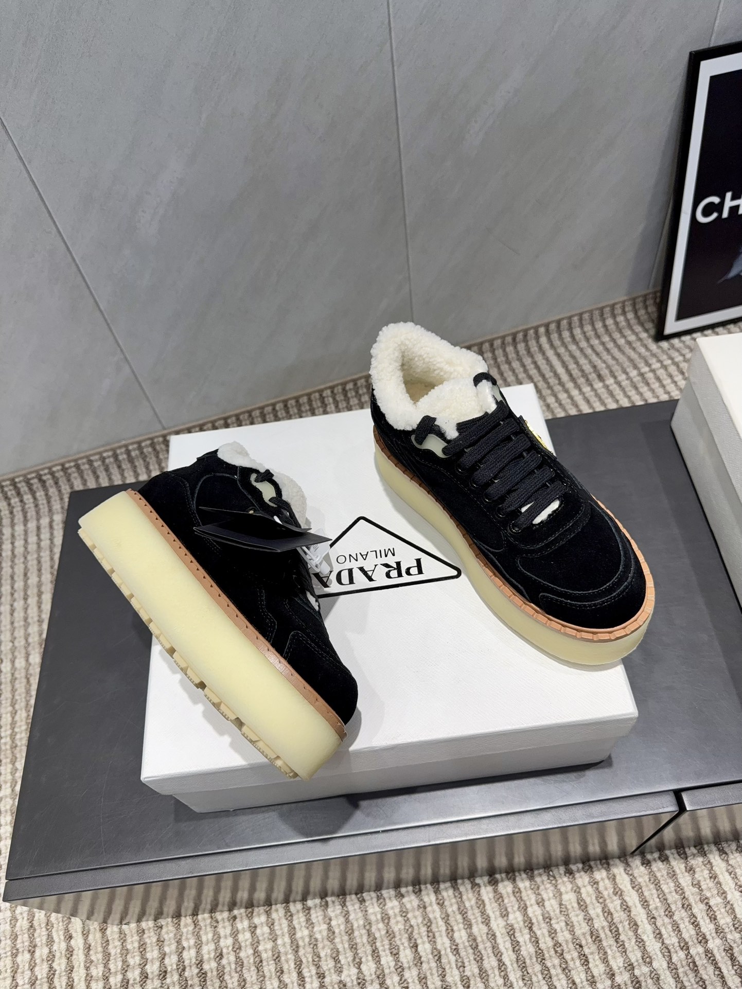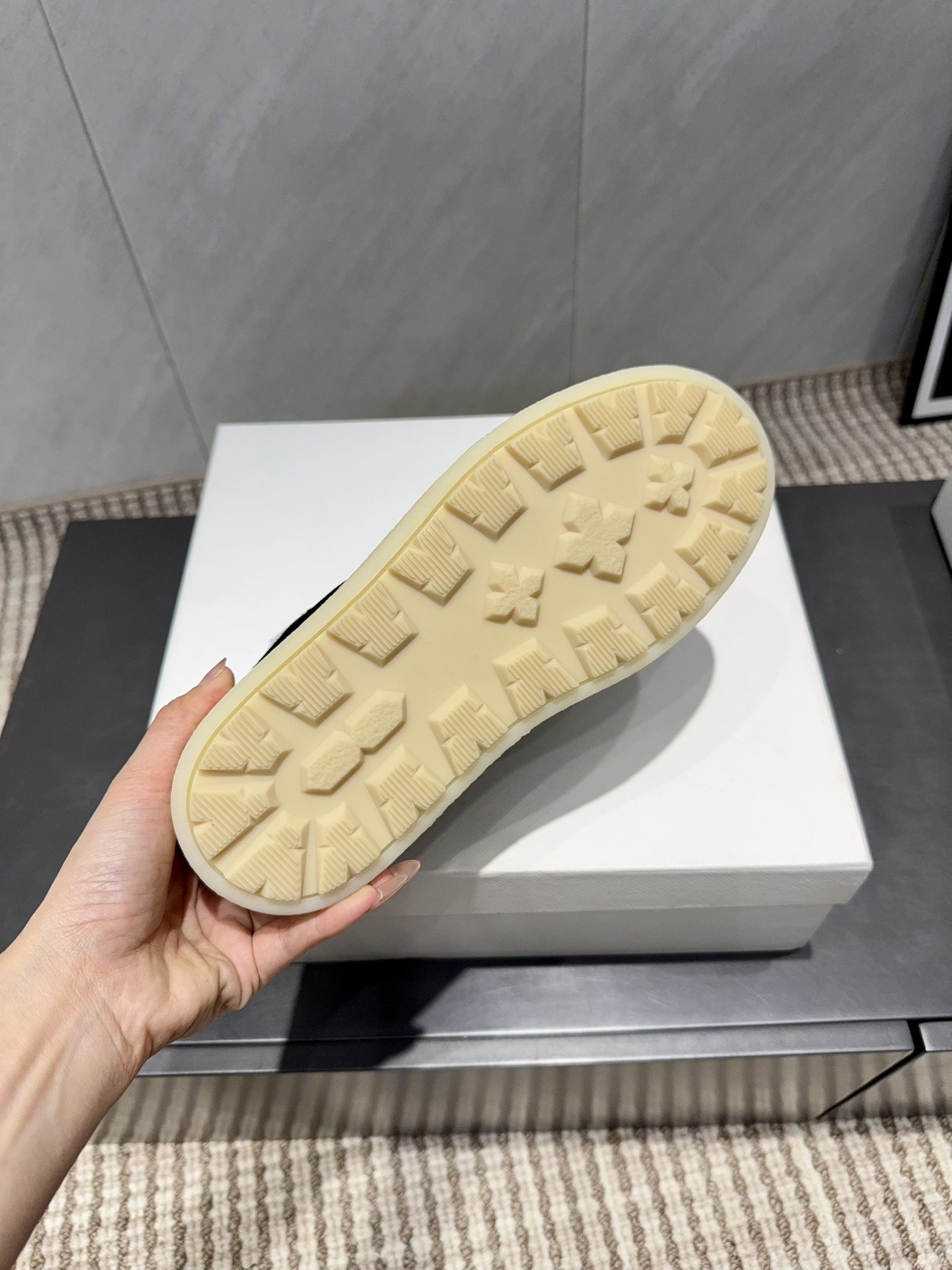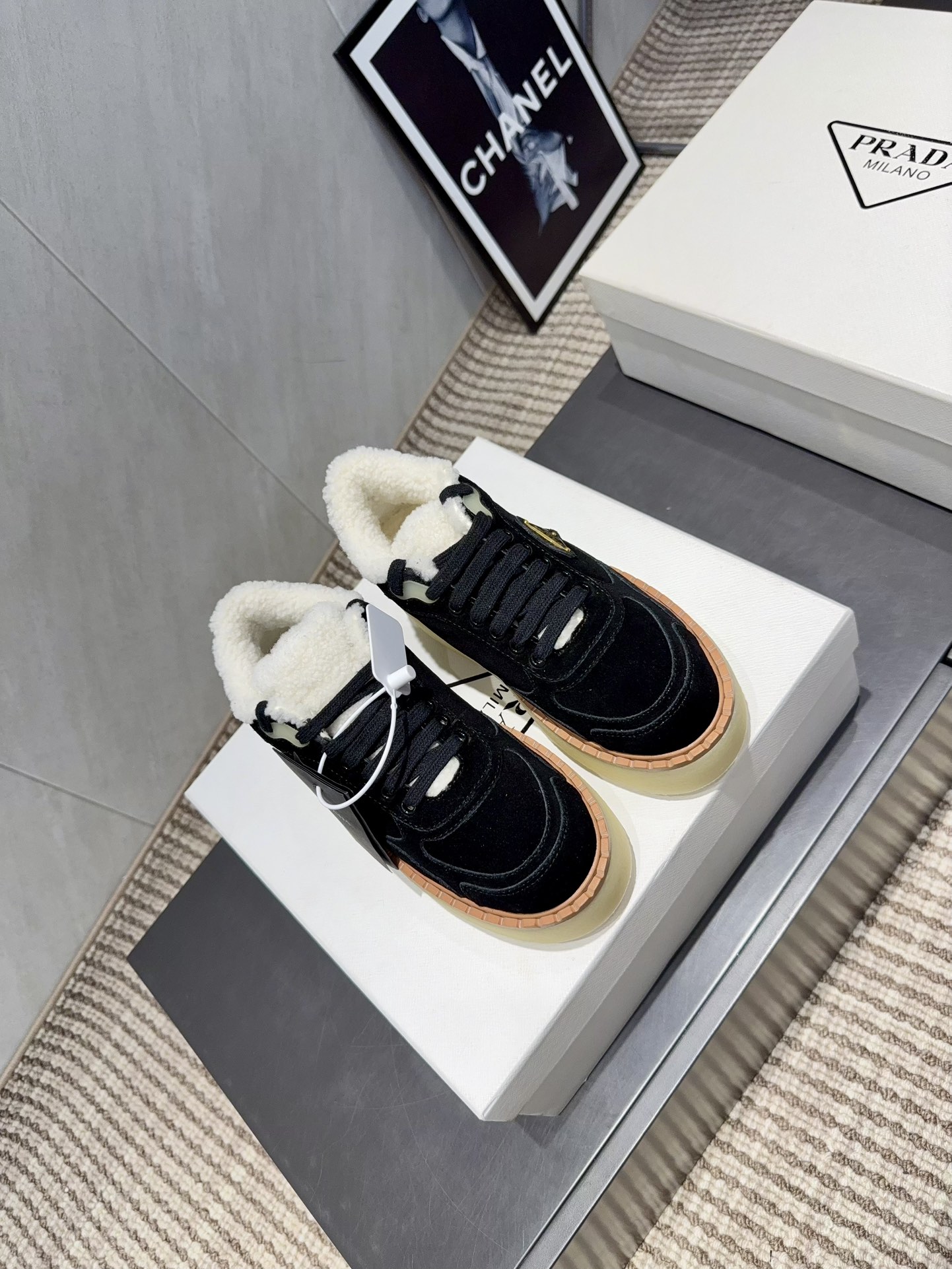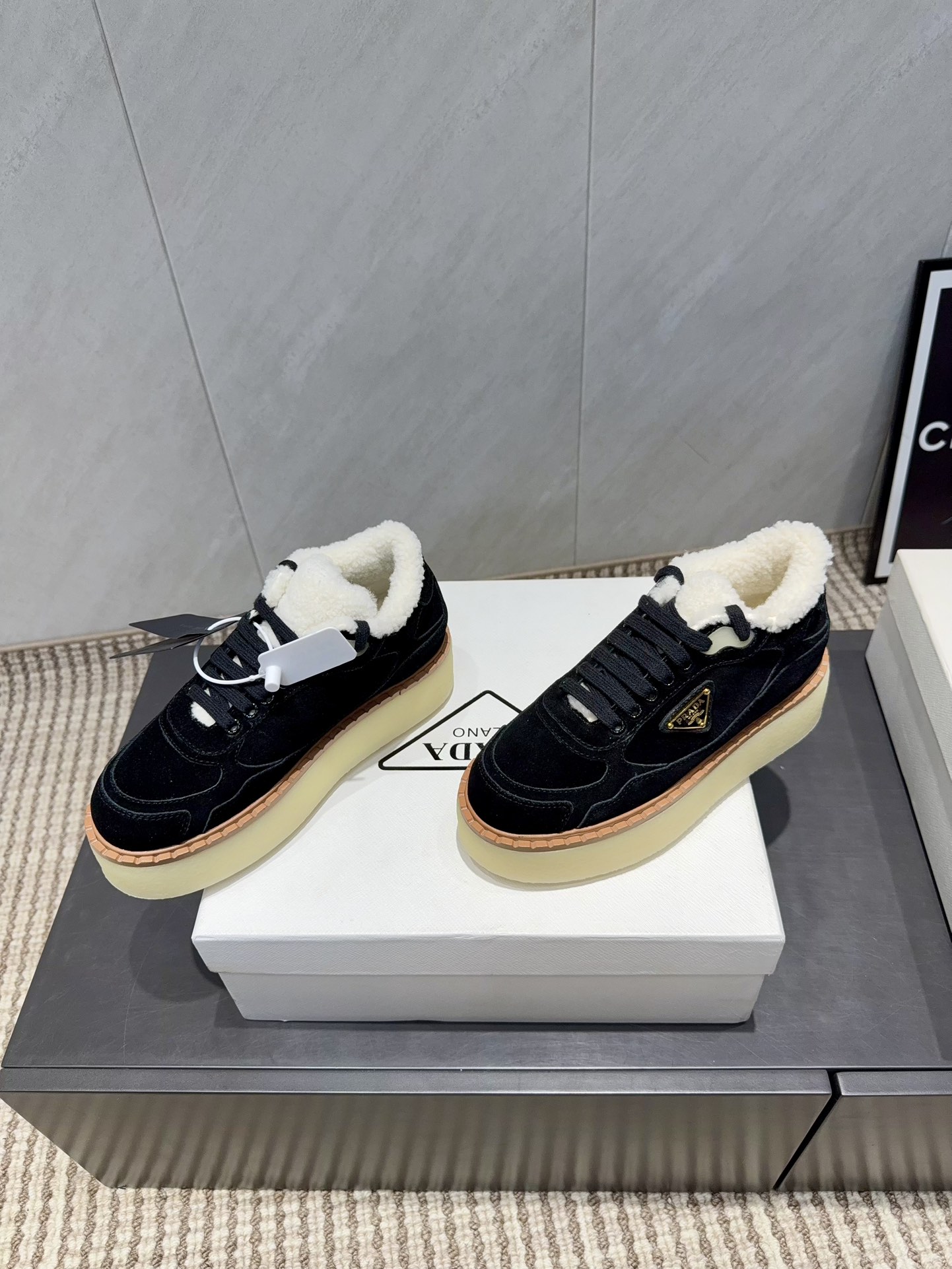 这款鞋子是AAAAA 1:1 质量 (非常棒). 使用了和原版一模一样的材料. 商标部分也保持了和普拉达/Prada一样. 图片拍摄是实物鞋子拍摄, 您所收到的实物保证和我们图片一模一样.