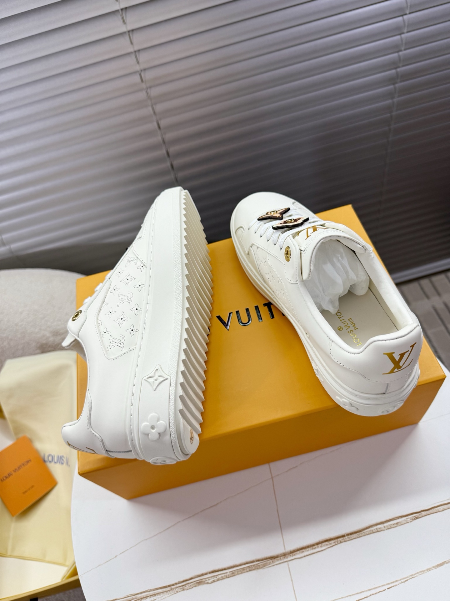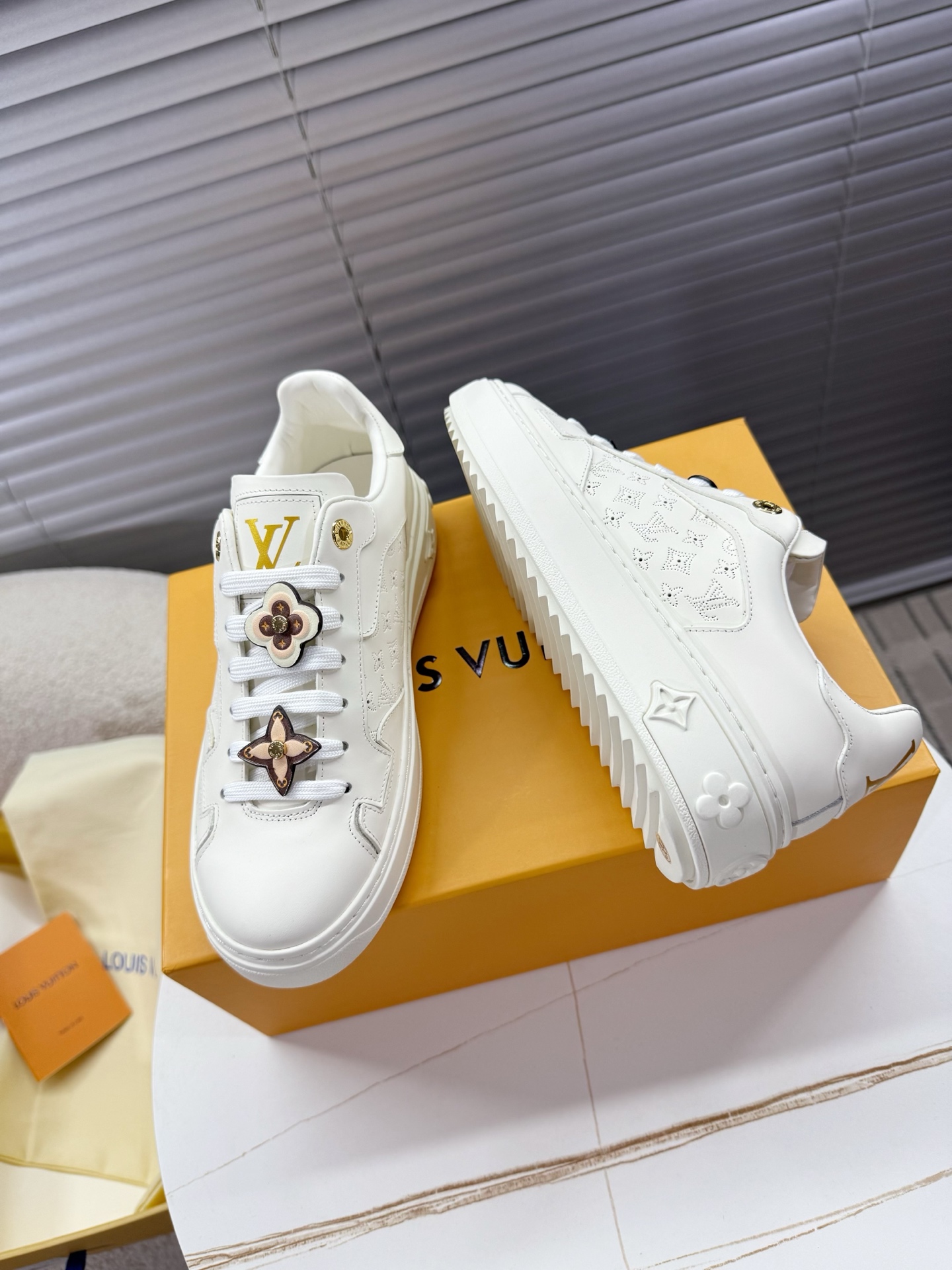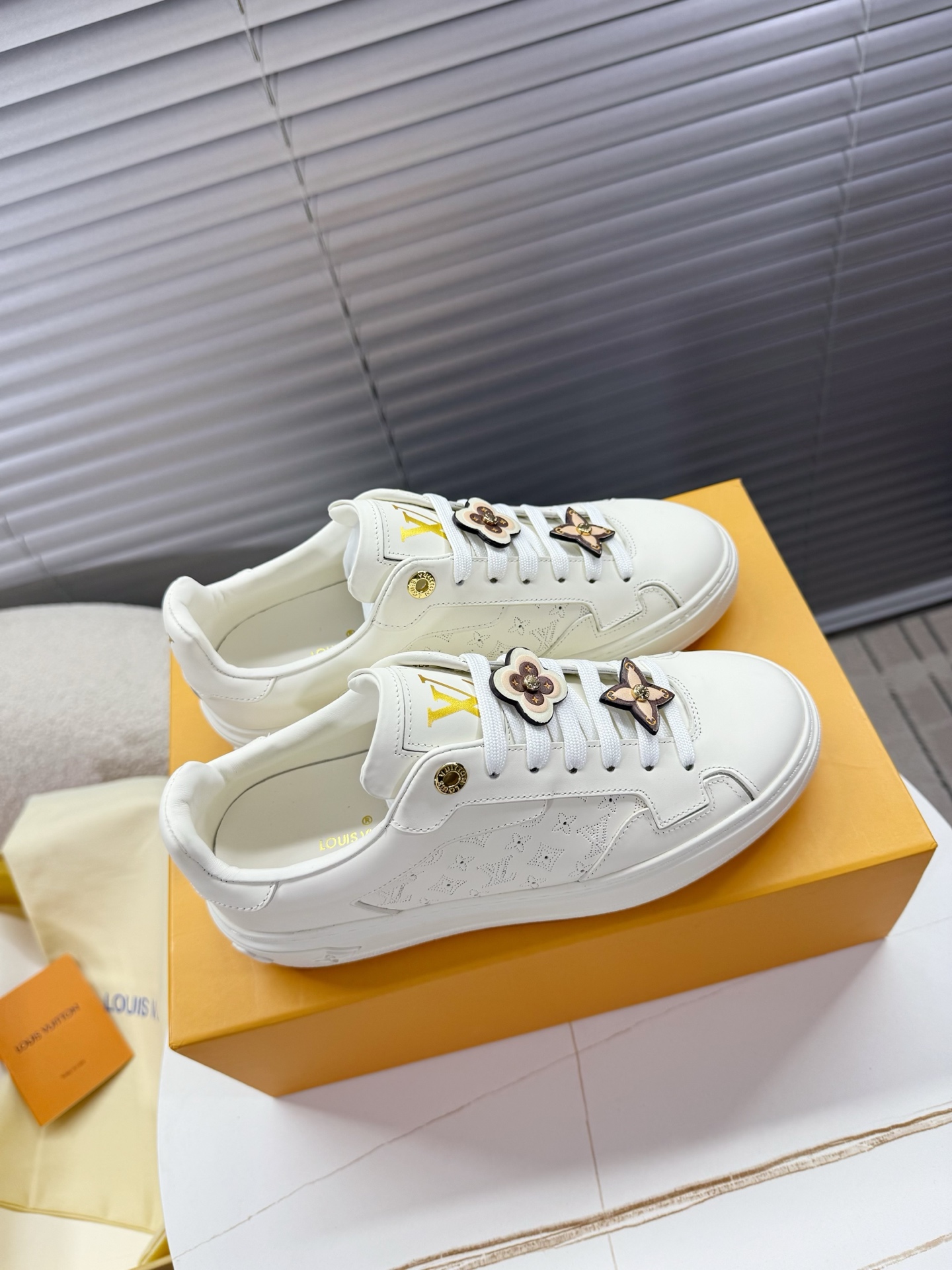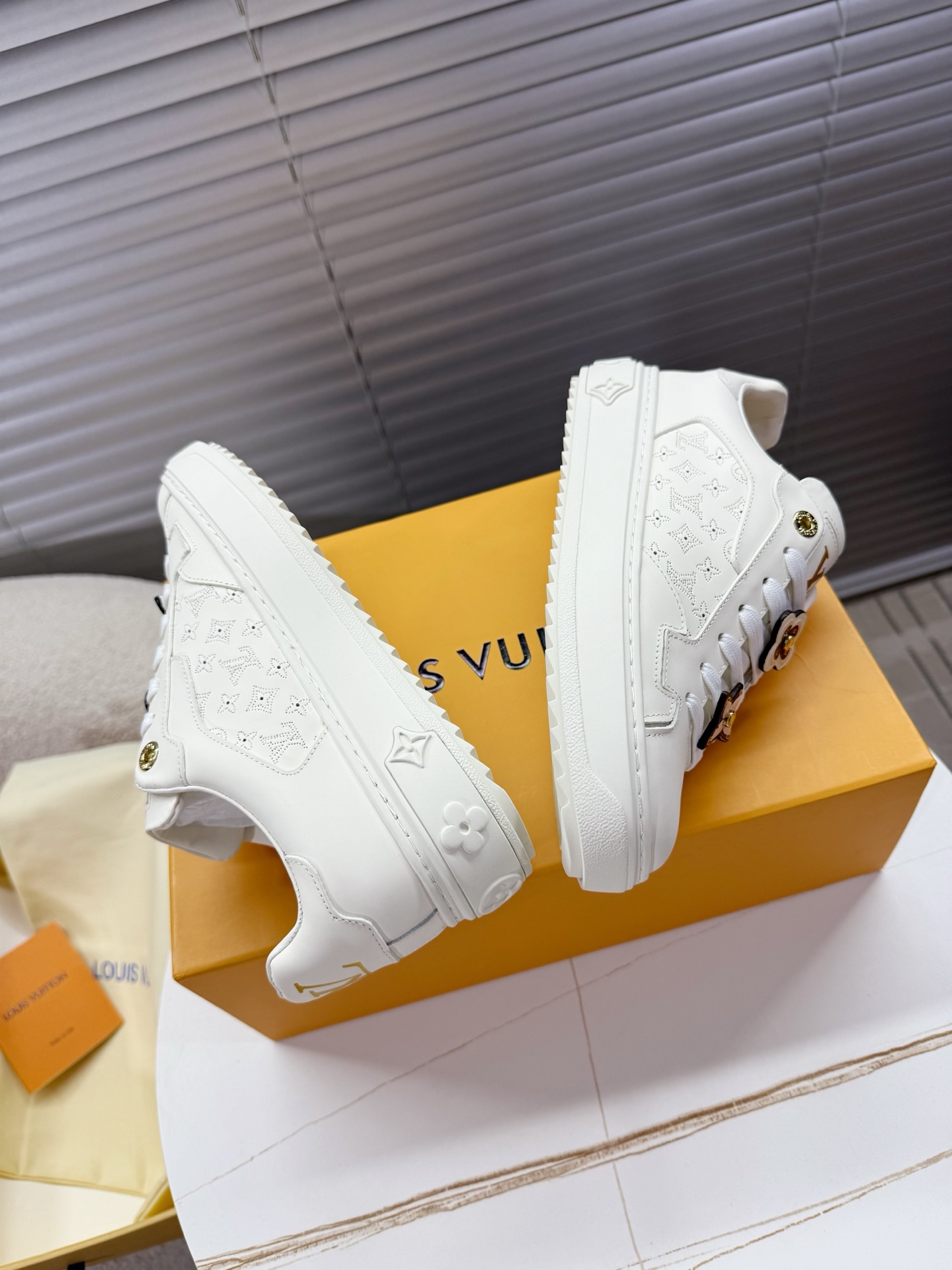 这款鞋子是AAAAA 1:1 质量 (非常棒). 使用了和原版一模一样的材料. 商标部分也保持了和路易威登/Louis Vuitton一样. 图片拍摄是实物鞋子拍摄, 您所收到的实物保证和我们图片一模一样.
