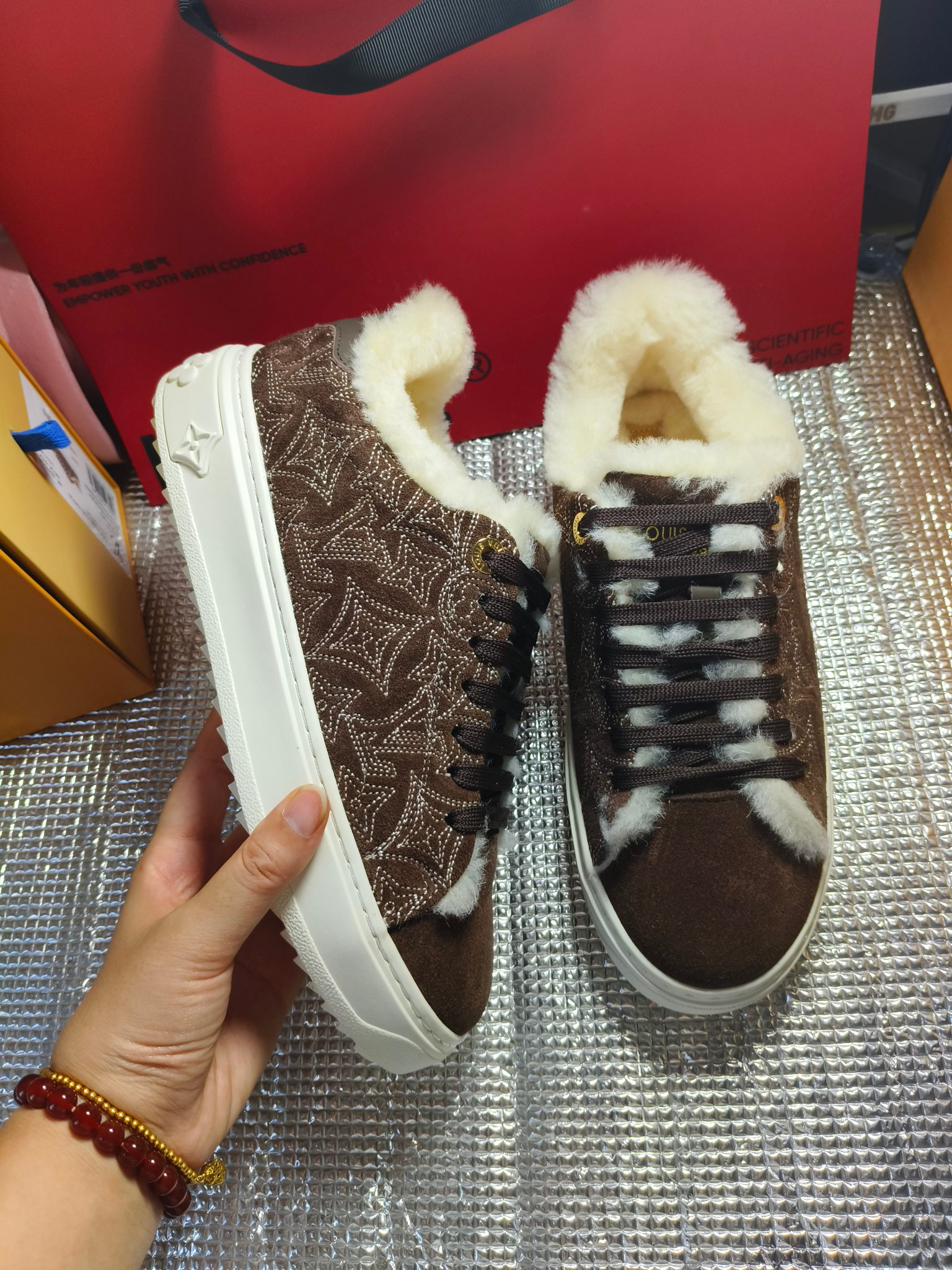 这款鞋子是AAAAA 1:1 质量 (非常棒). 使用了和原版一模一样的材料. 商标部分也保持了和一样. 图片拍摄是实物鞋子拍摄, 您所收到的实物保证和我们图片一模一样.